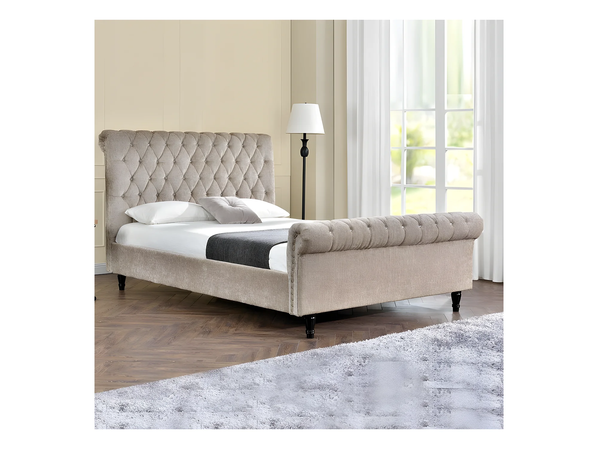 Lit KAPALDI Luxe Velours - Tissu Beige - 160x200 cm