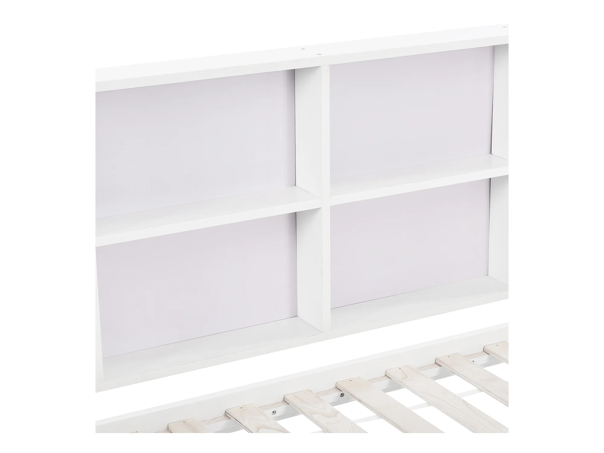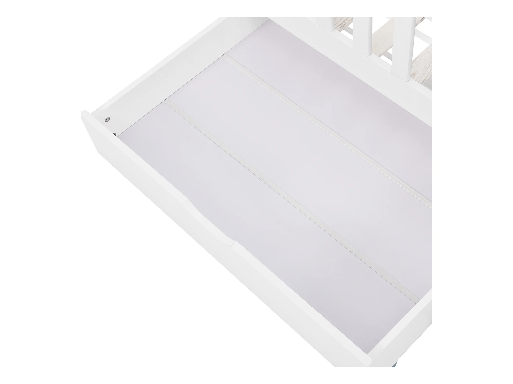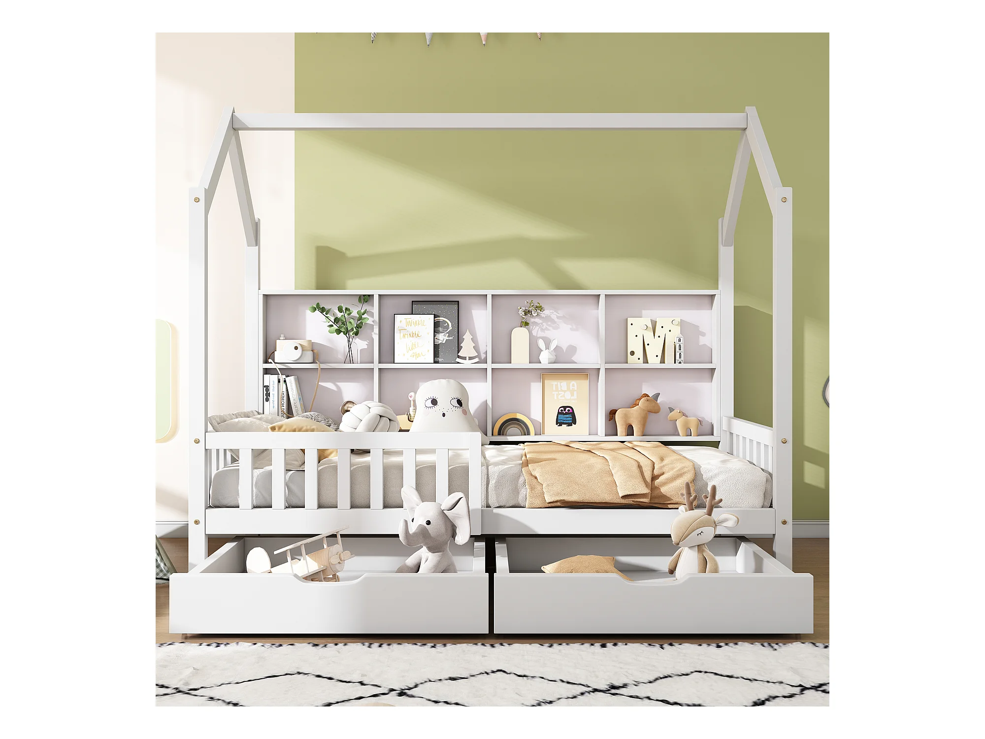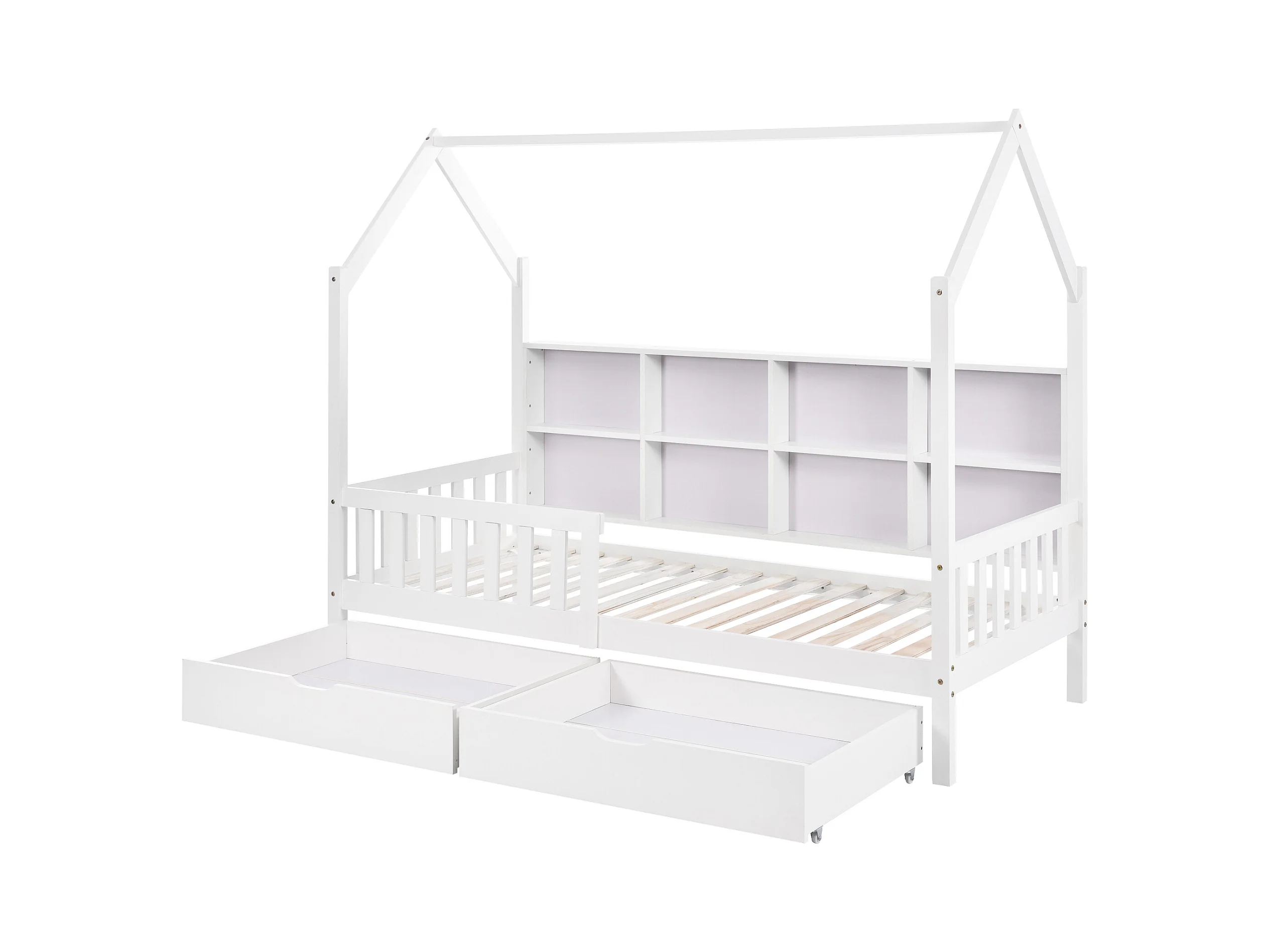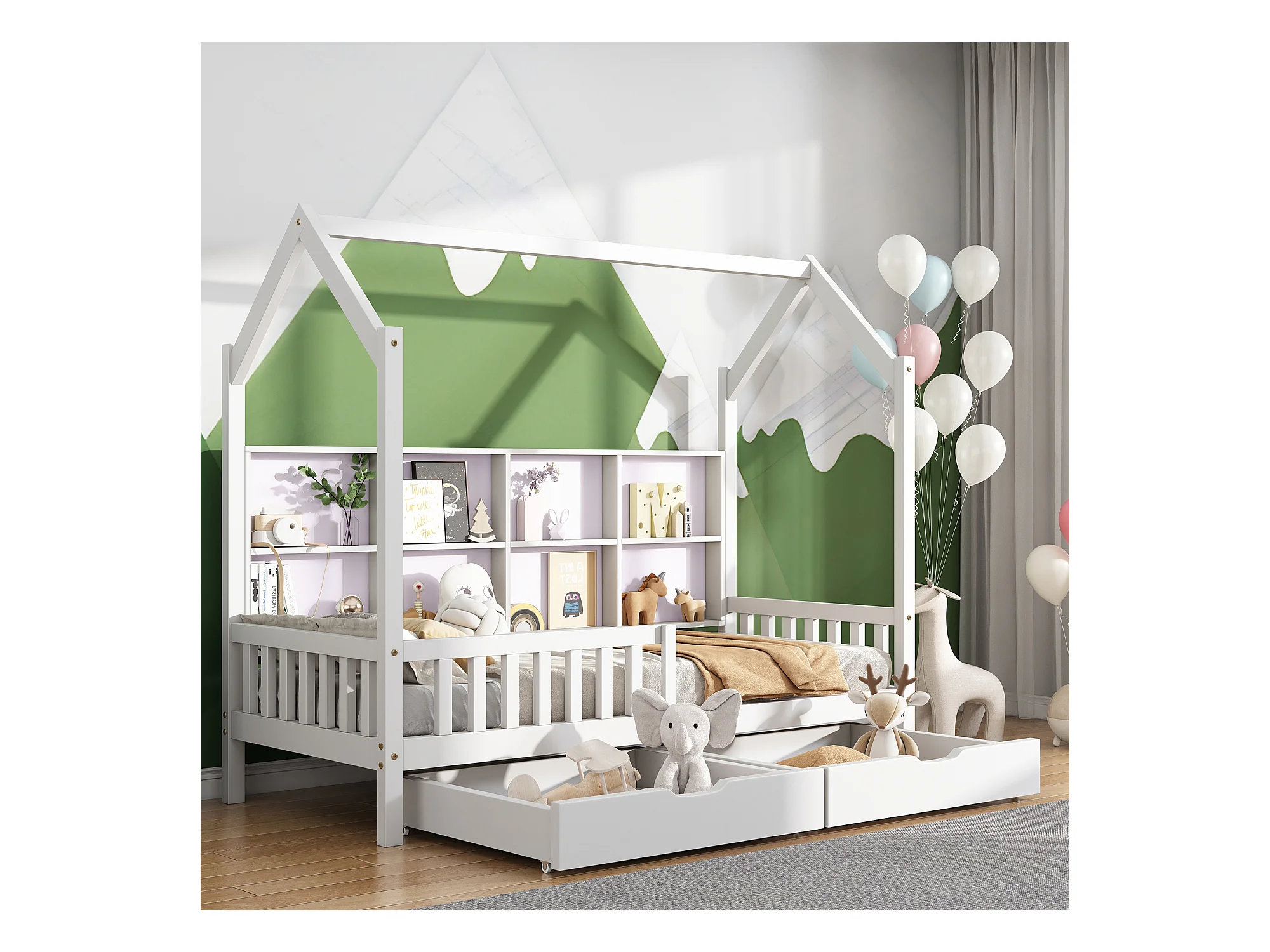 Lit Maison Enfant 90 X 200 cm - Bibliothèques De Rangement et 2 Tiroirs - Forme Cheminée - Blanc