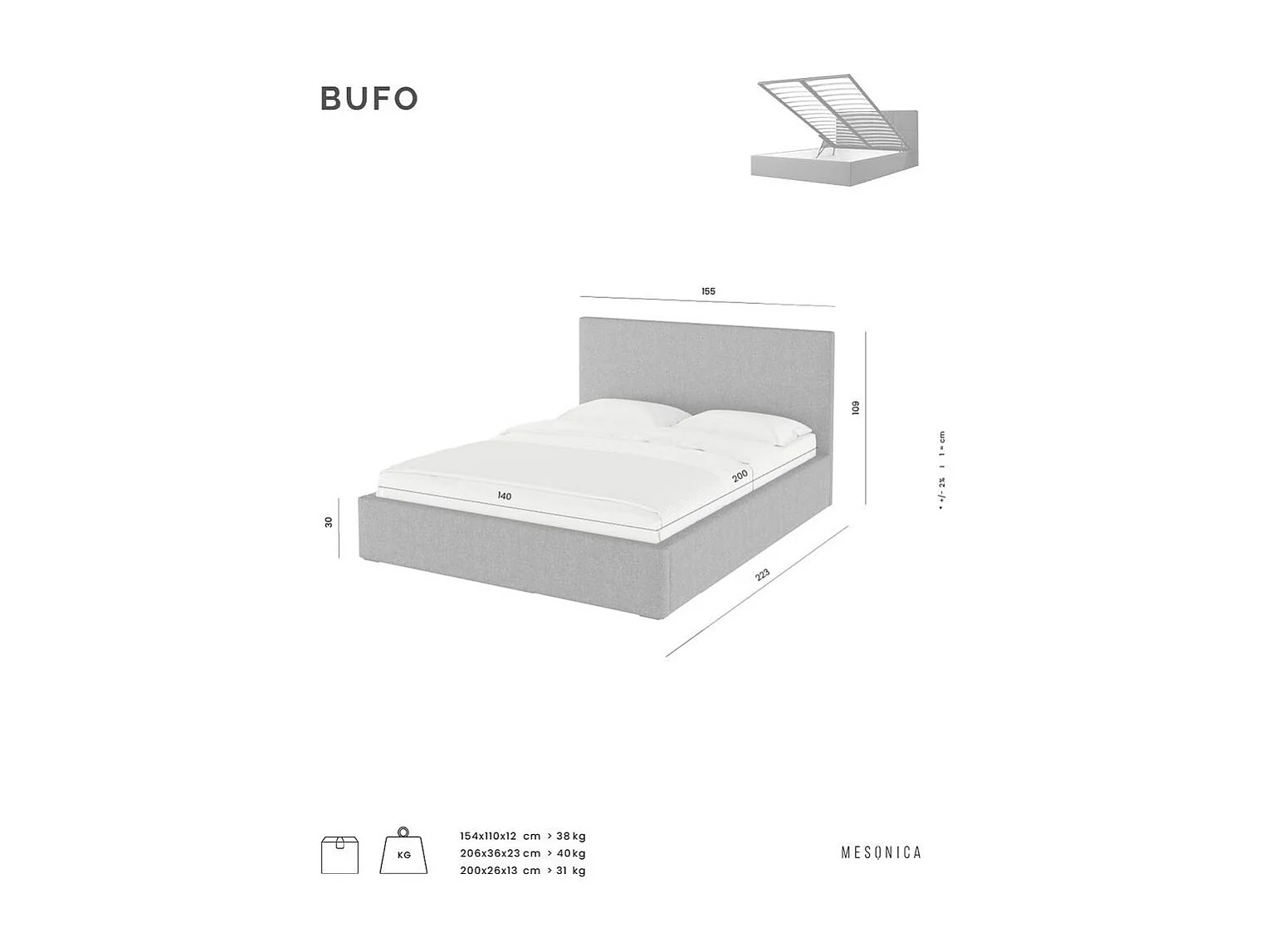 Lit Mesonica Bufo, rayures beige clair 140x200