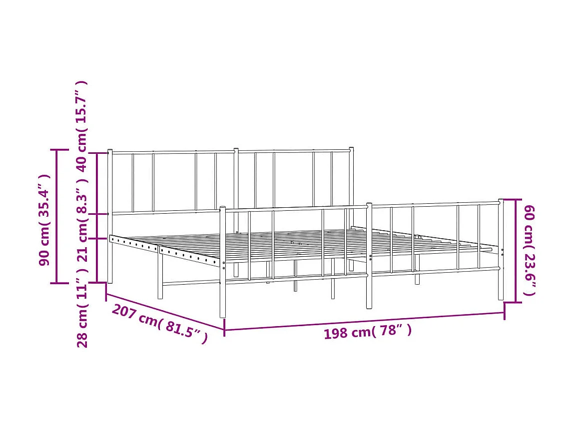 Lit métal avec tête de lit-pied de lit blanc 193x203