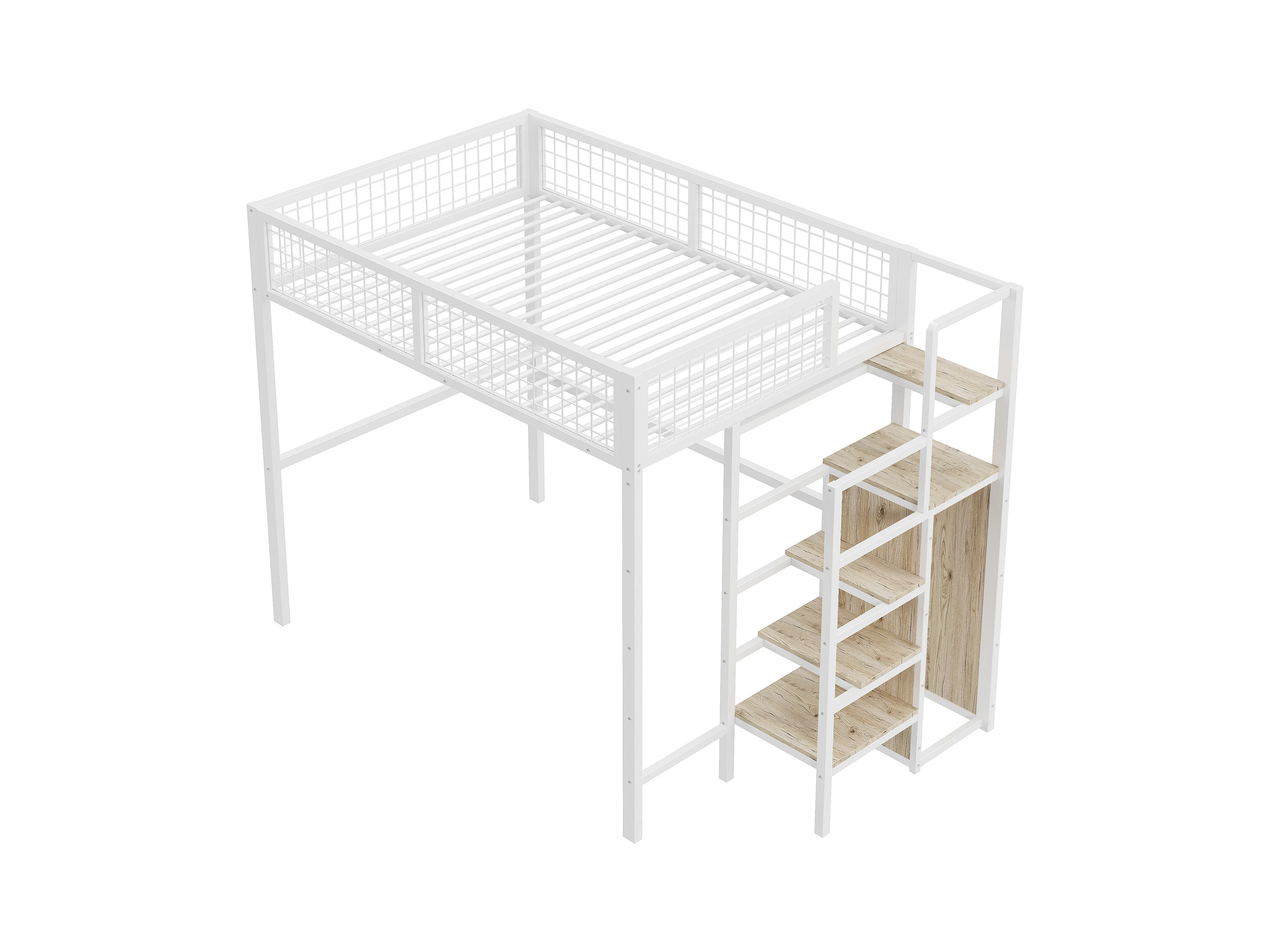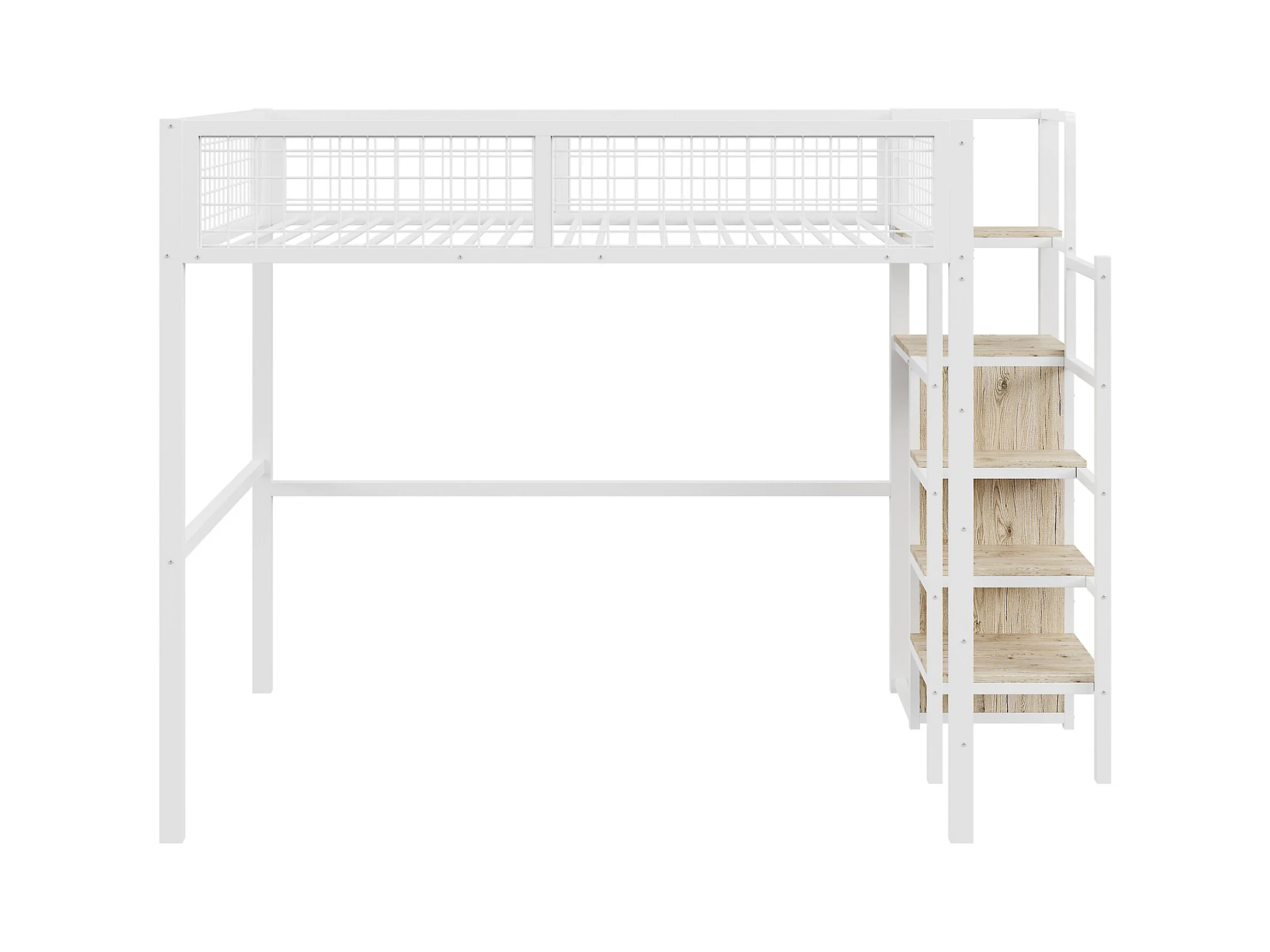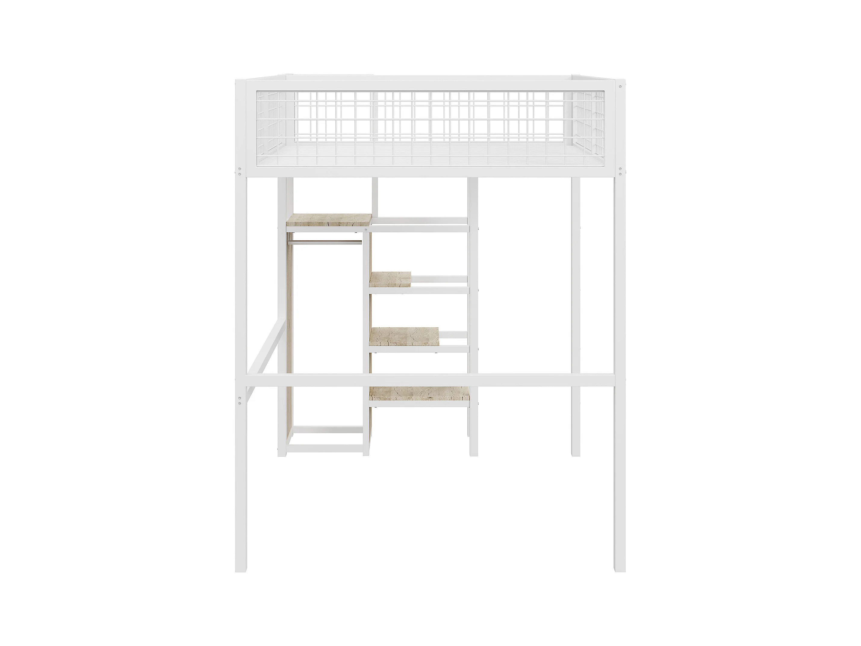 Lit mezzanine 140 x 200 cm avec armoir et échelle - Métal et MDF - pour enfant - Blanc