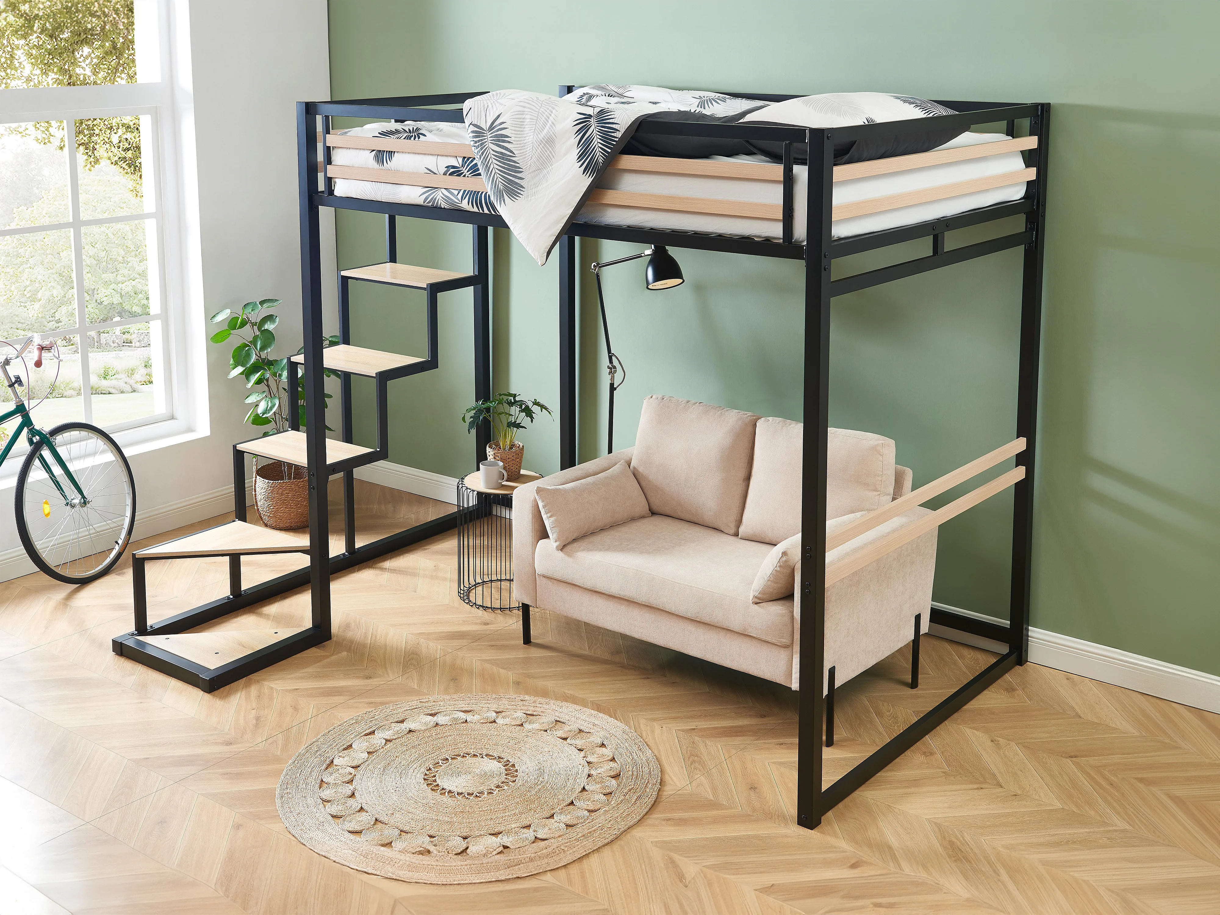 Lit mezzanine 140 x 200 cm - Métal et MDF - Noir et naturel - JOGUI
