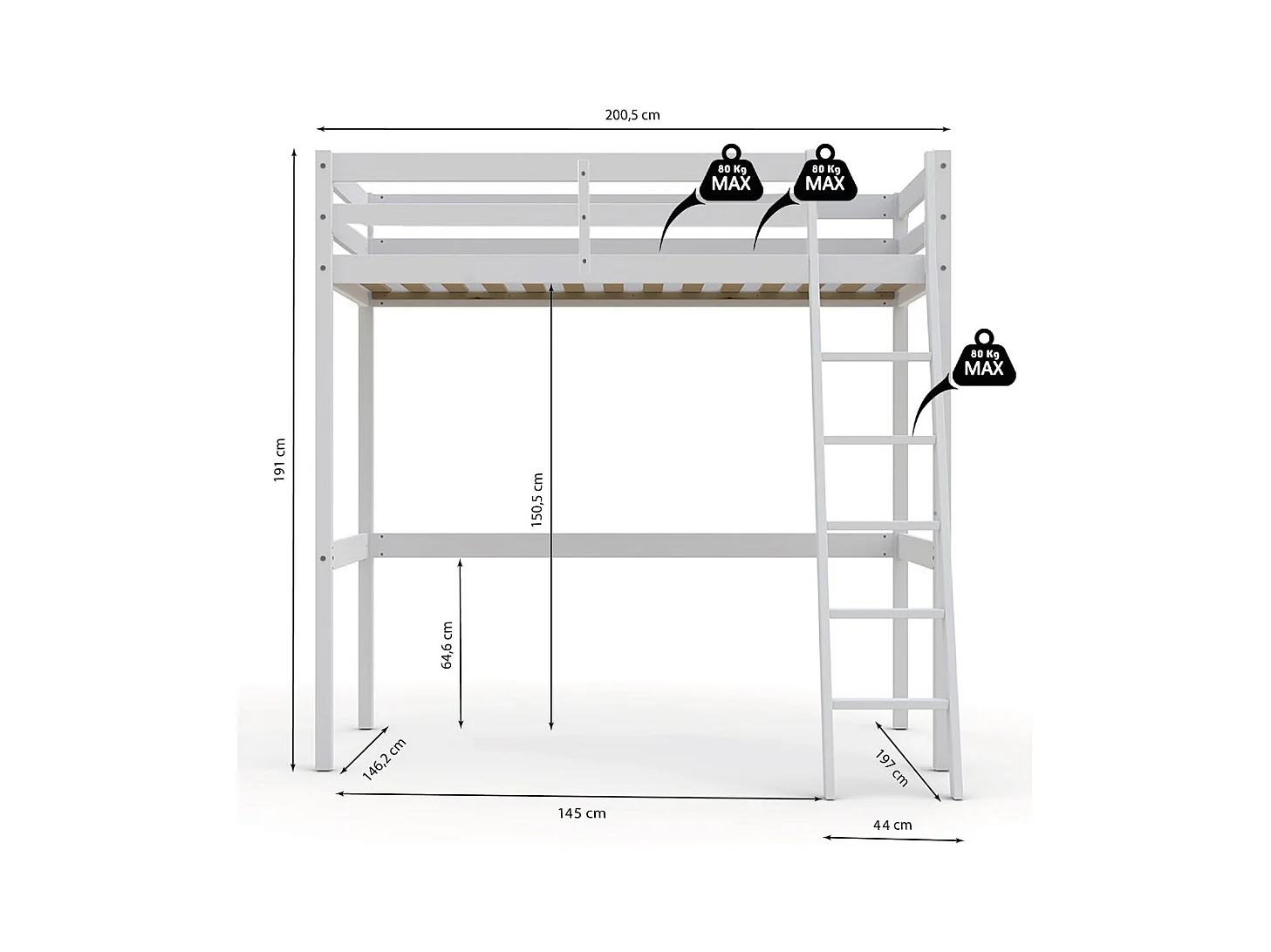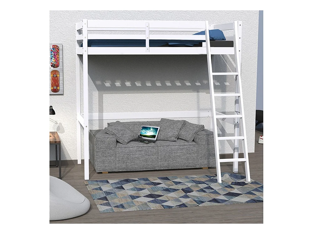 Lit Mezzanine 140x190cm blanc SALA avec incl. Sommier et échelle