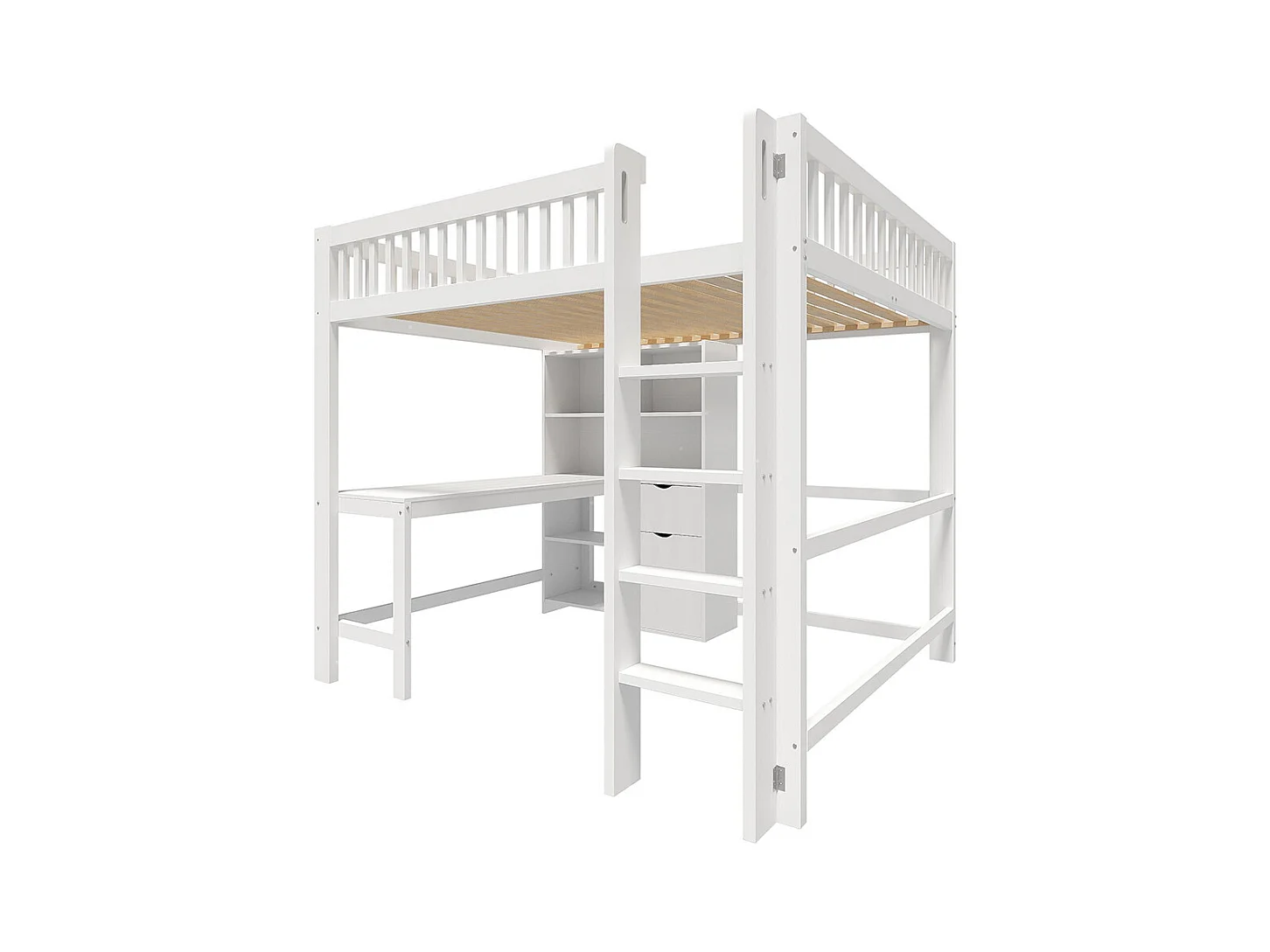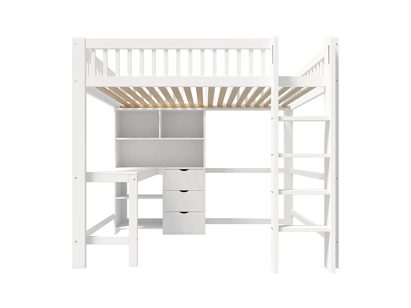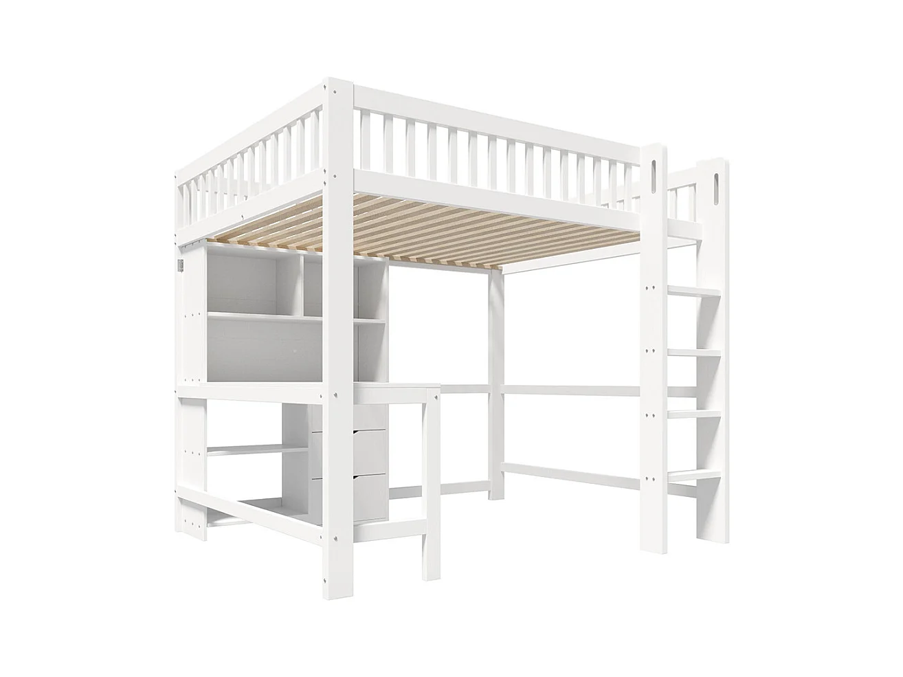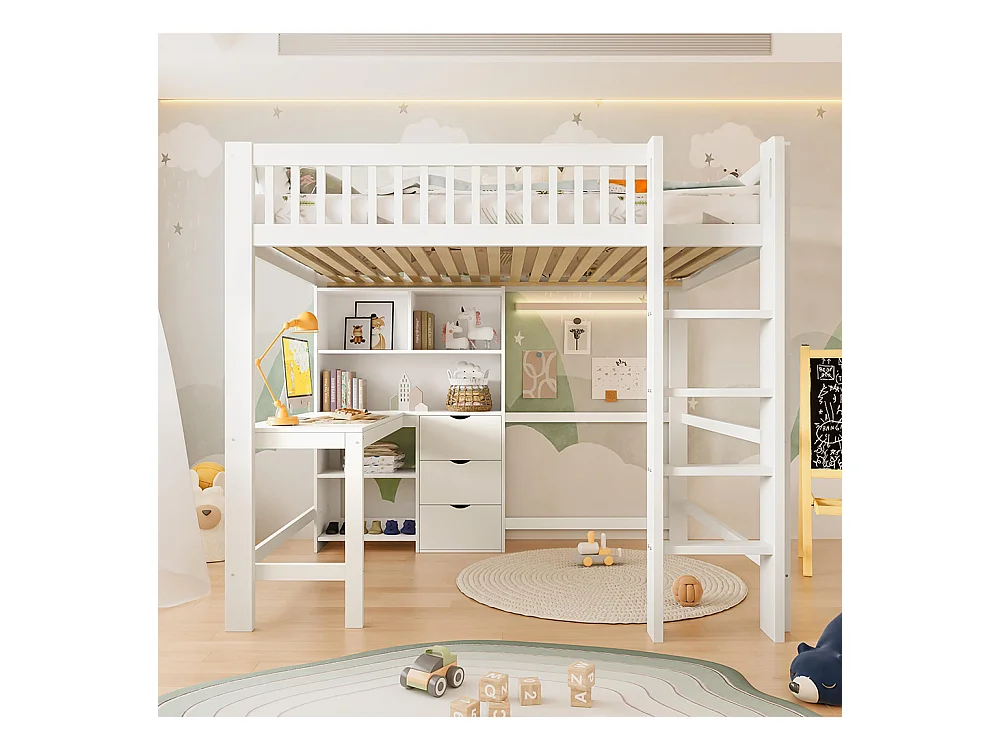 Lit mezzanine 140x200 cm rangement échelle bureau 3 tiroirs sans matelas blanc