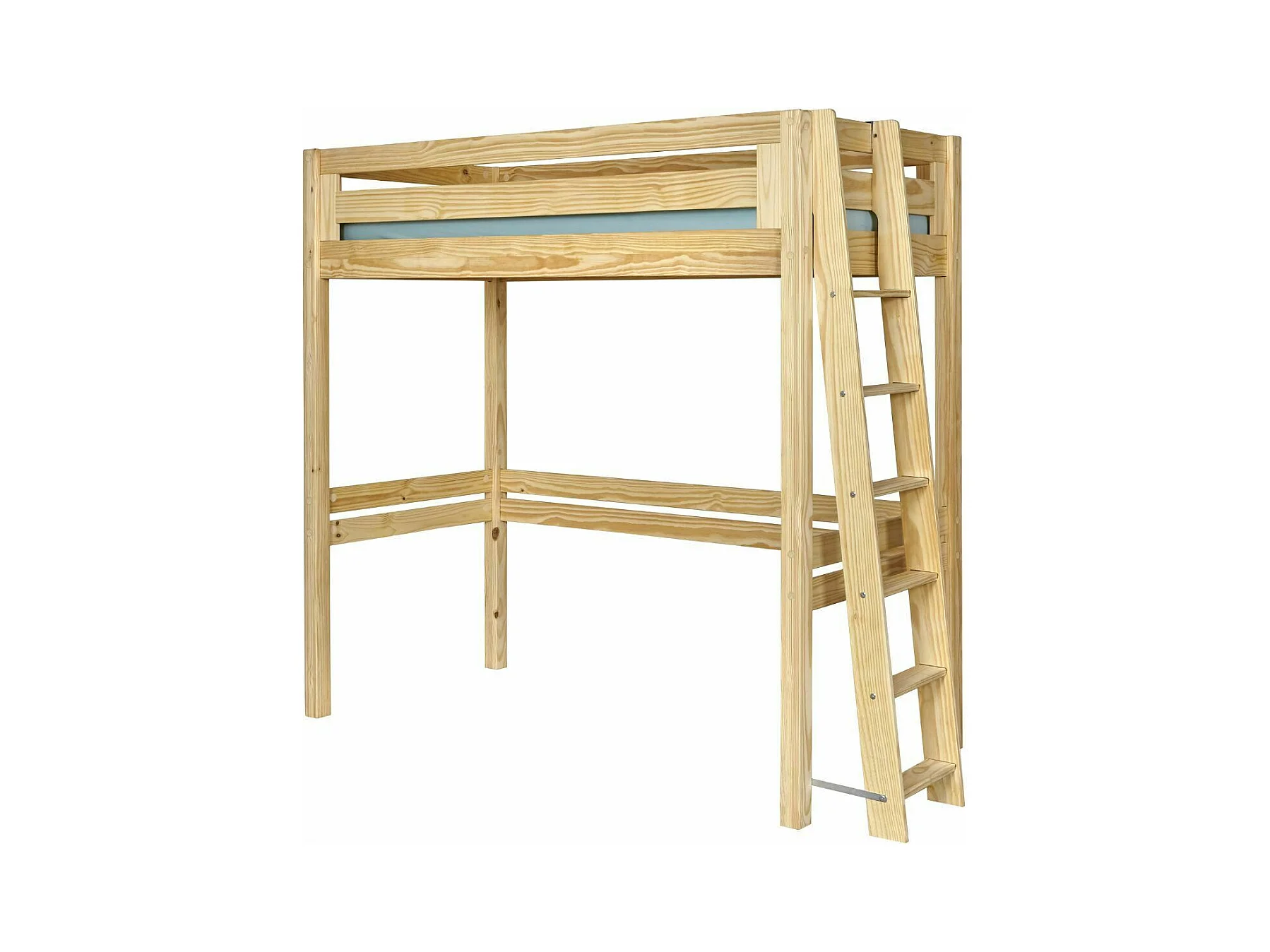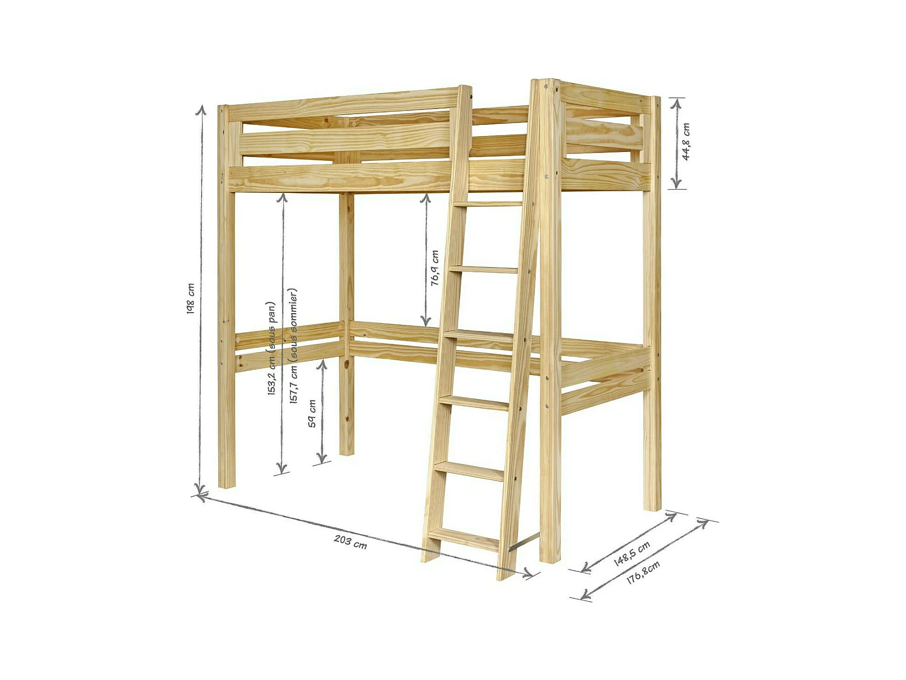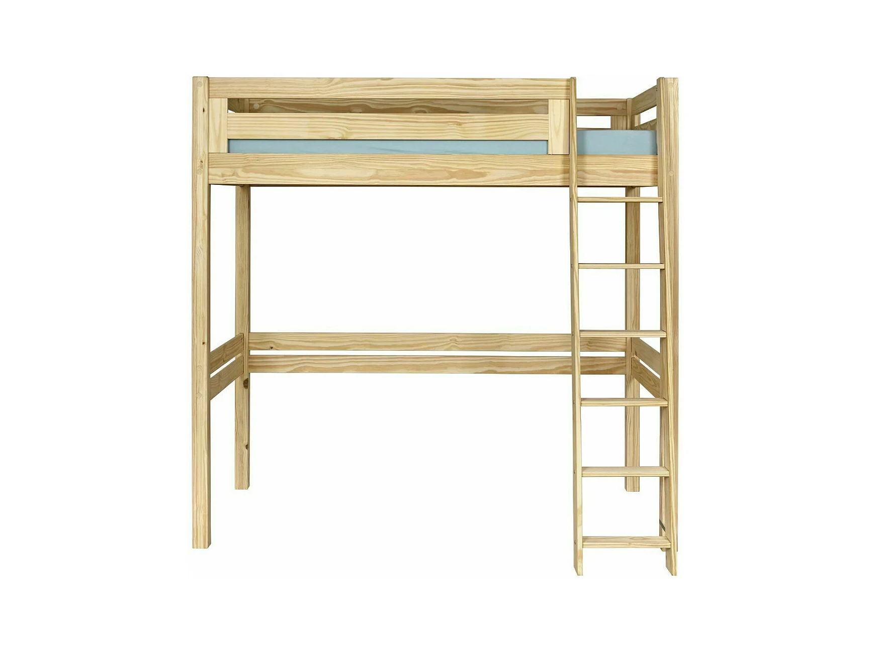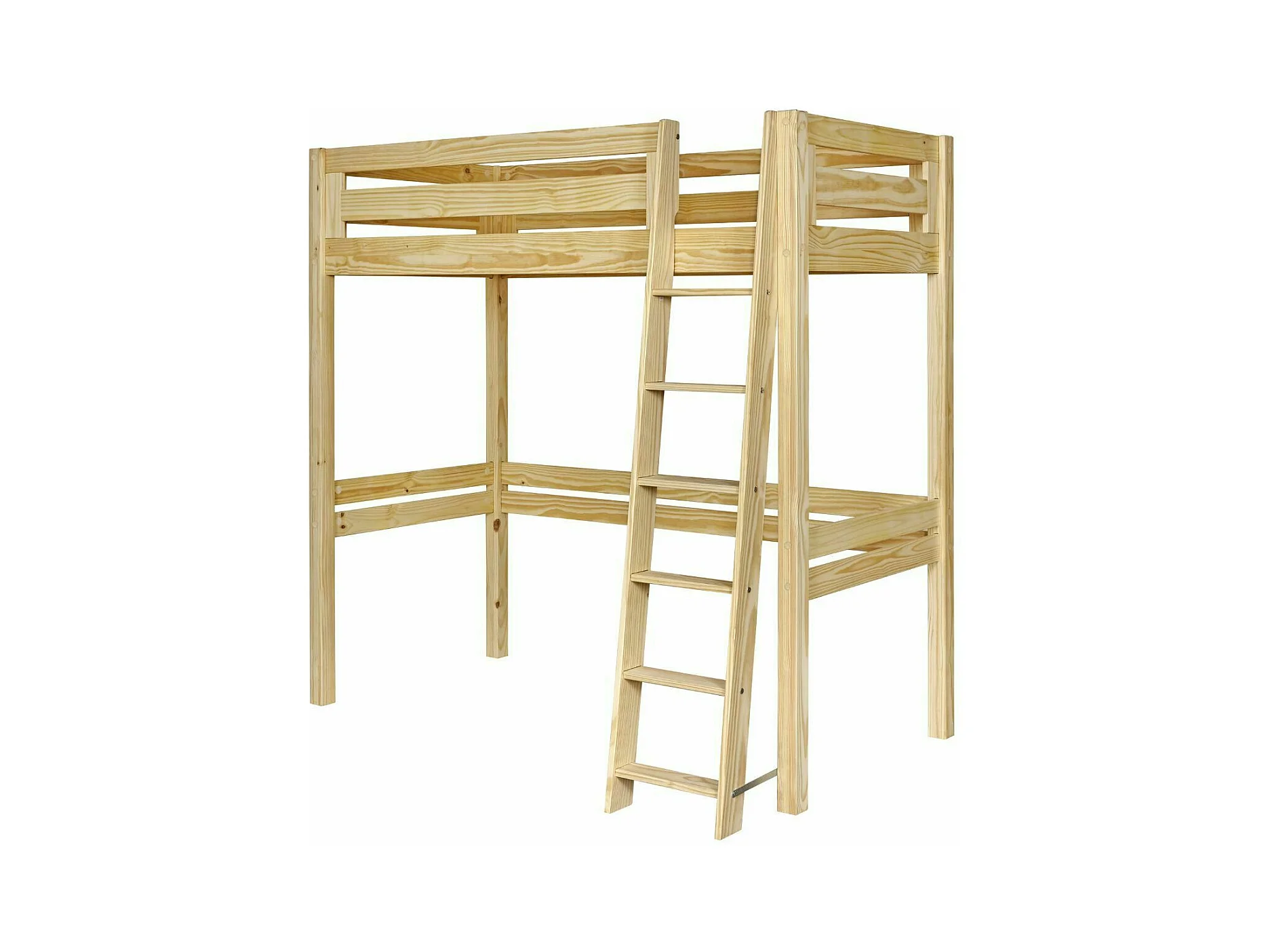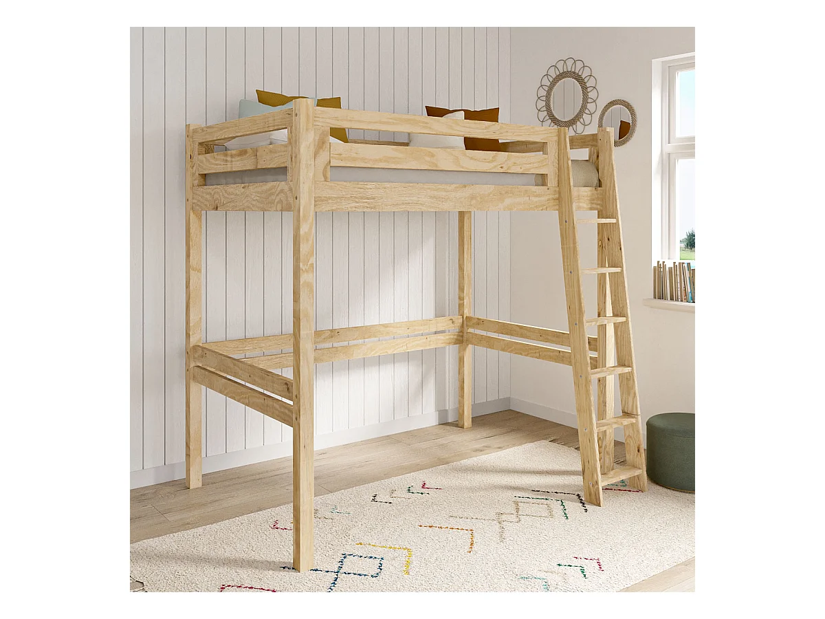 Lit mezzanine 2 places 140x190 cm bois massif bois naturel ORSAI