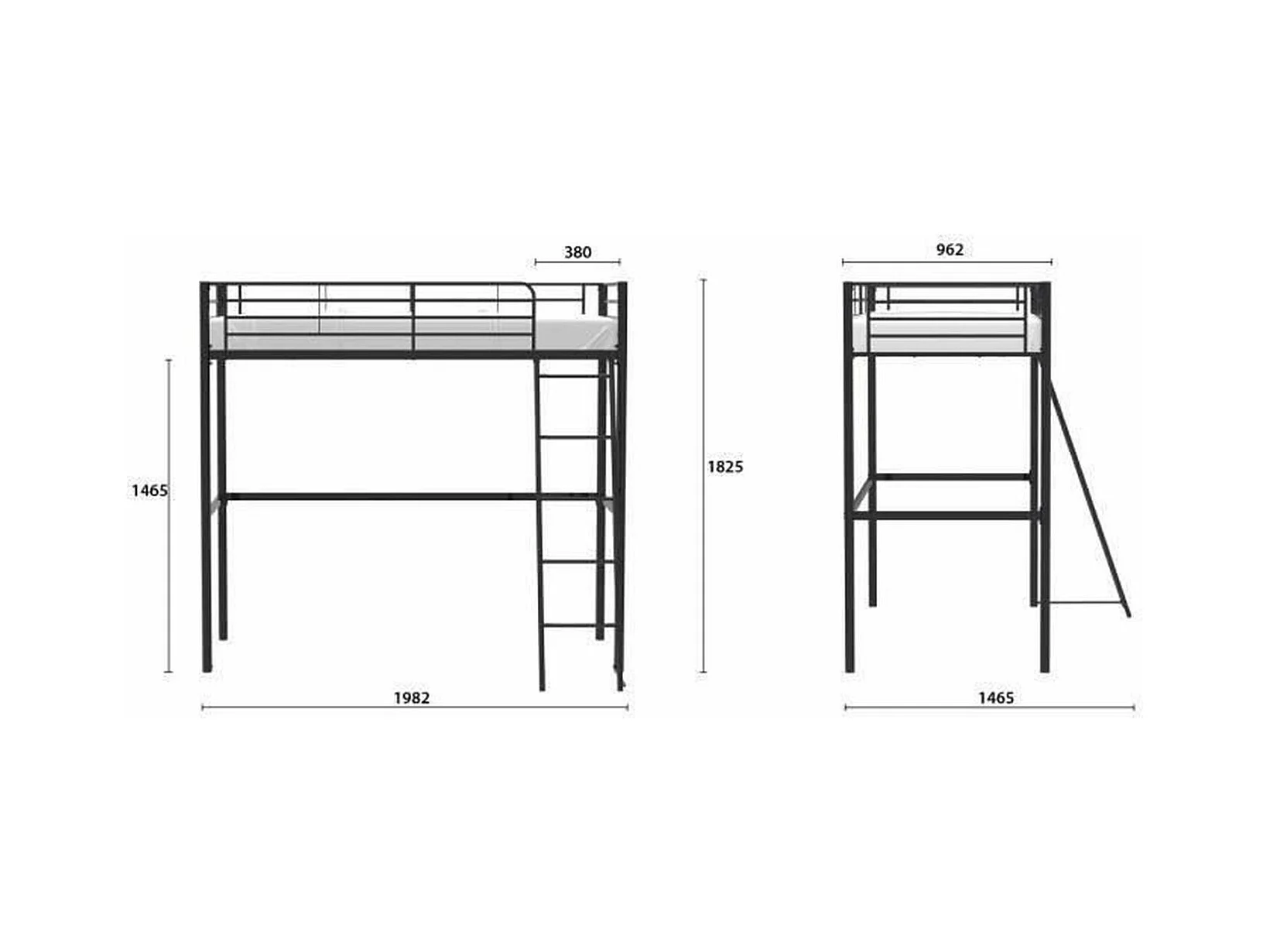 Lit mezzanine enfant ELIOT en métal noir 90 x 190 cm avec sommier inclus