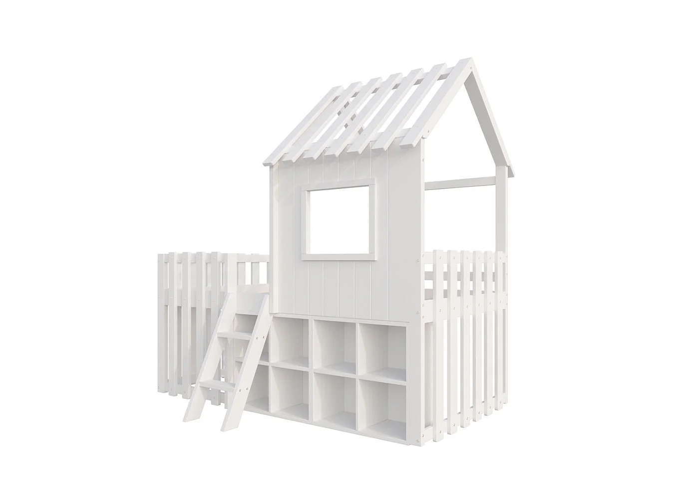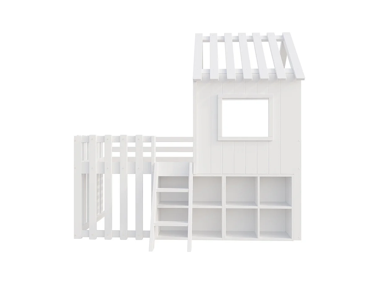 Lit mezzanine 90x200 avec toit et fenêtre avec espace de rangement ouvert avec échelle couleur blanc