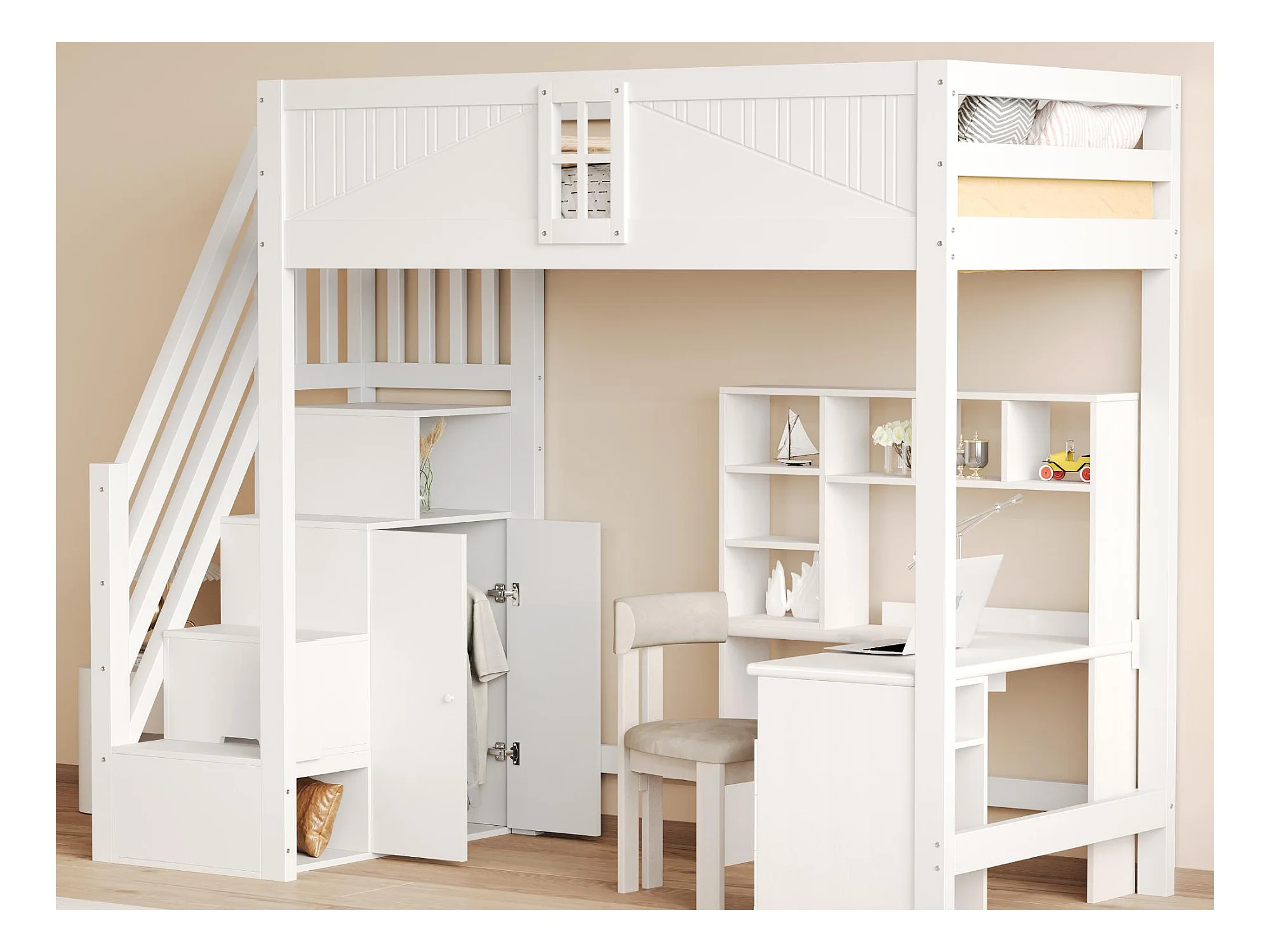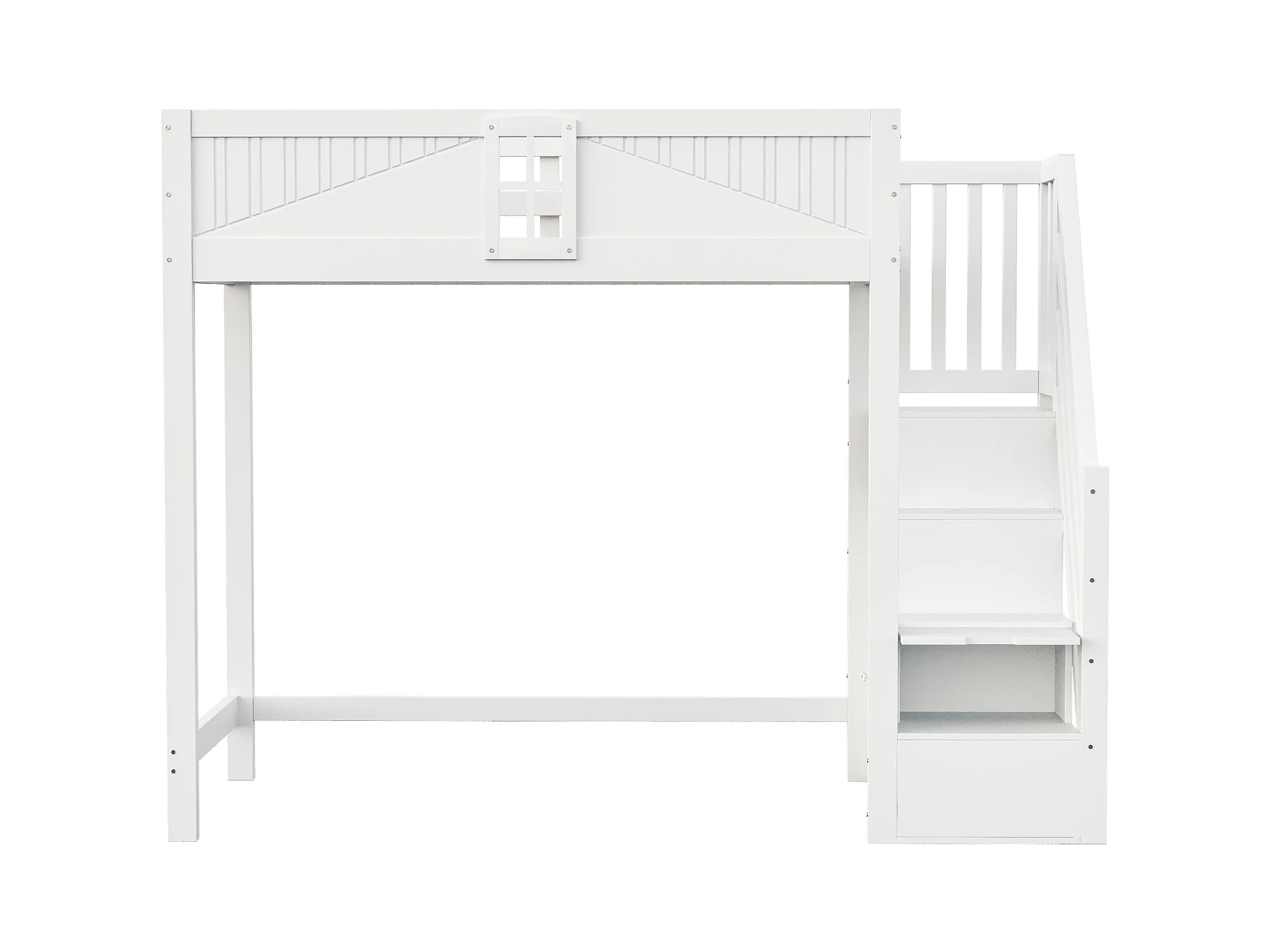 Lit mezzanine 90x200 cm - avec rangements - avec échelle - avec garde-corps - blanc (sans matelas)