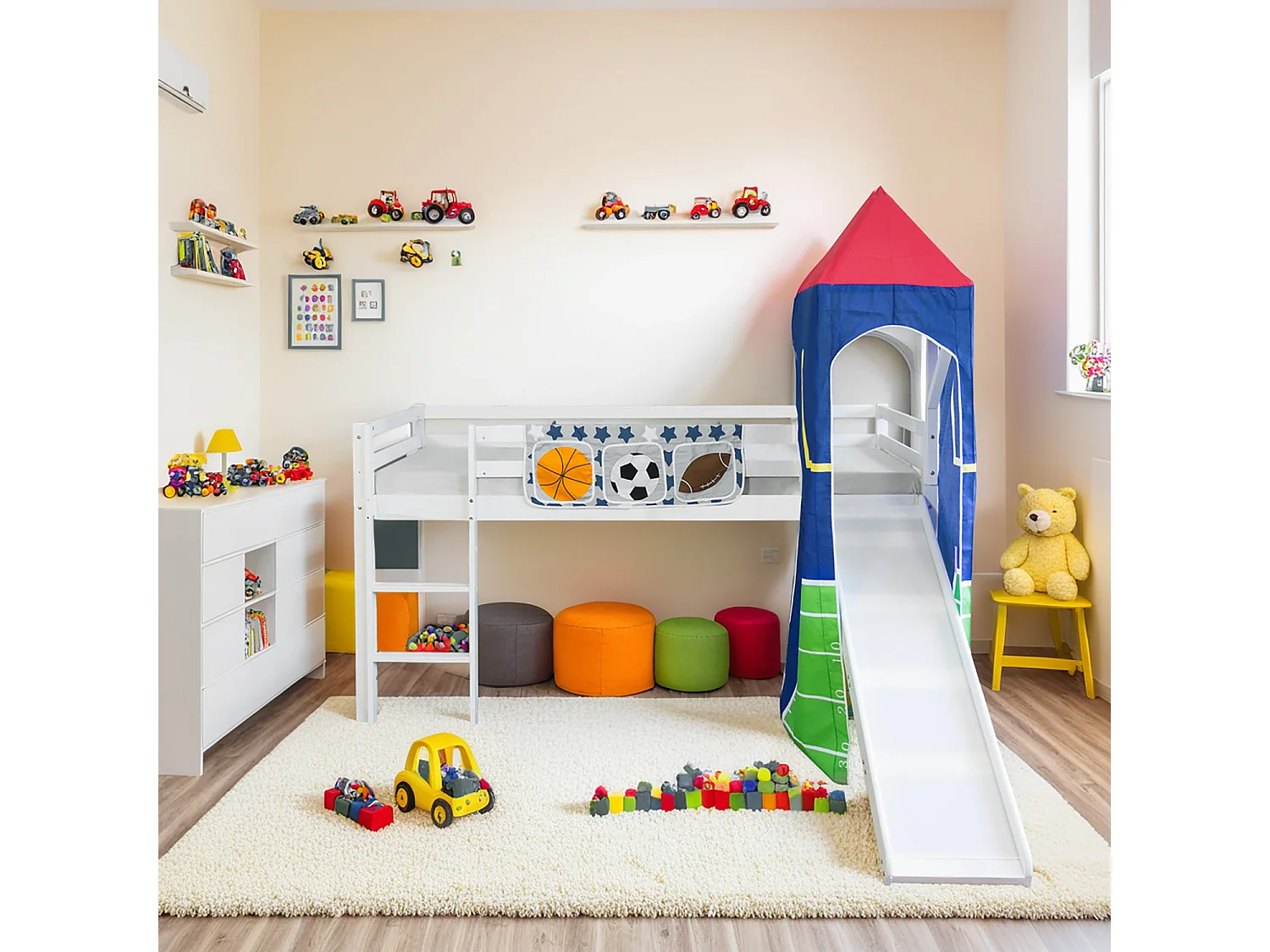 Lit Mezzanine 90x200 cm Blanc Bois Massif Football
