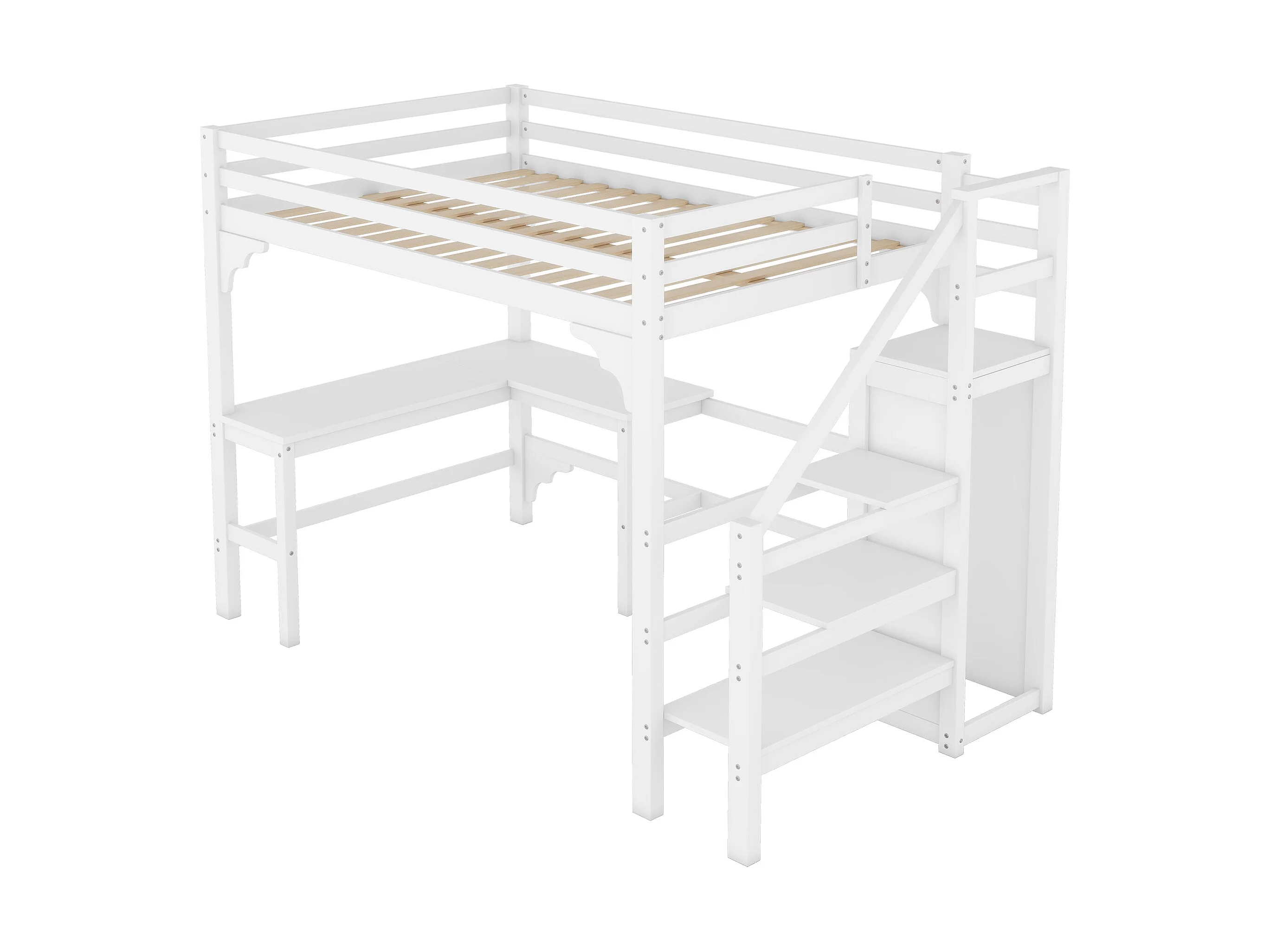 Lit mezzanine 140x200 cm avec sommier - bureau échelle et armoire - bois - blanc (sans matelas)