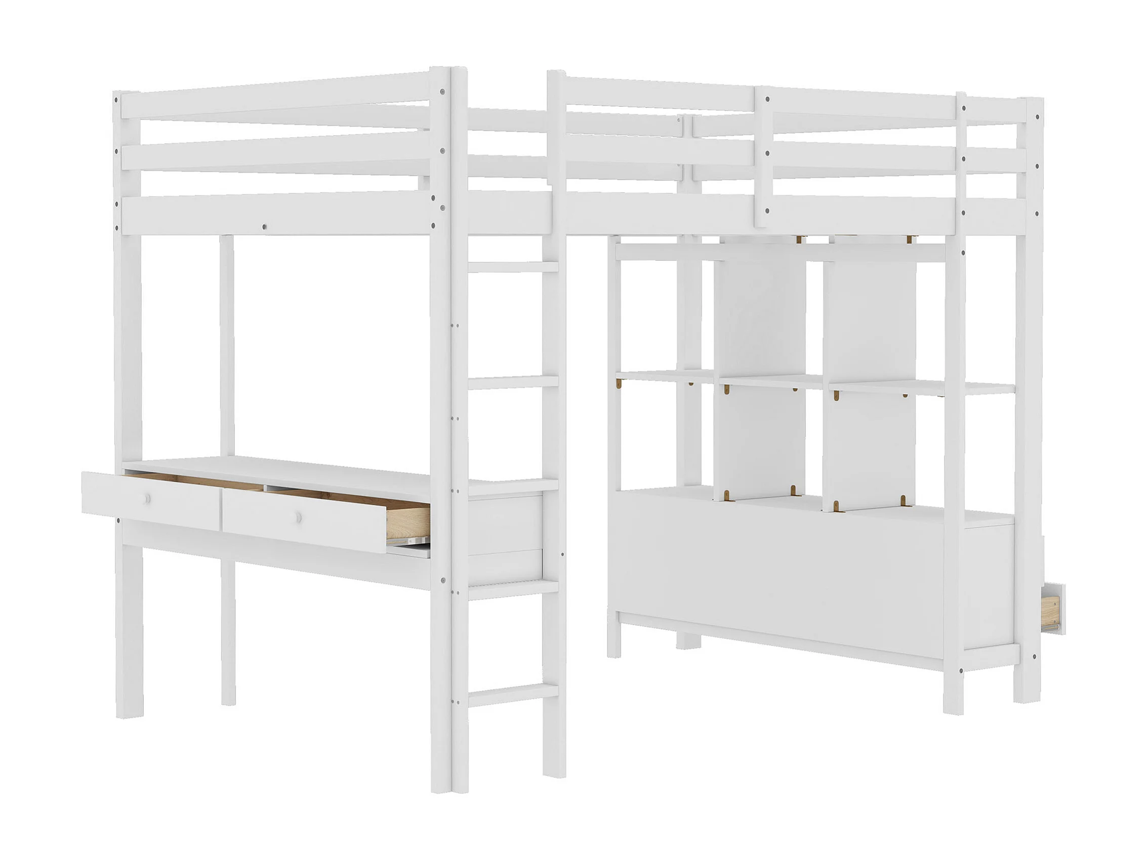 Lit mezzanine 140x200 cm avec sommier - protection anti-chute bureau et 6 tiroirs - bois - blanc (sans matelas)