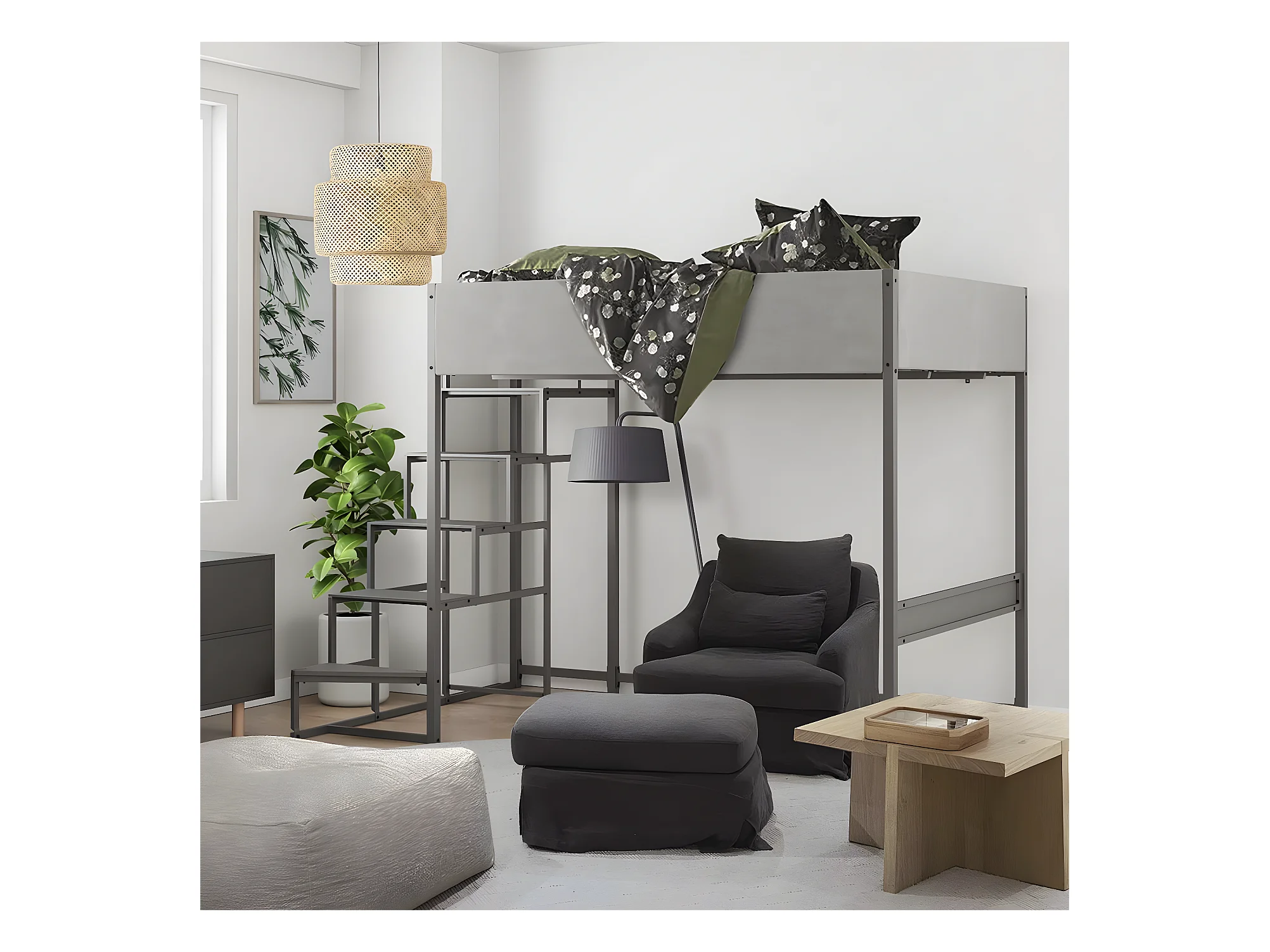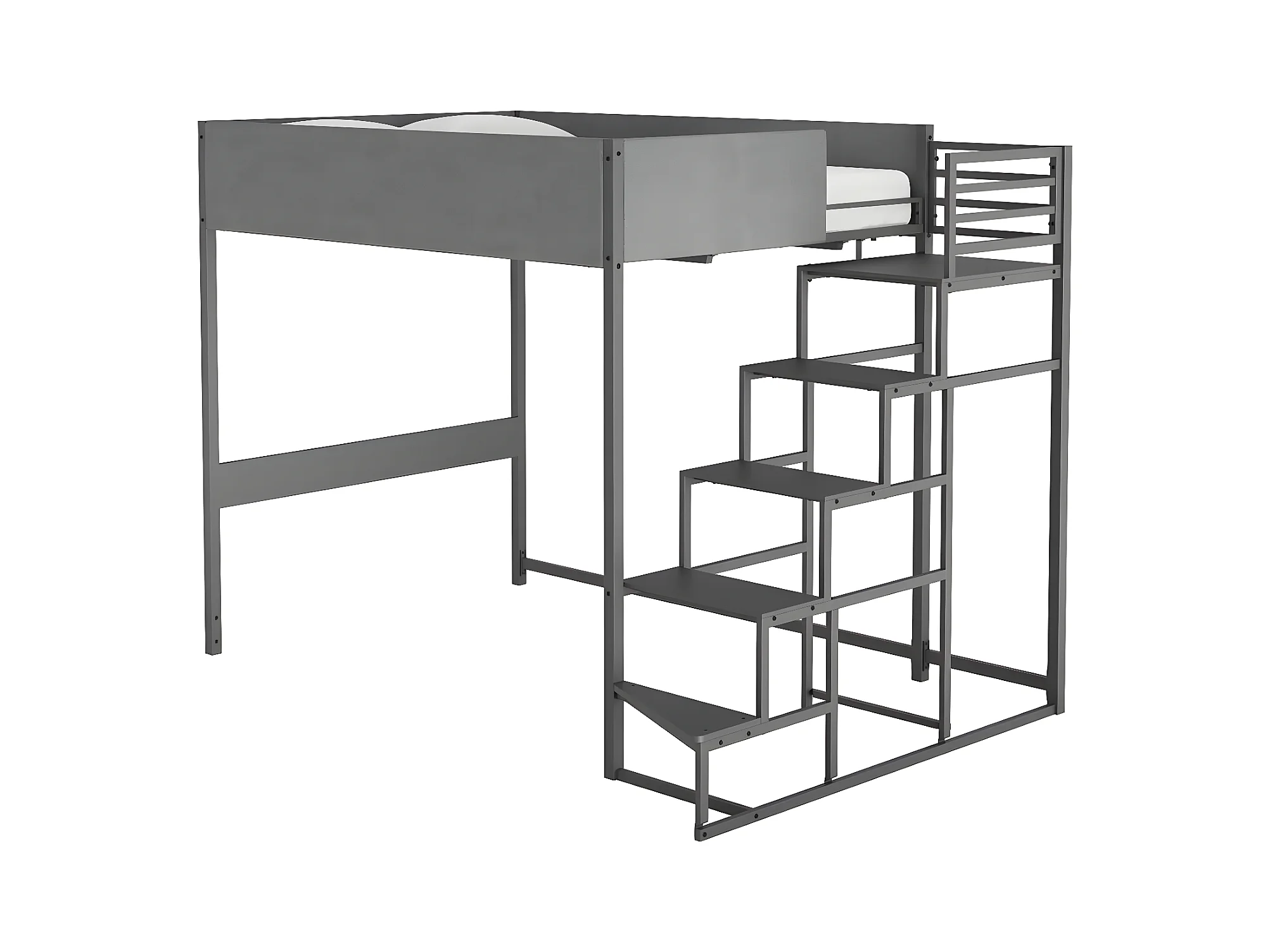 Lit mezzanine avec sommier + escalier en tissu gris, métal finition epoxy grise et mélamine grise - grand couchage 140x190 cm - DOCKLAND
