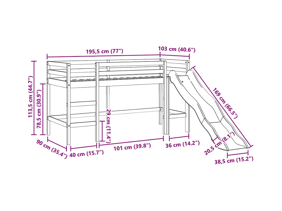 Lit mezzanine d'enfants sans matelas 90x190 cm bois pin massif