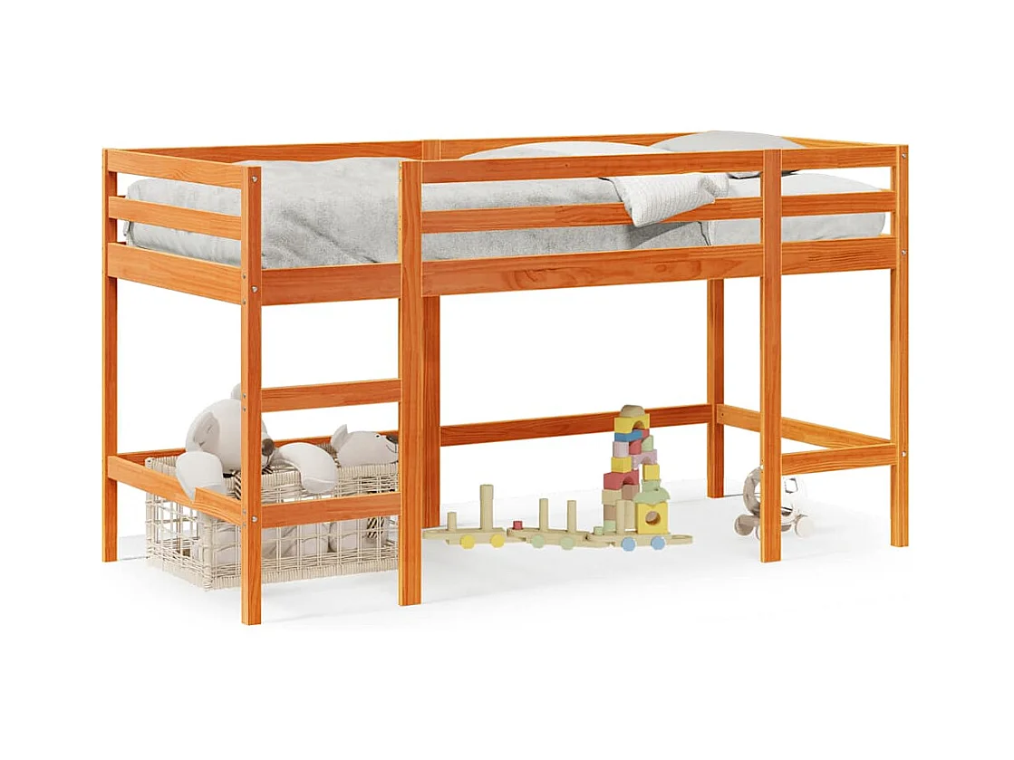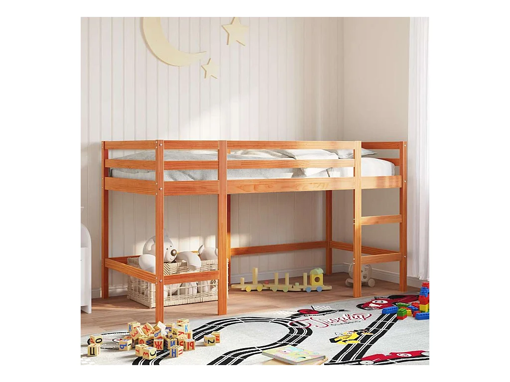 Lit mezzanine avec bureau cire marron 90x190 cm bois pin massif HOQW90679