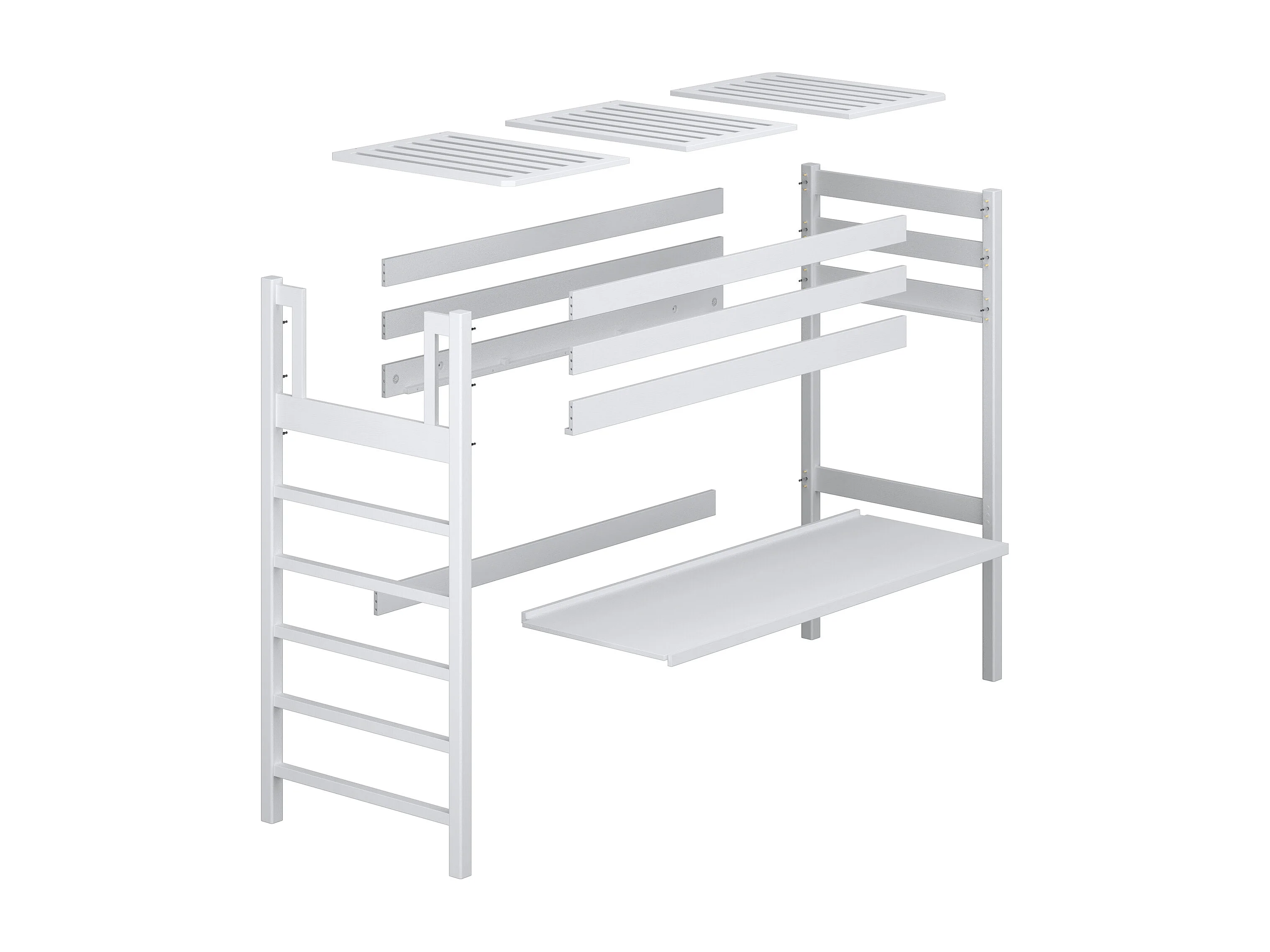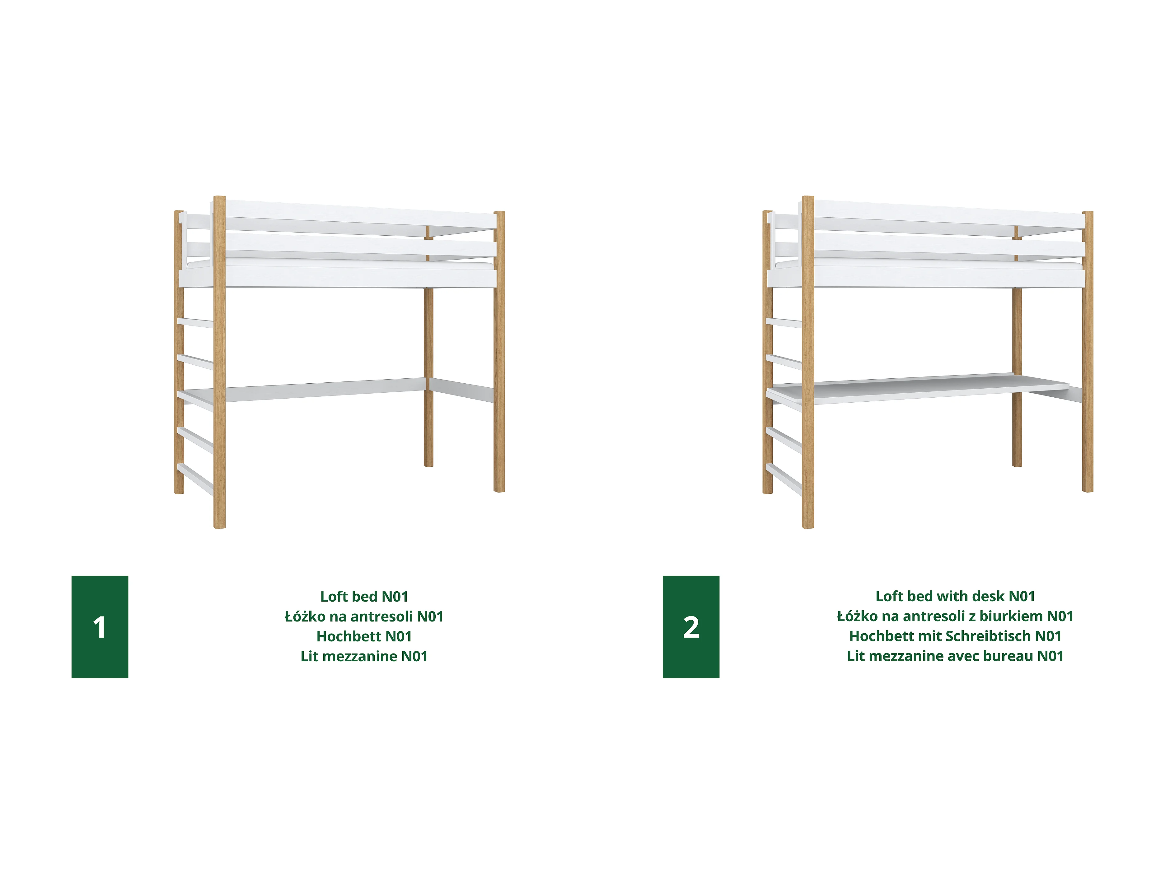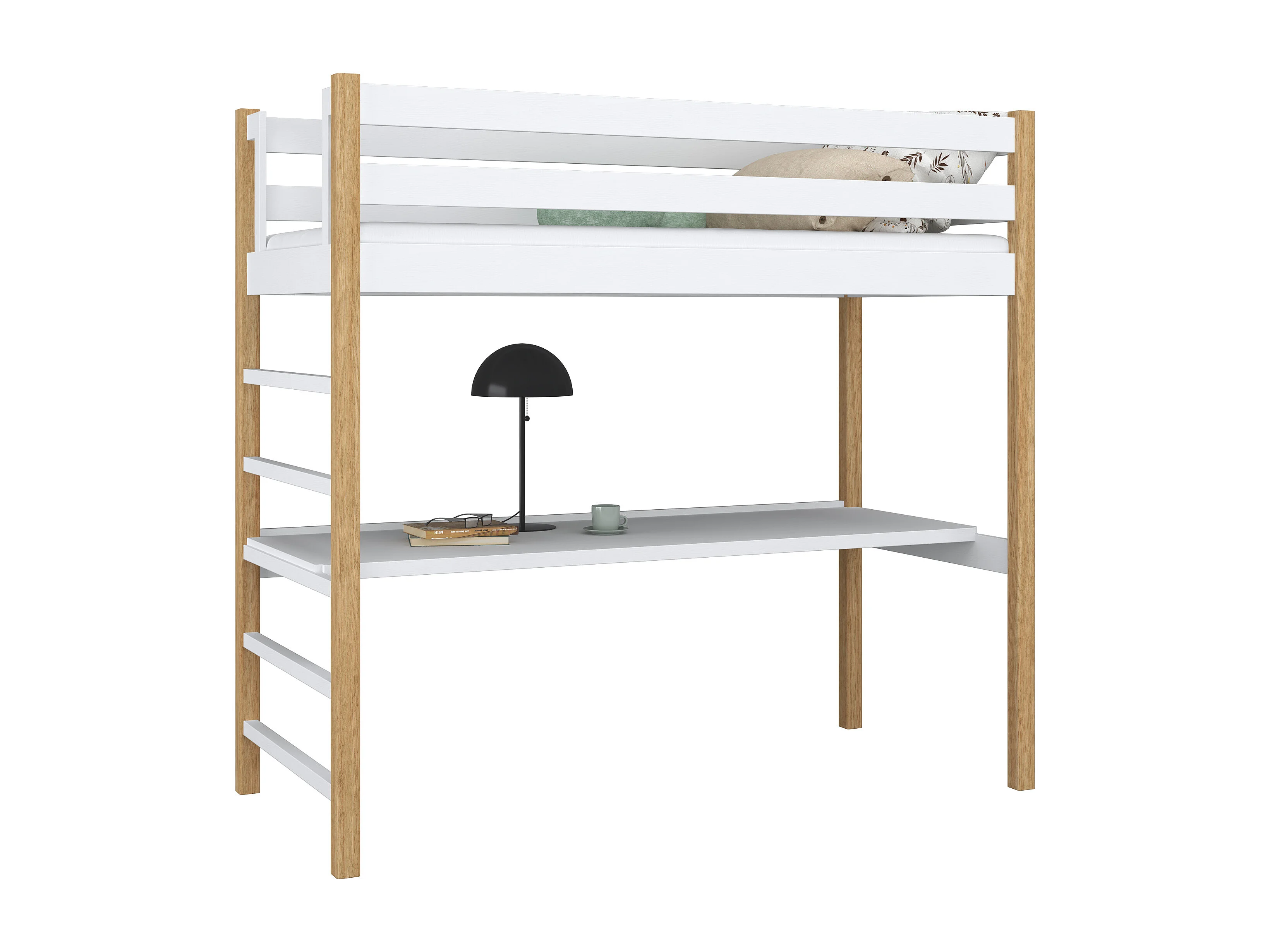Lit mezzanine en bois - avec bureau N01 Blanc / Chêne Naturel 100x190