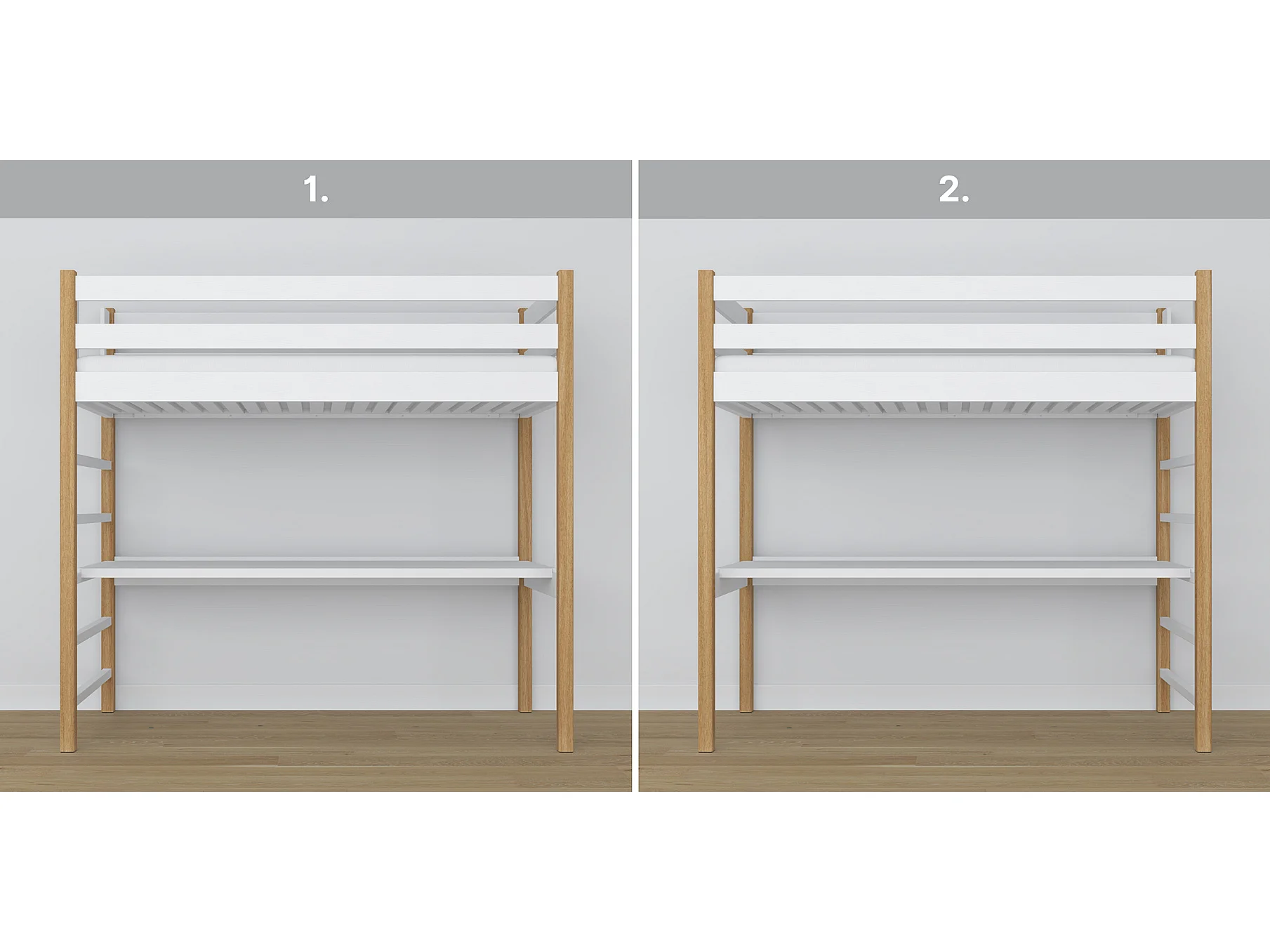 Lit mezzanine en bois - avec bureau N01 Blanc / Chêne Naturel 100x200