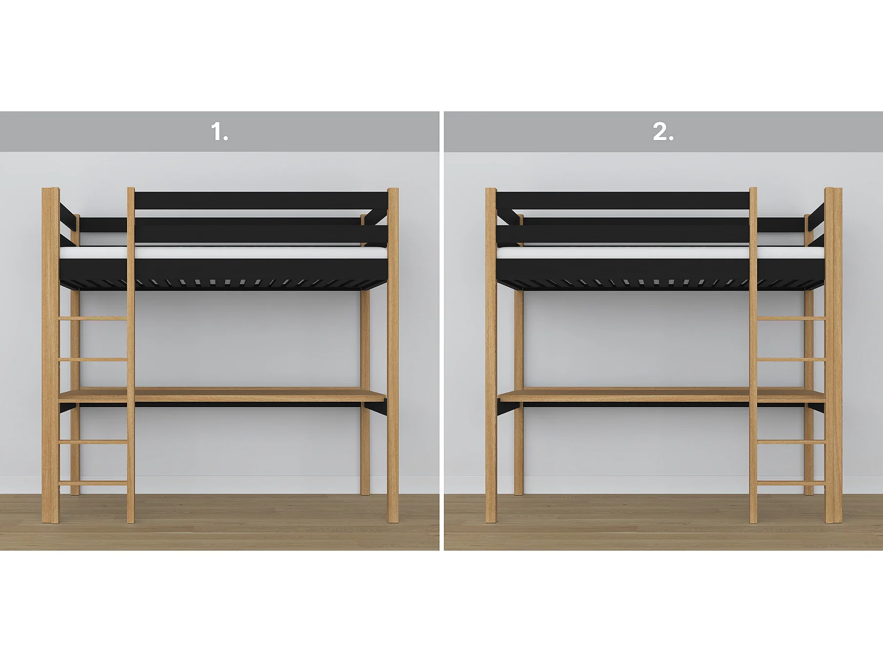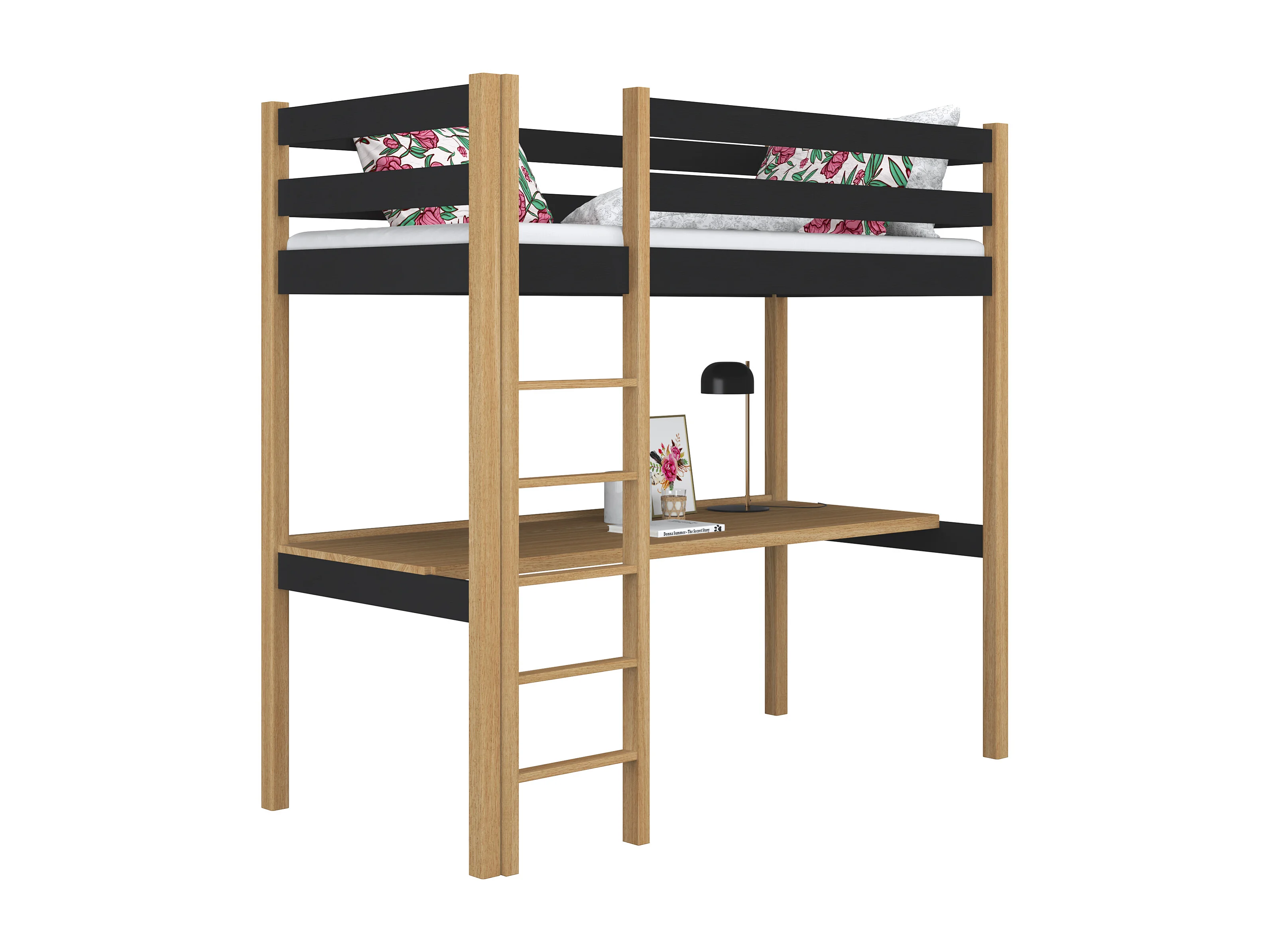 Lit mezzanine en bois - avec bureau N05 Noir / Chêne Naturel 120x180