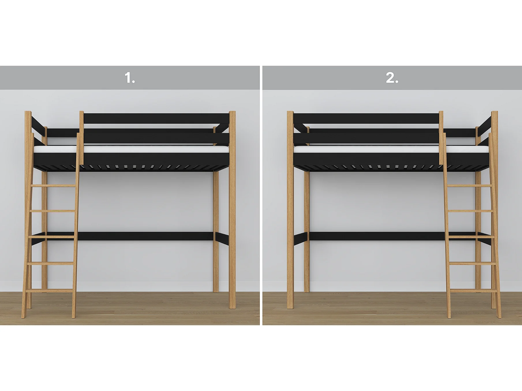 Lit mezzanine en bois N03 Noir / Chêne Naturel 120x180