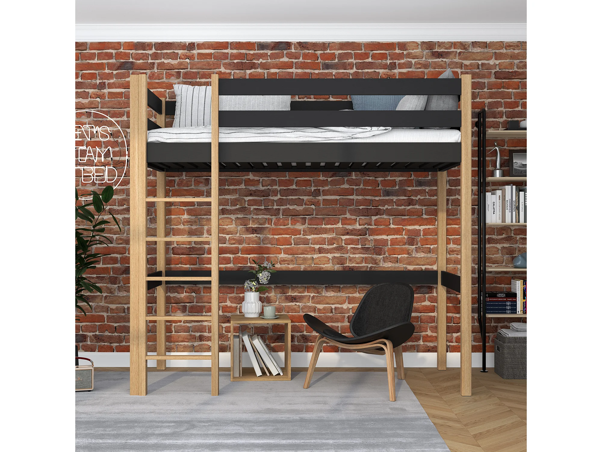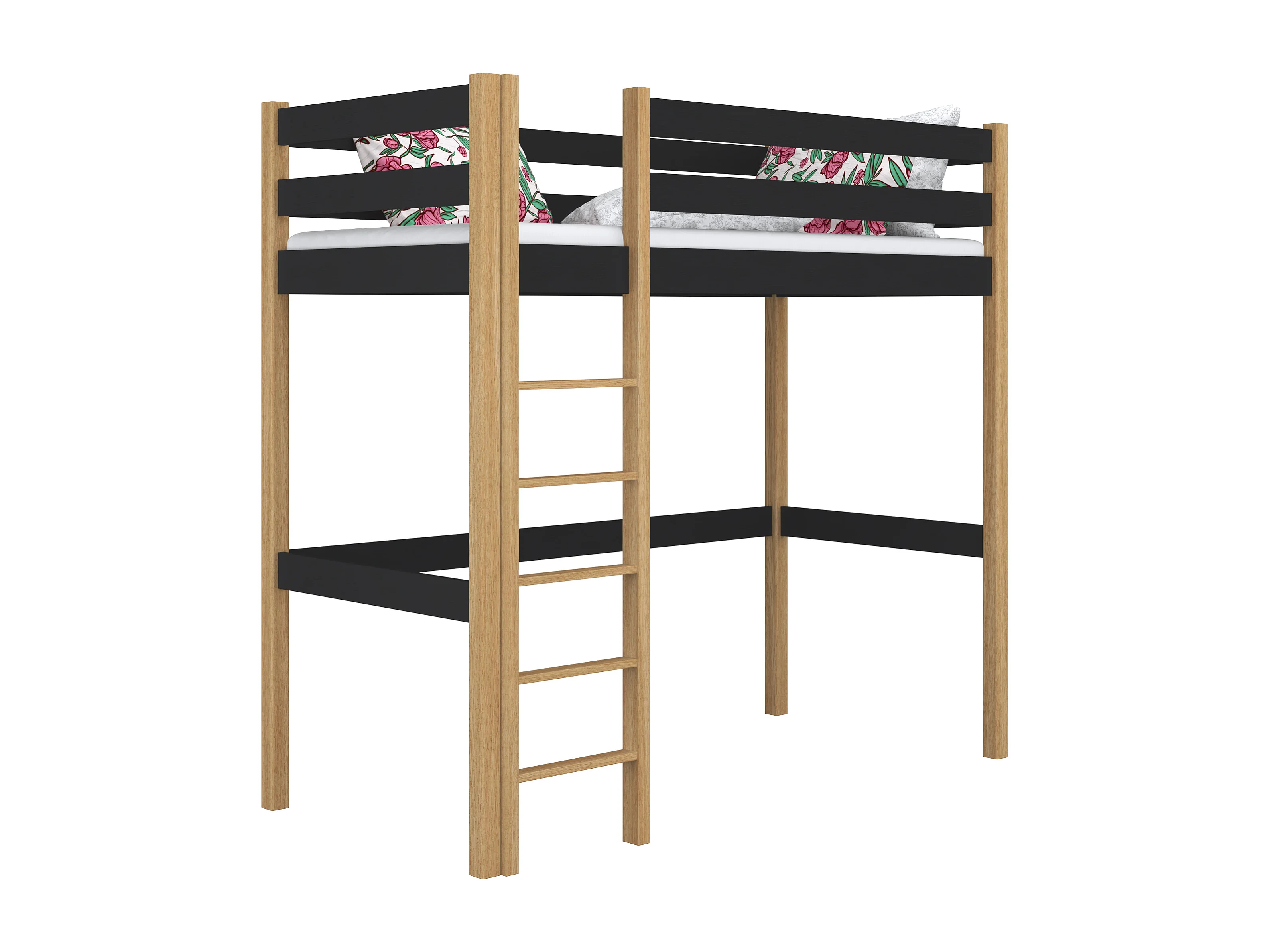 Lit mezzanine en bois N05 Noir / Chêne Naturel 120x180