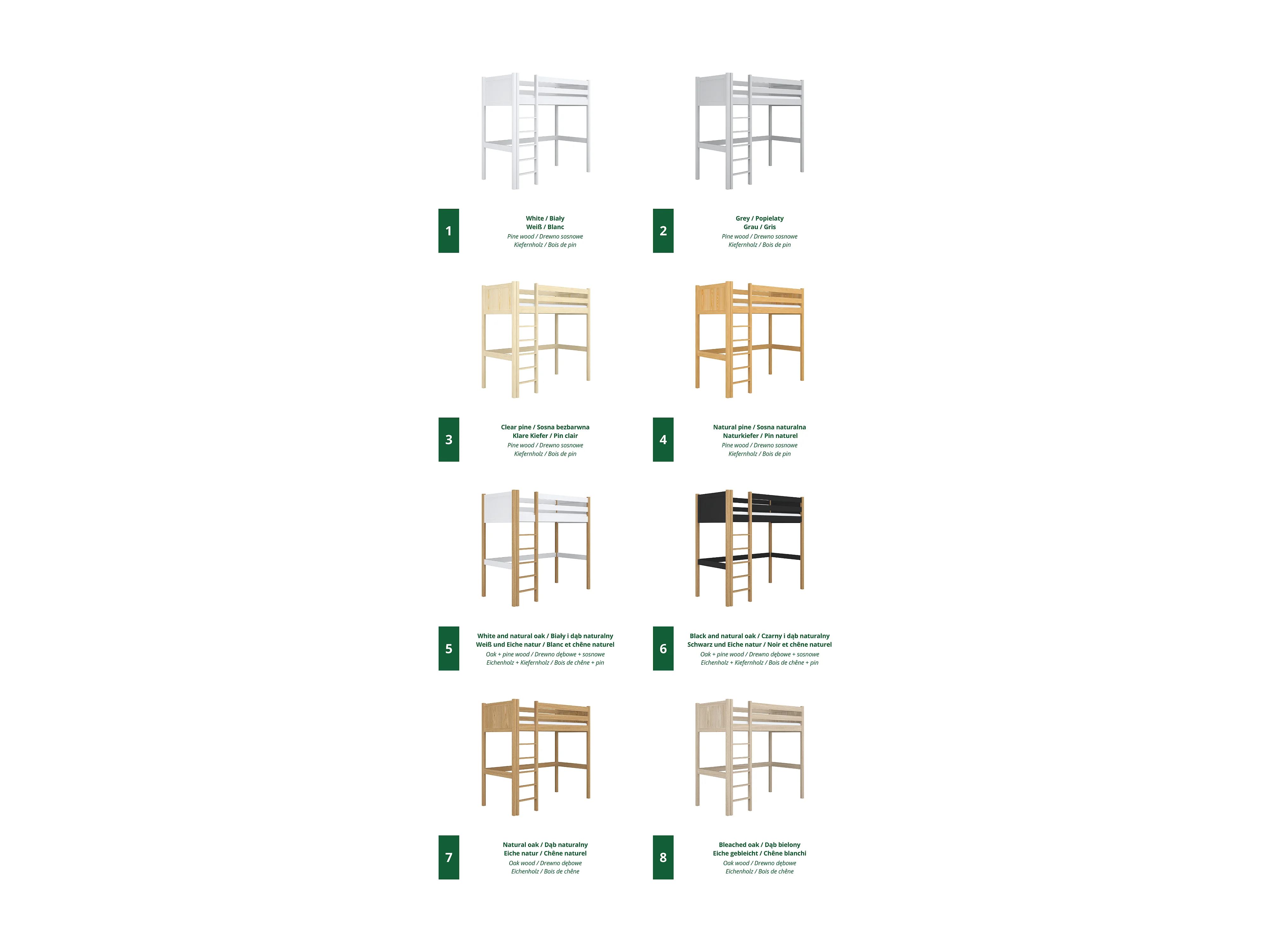 Lit mezzanine en bois N06 Noir / Chêne Naturel 120x180