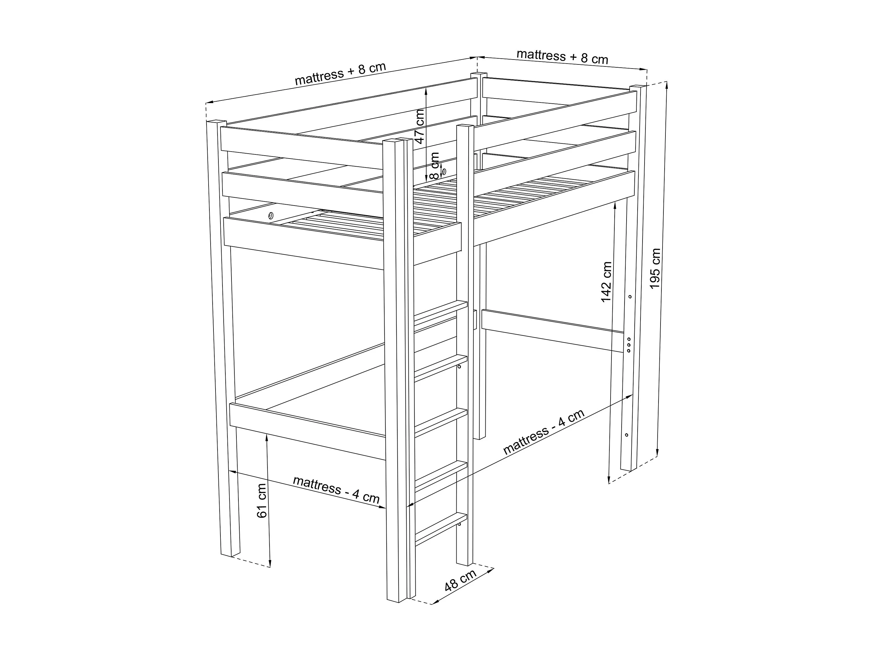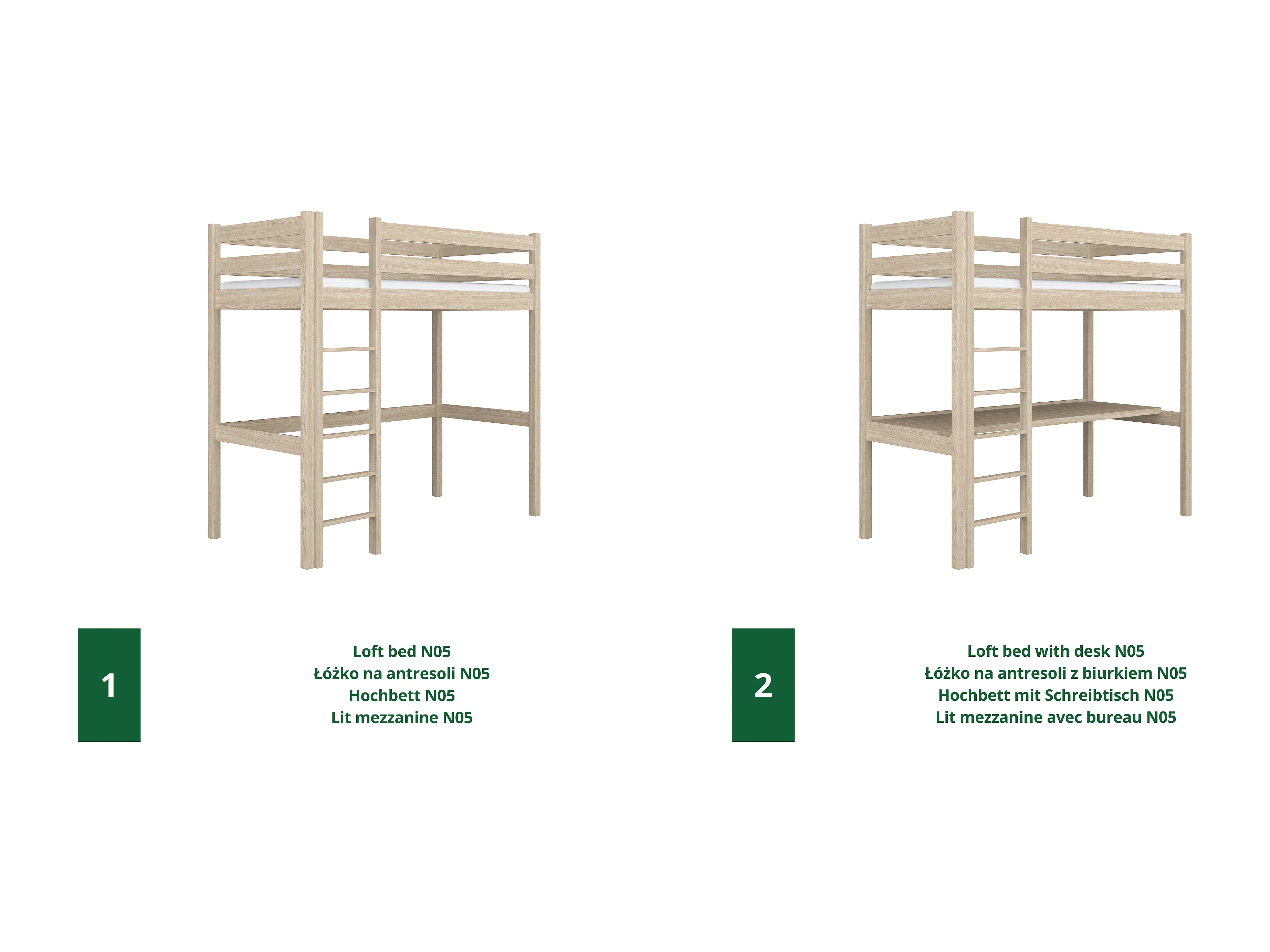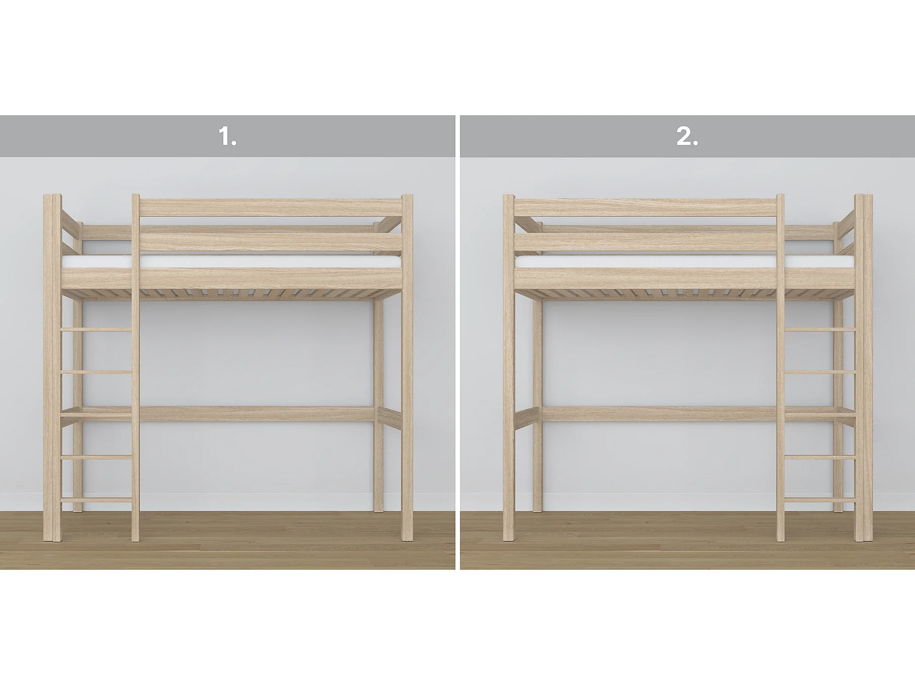 Lit mezzanine en chêne N05 Chêne Blanchi 90x190