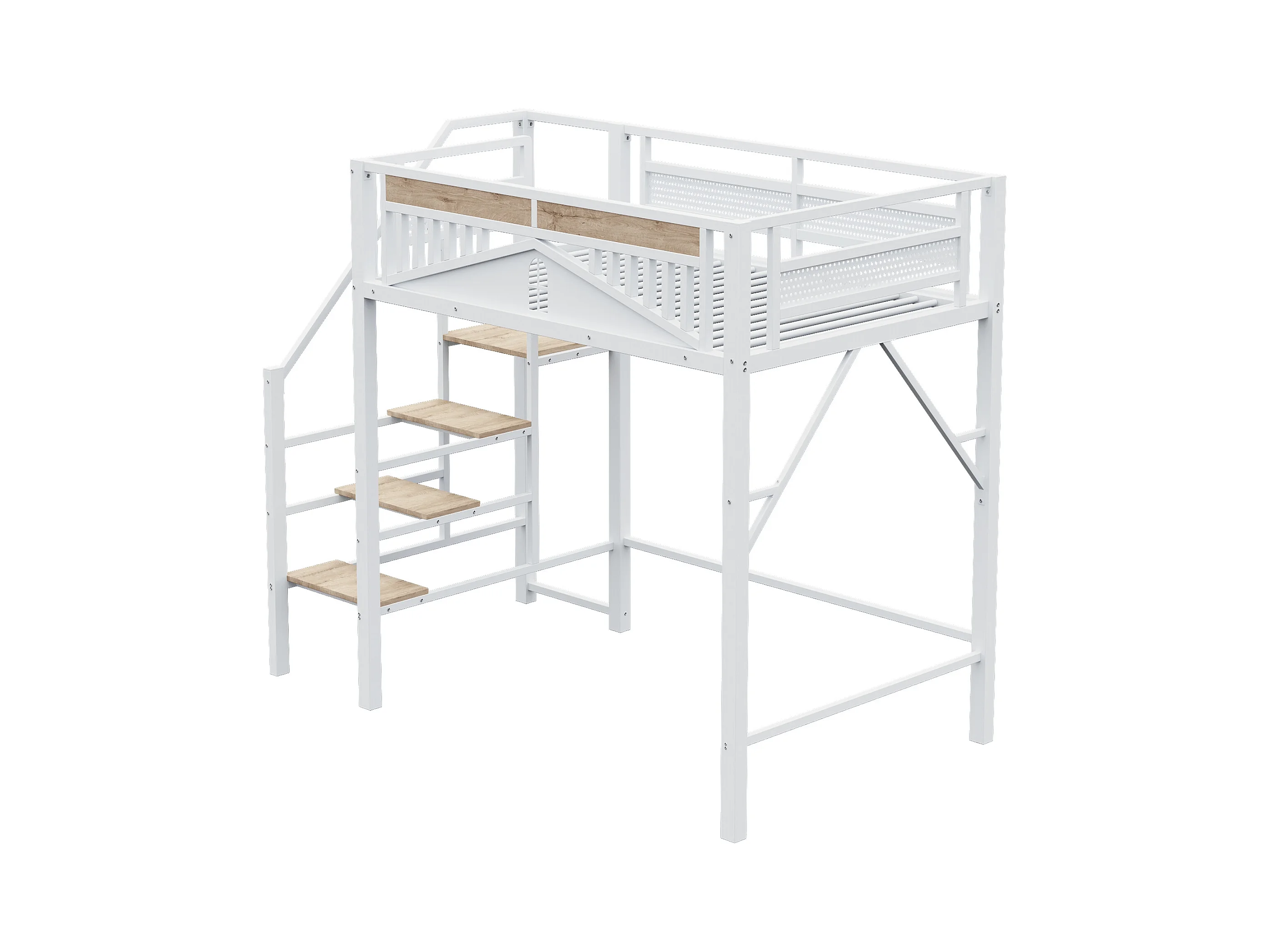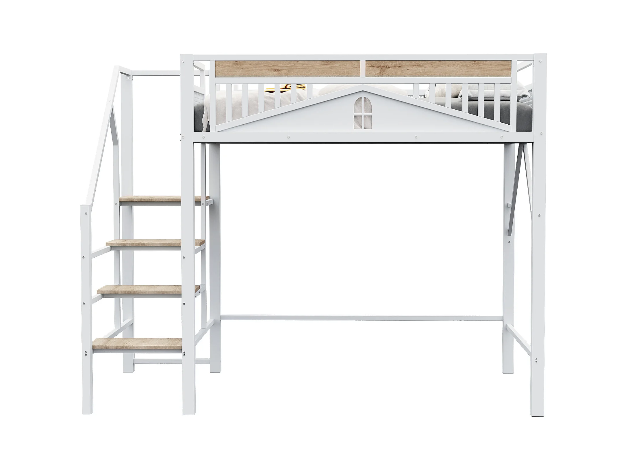 Lit mezzanine en métal 140x200cm - avec échelle - avec barrières de sécurité - blanc (matelas non inclus)
