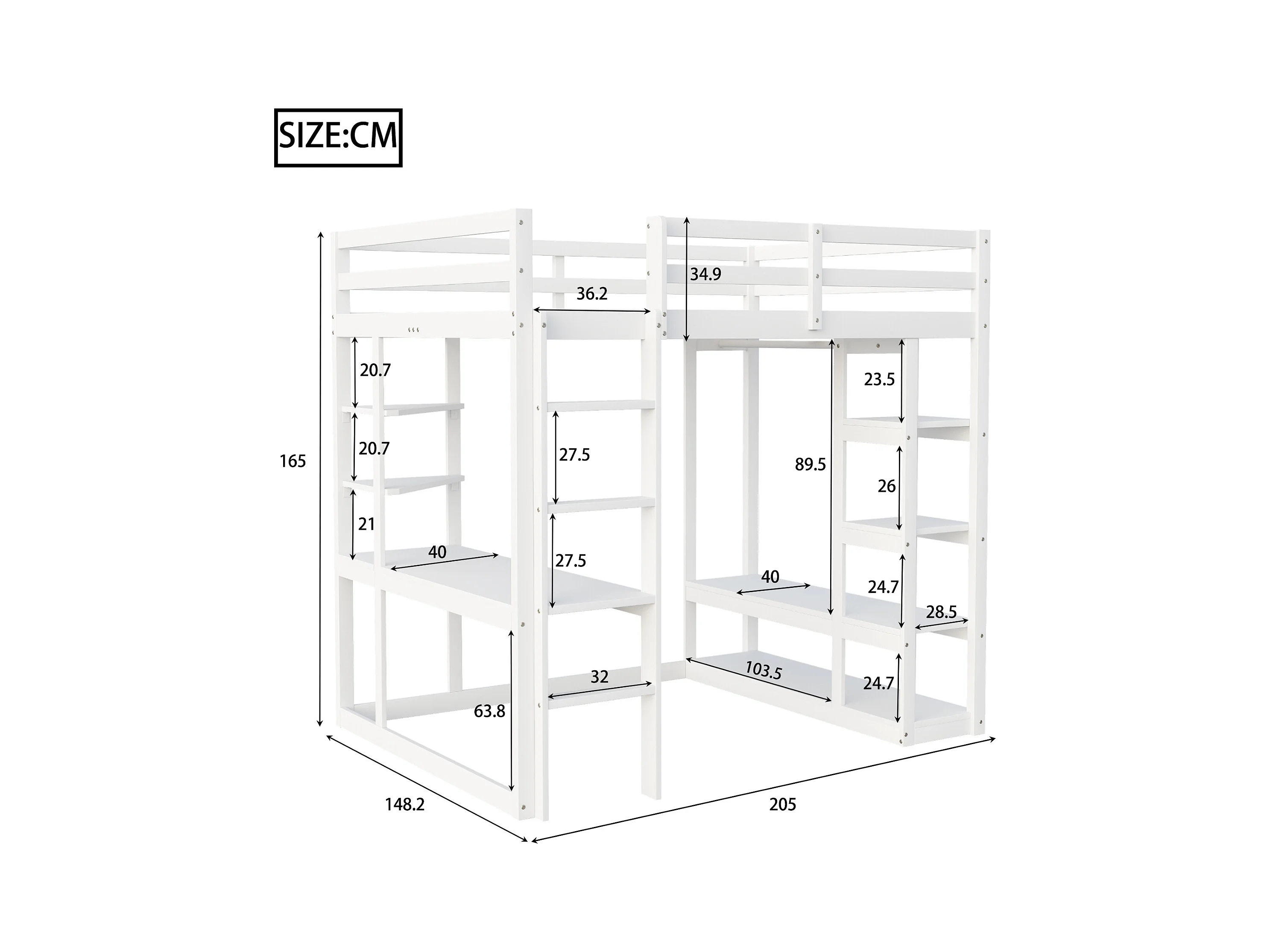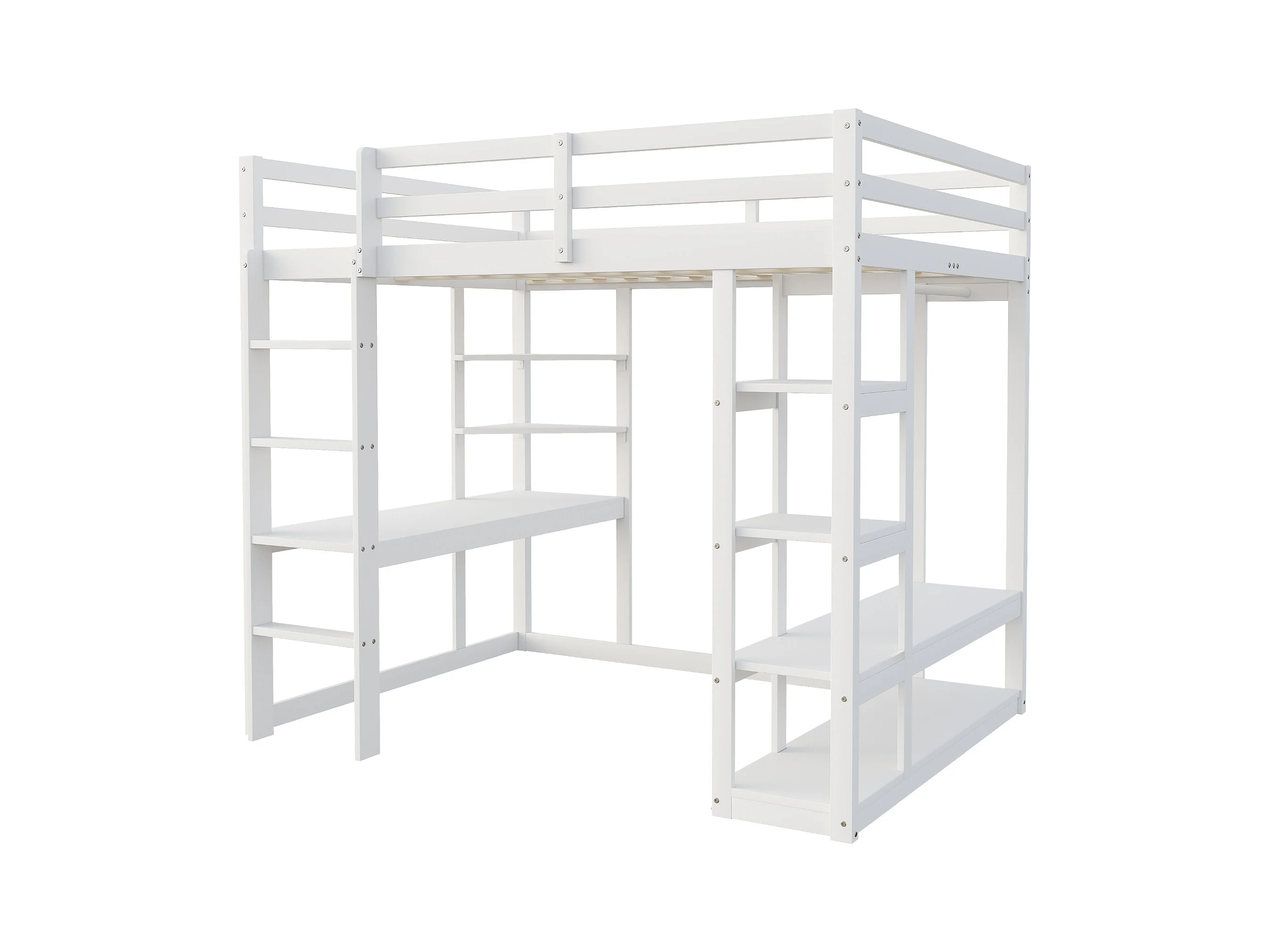 Lit mezzanine enfant 140x200cm - avec échelle - avec table - avec cintre simple - blanc (sans matelas)