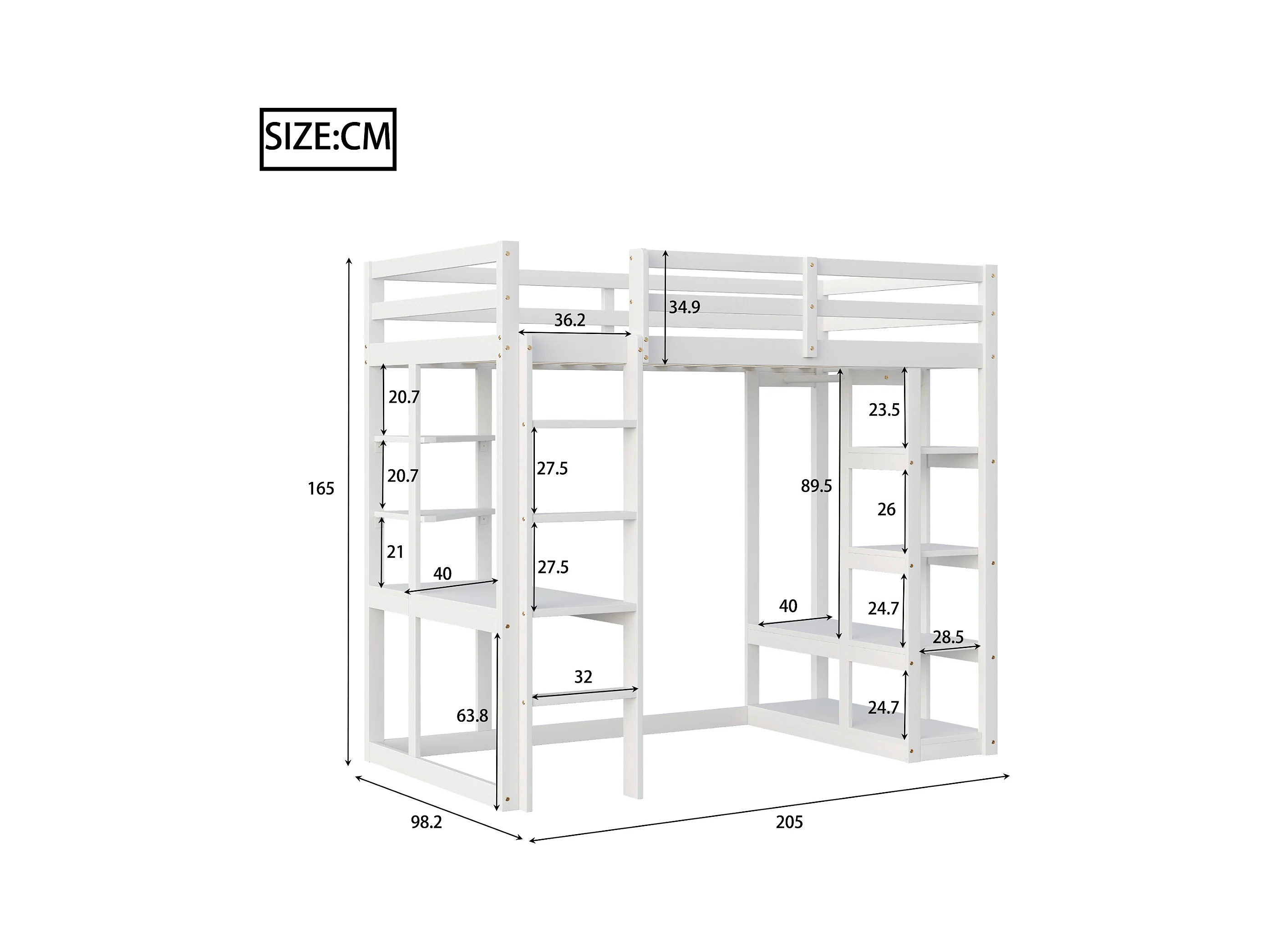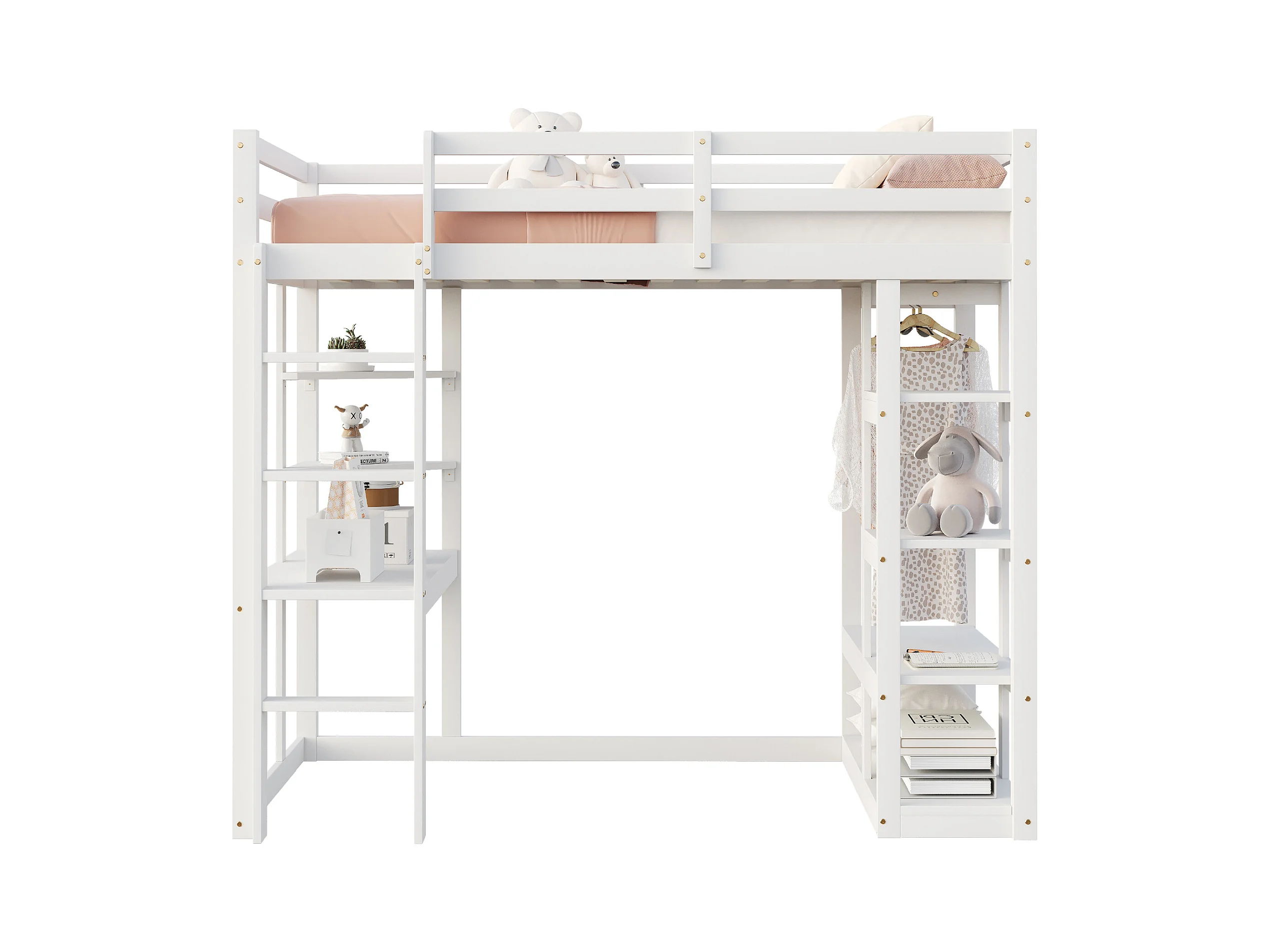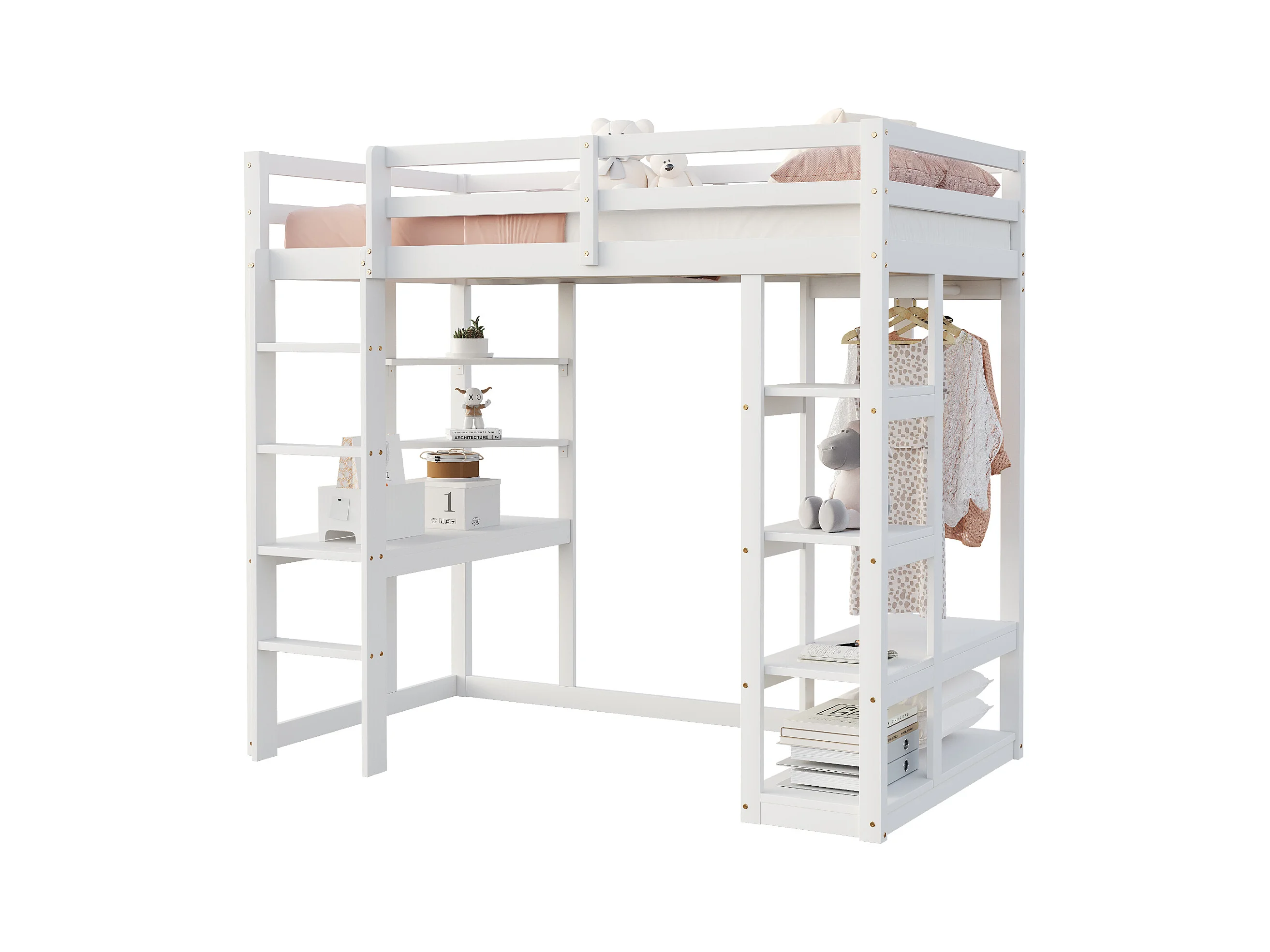 Lit mezzanine enfant 90x200cm - avec échelle - avec table - avec cintre simple - blanc (sans matelas)