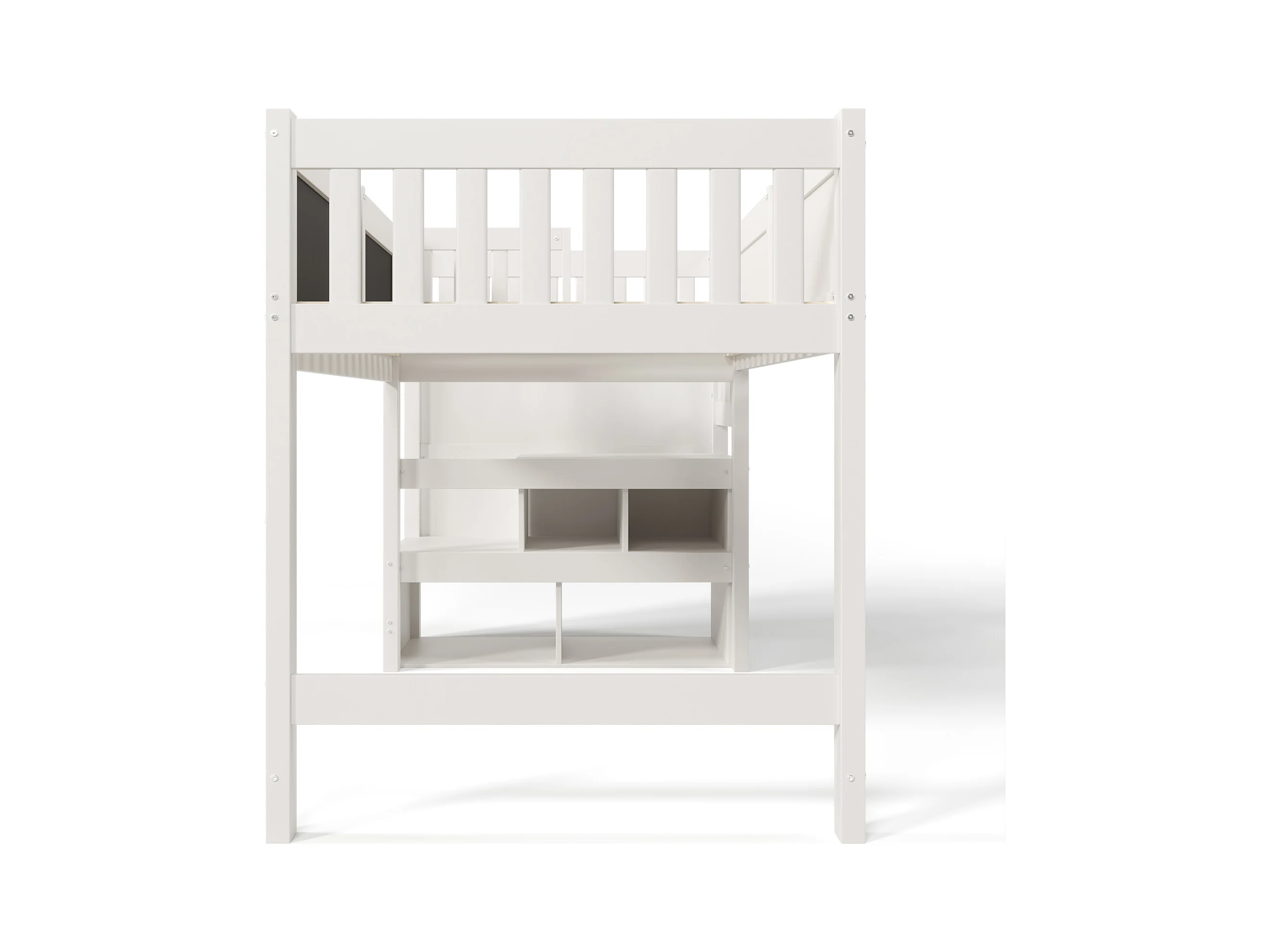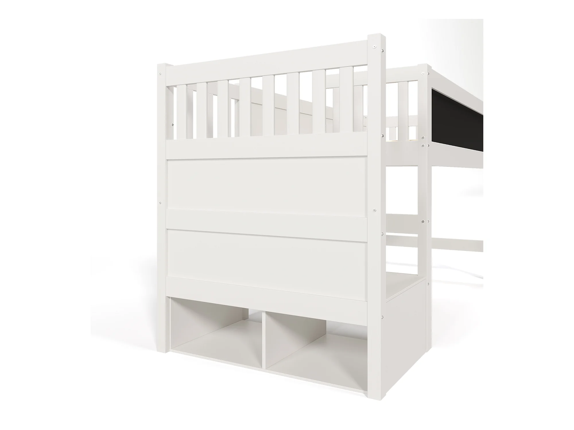 Lit mezzanine enfant blanc 90x200cm avec escalier de rangement et tablette écritoire, sans matelas