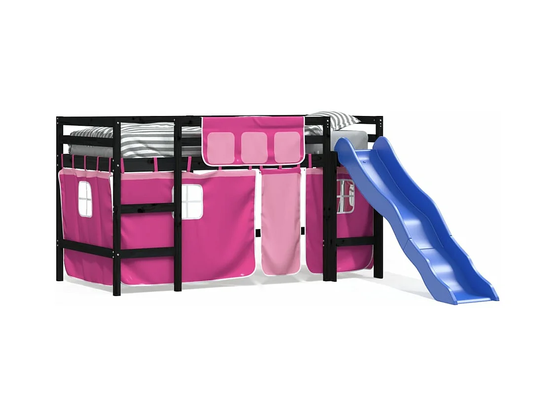 Lit mezzanine enfants et rideaux rose 80x200cm bois pin massif HOQW66610