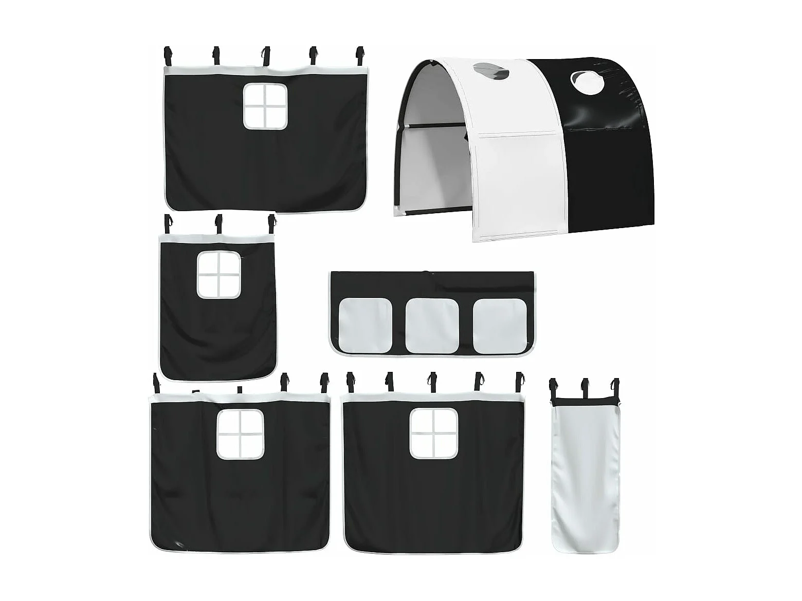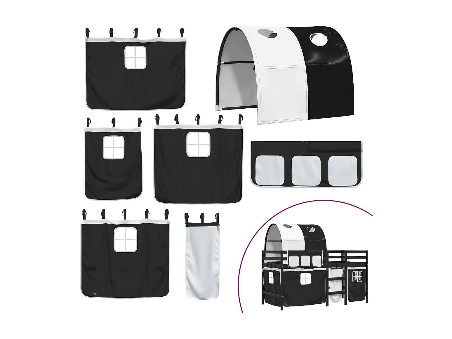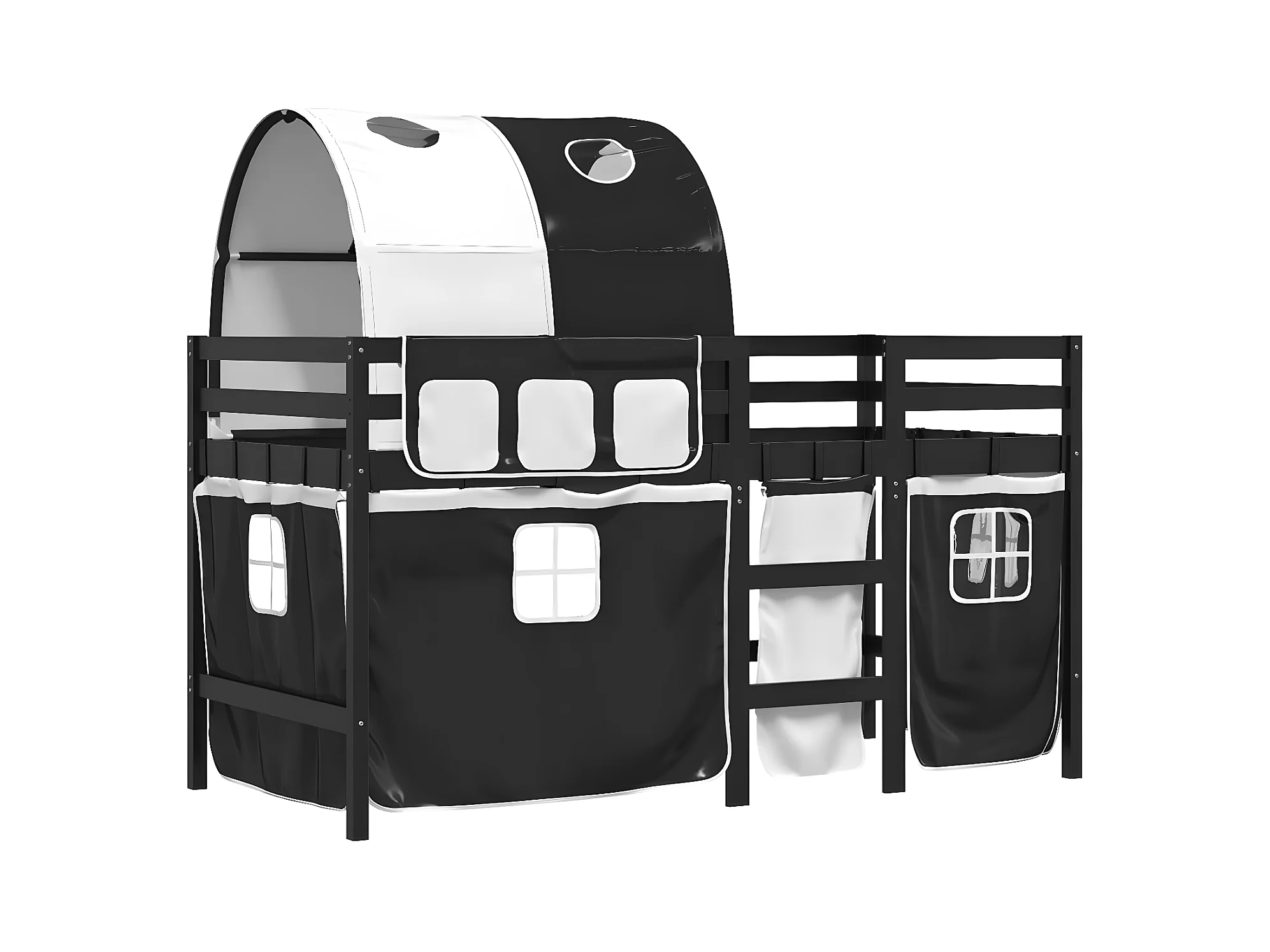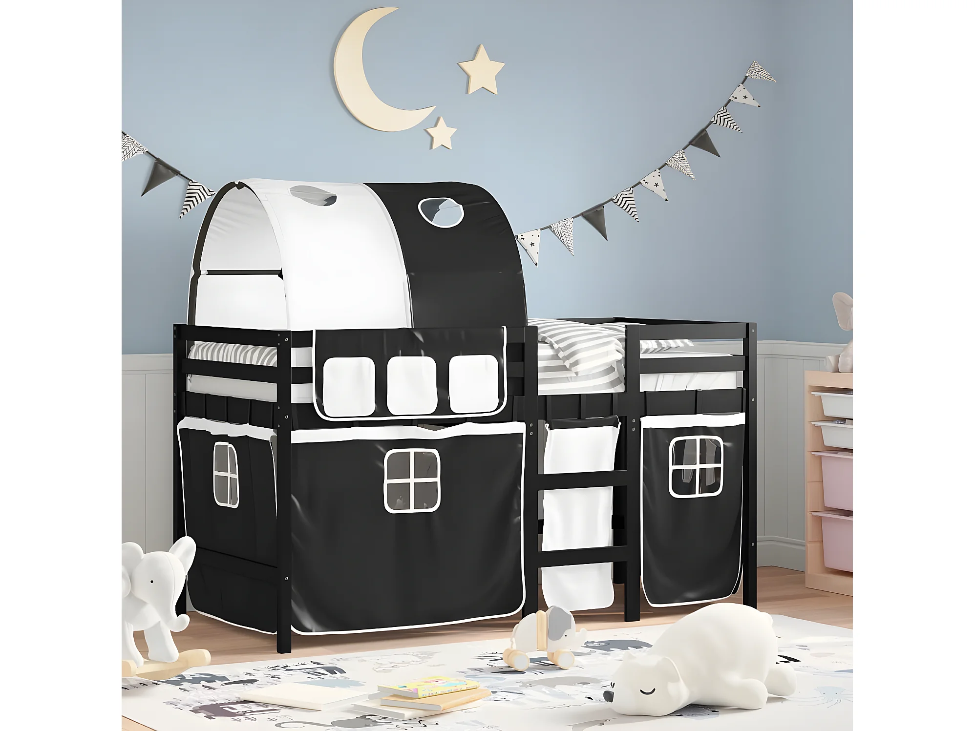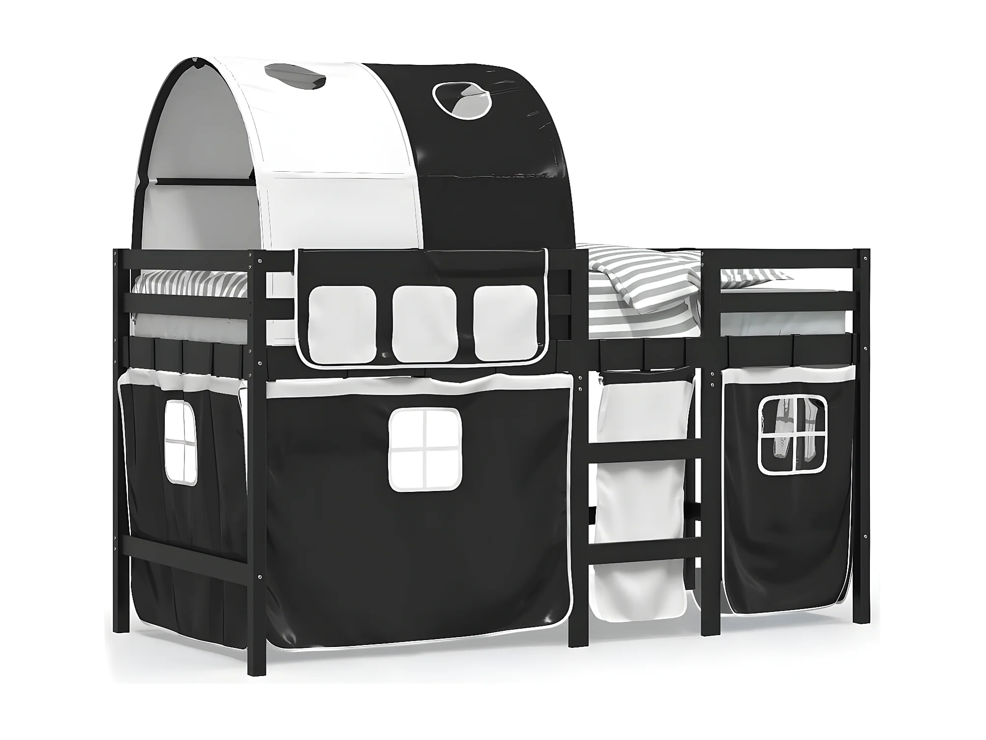 Lit mezzanine enfants et tunnel blanc/noir 80x200cm pin massif