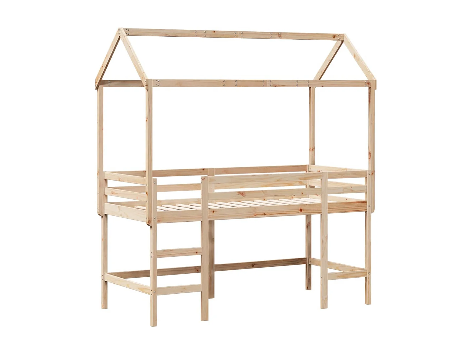 Lit mezzanine et échelle et toit 90x190 cm bois de pin massif FR26332
