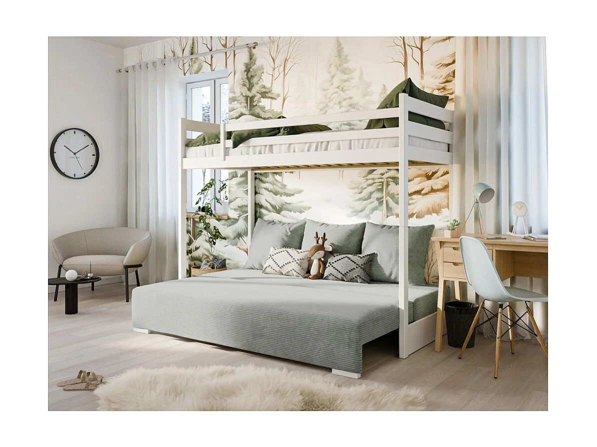 Lit Mezzanine et Canapé Safino 90x200/140x200 Blanc-Gris avec Rangement - Style Contemporain