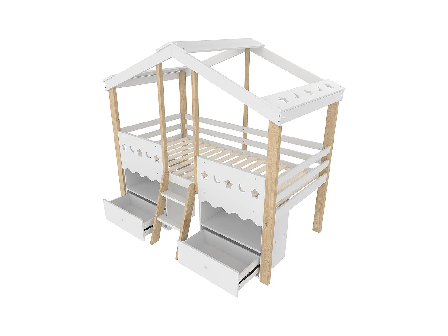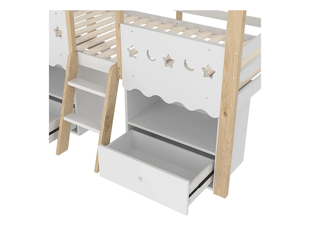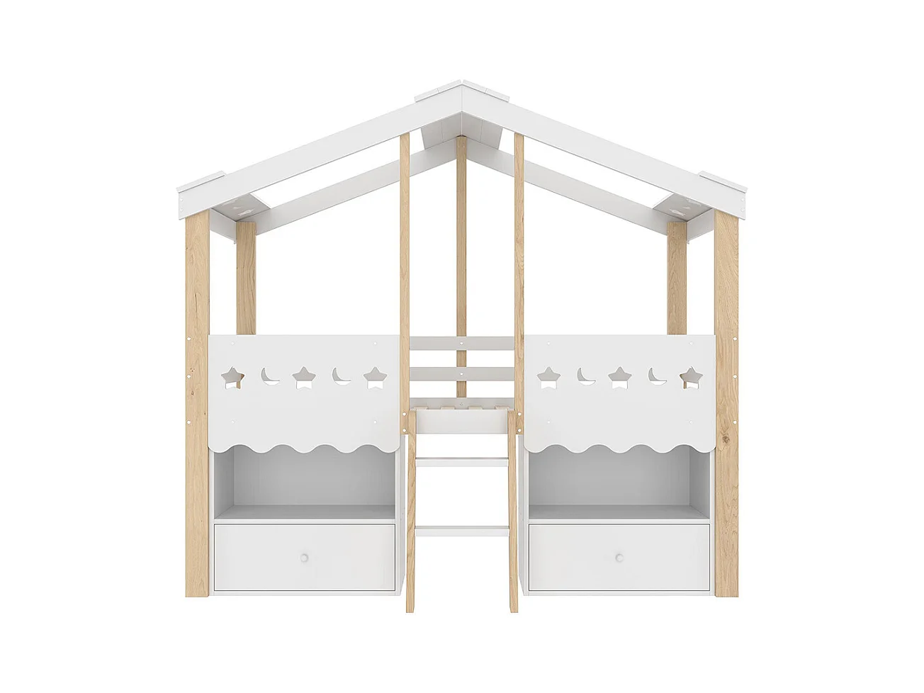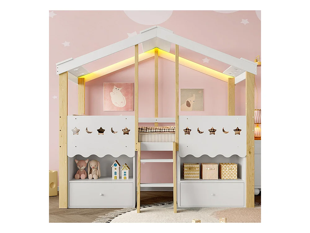 Lit mi-haut maison 90x200 cm 2 tiroirs LED sans matelas blanc naturel