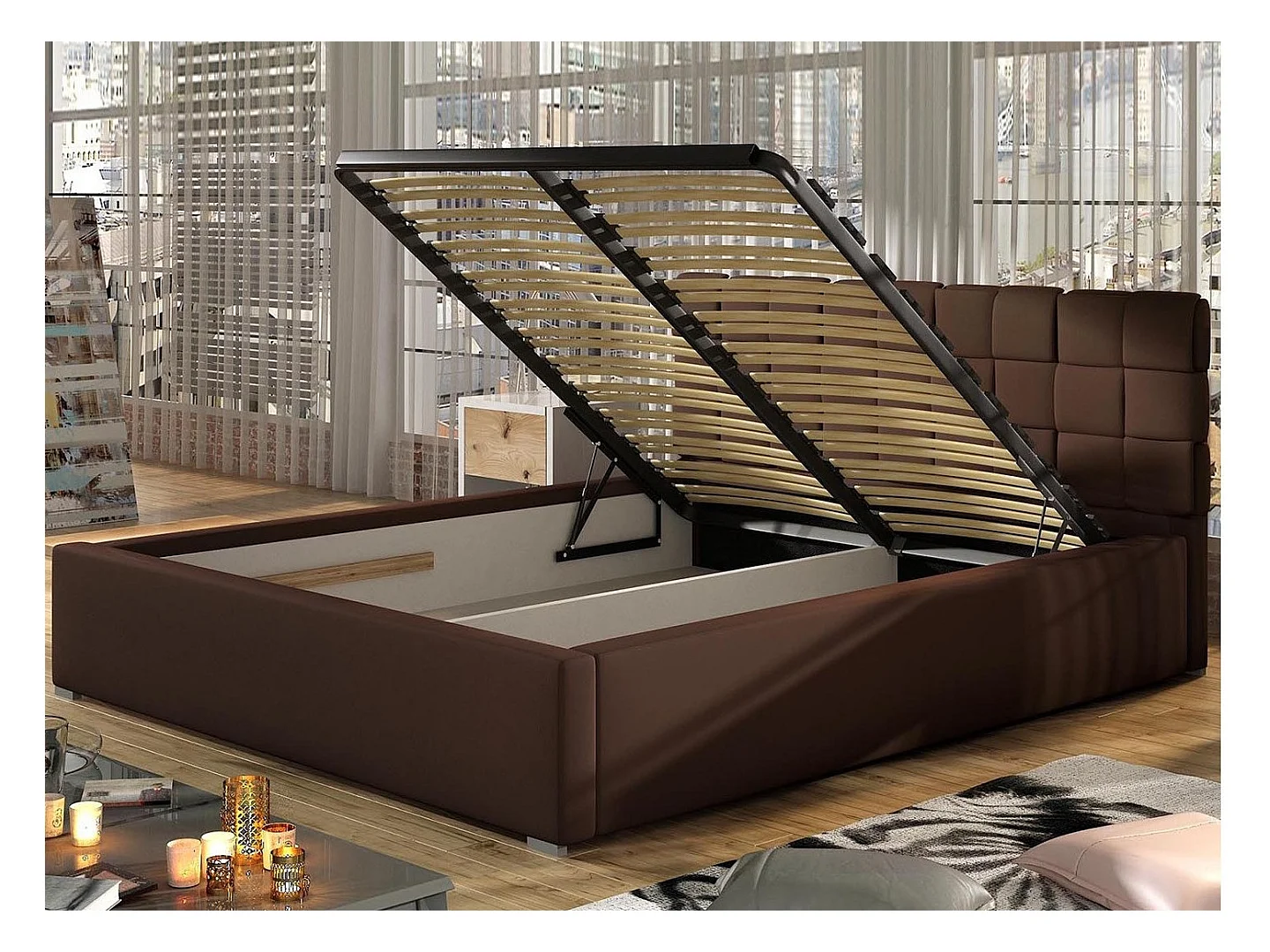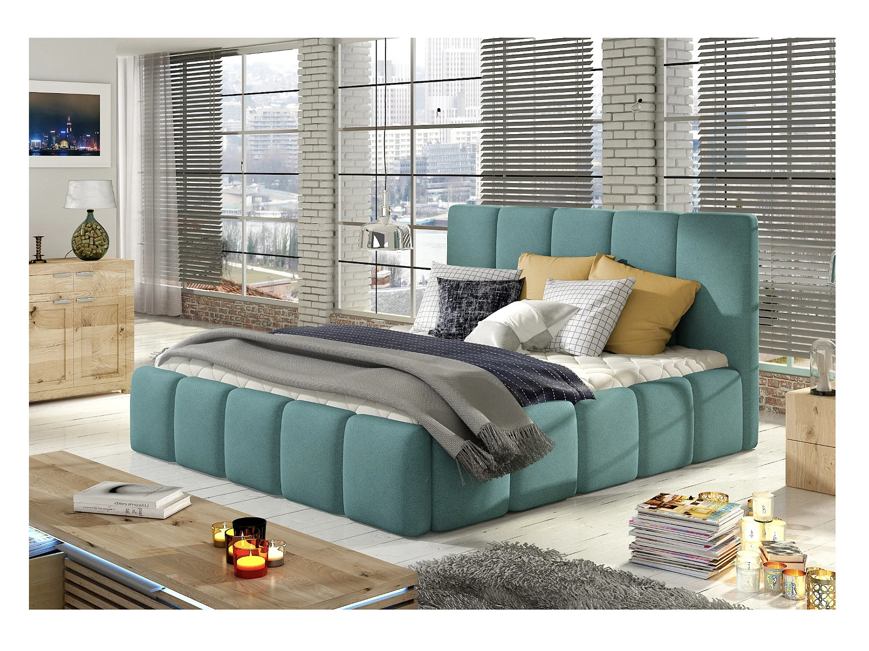 Lit moderne capitonné tissu Vika-Couleur Vert céladon-180x200