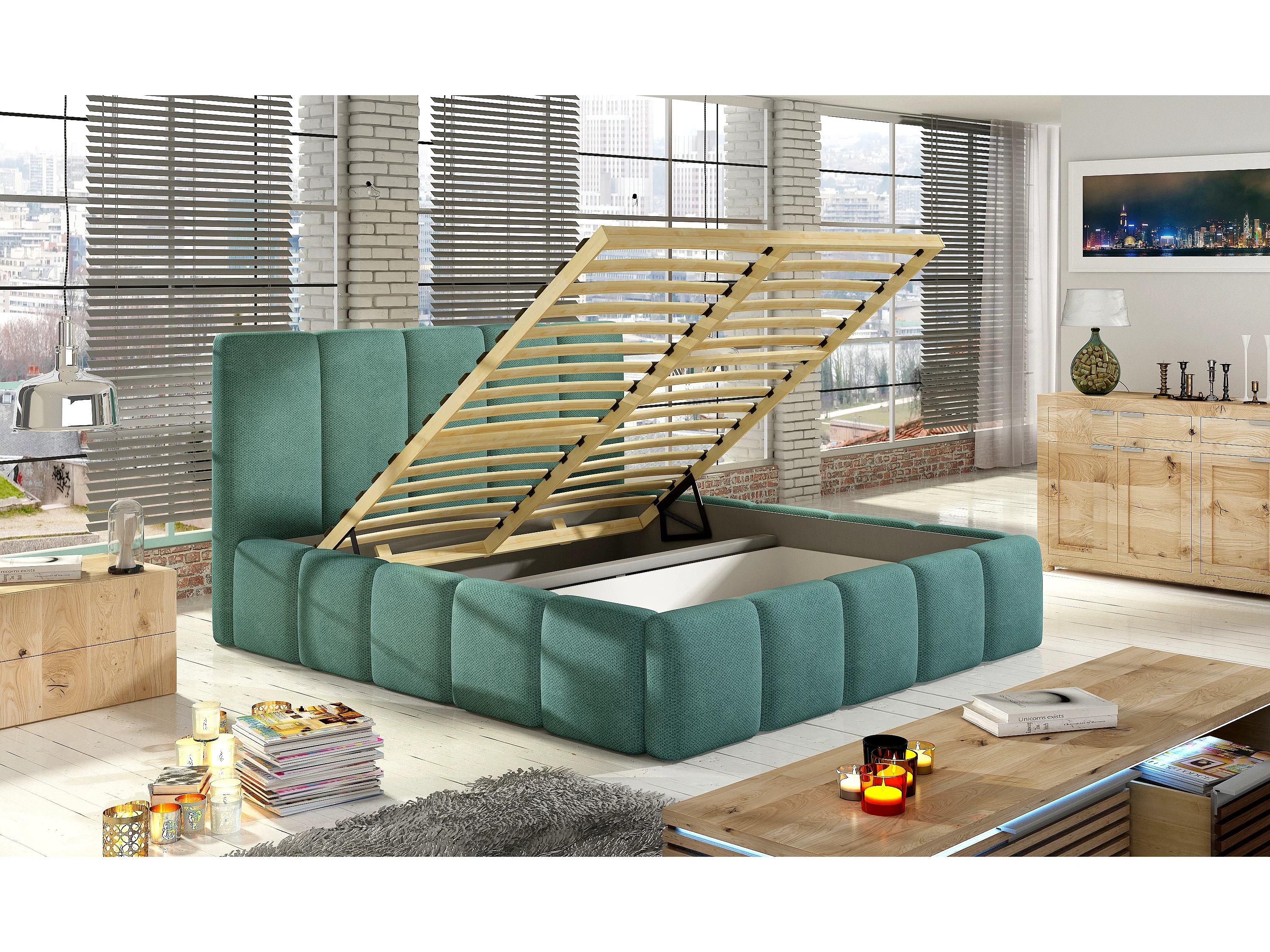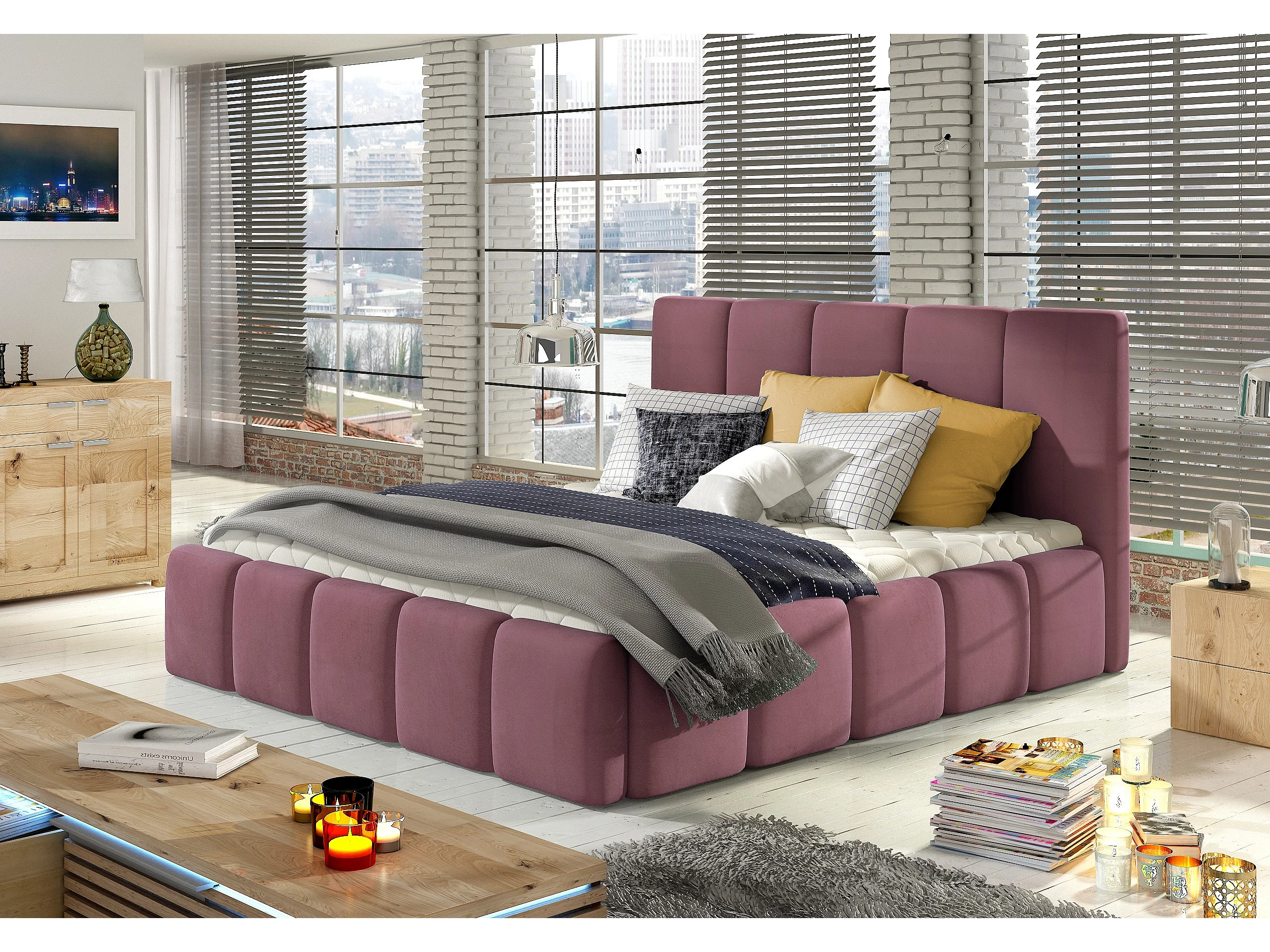 Lit adulte avec coffre de rangement Vika – Velours capitonné-Prune-160x200