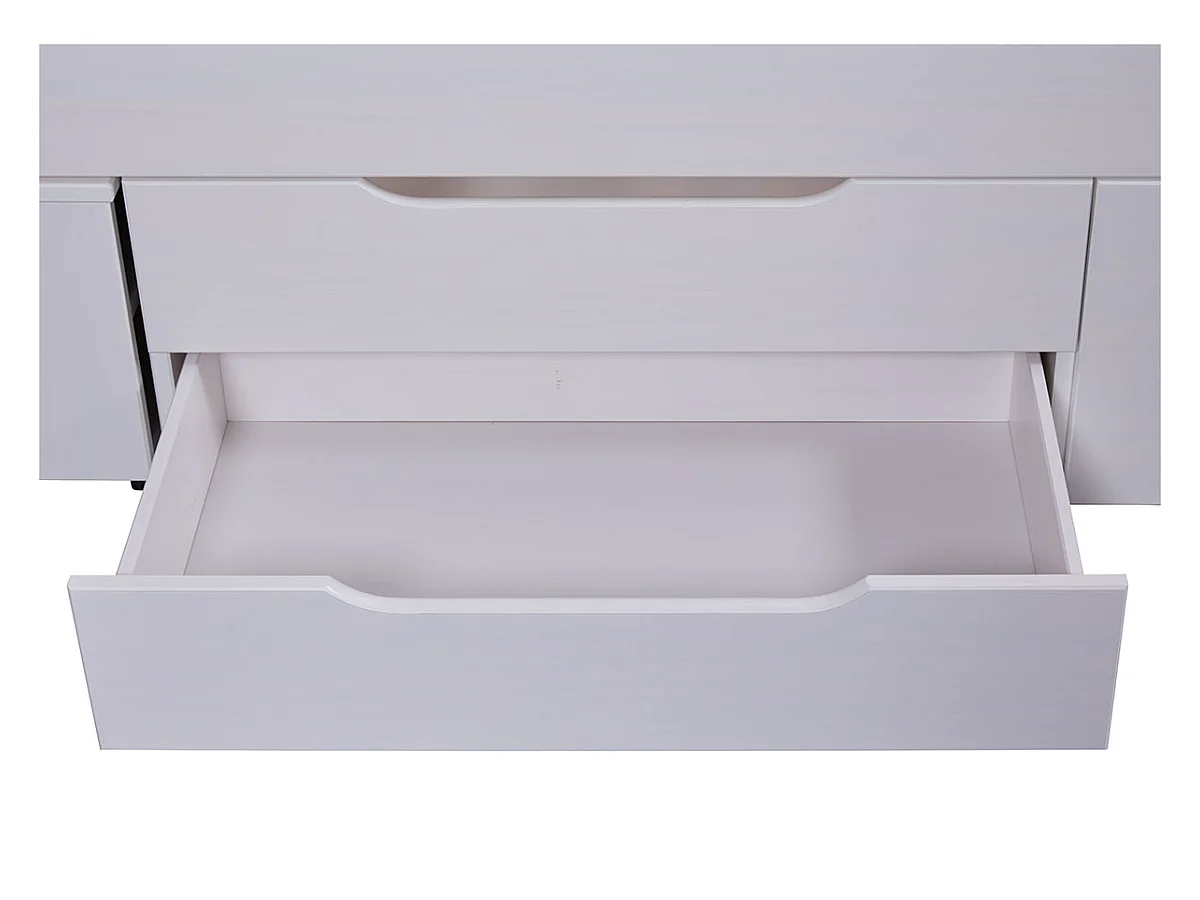 Lit multi-rangements 140x200cm en pin massif coloris blanc - longueur 209 x profondeur 146 x hauteur 90 cm