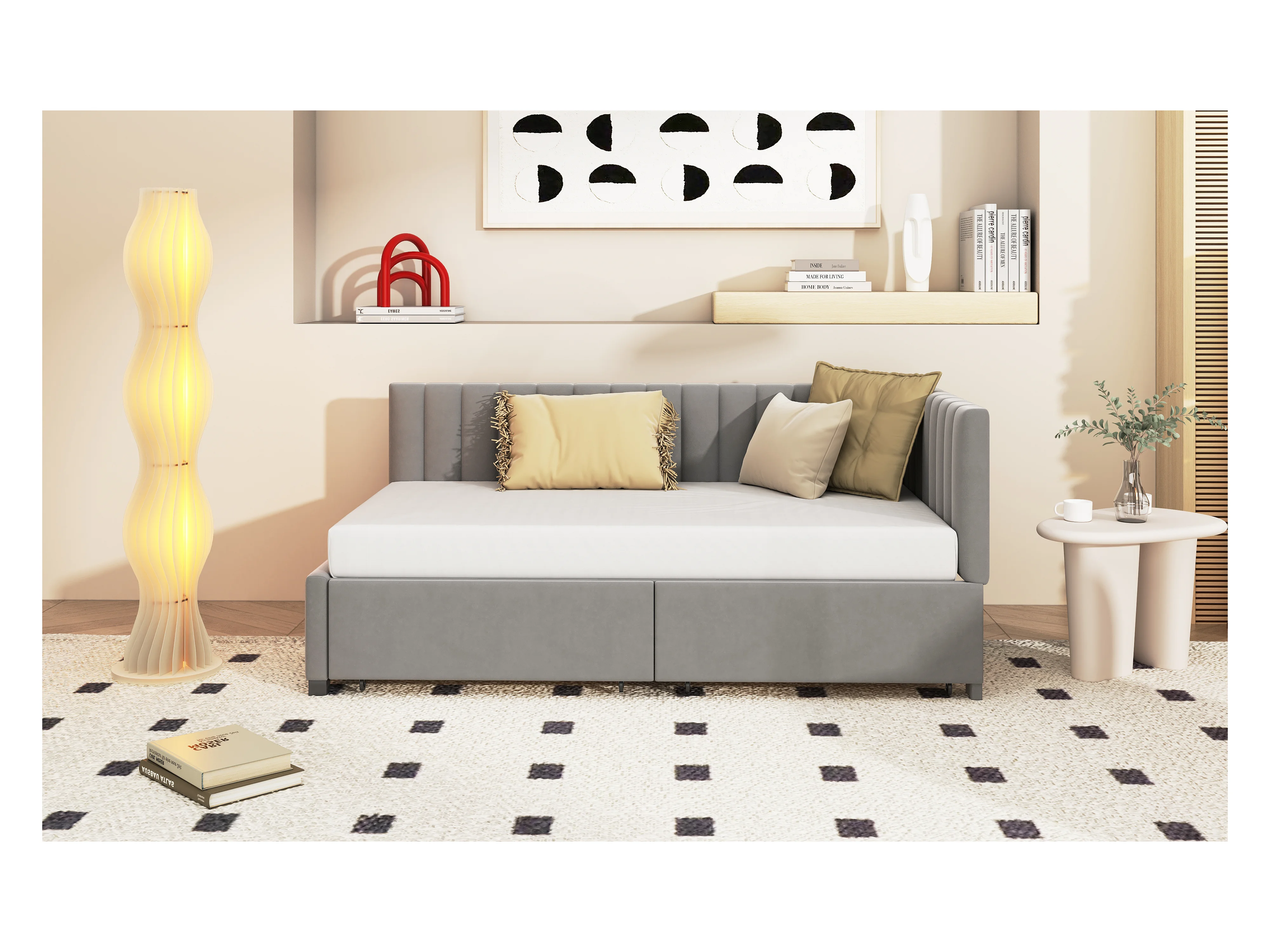 Lit multifonction 90×200 cm en velours gris avec 2 grands tiroirs de rangement et sommier à lattes