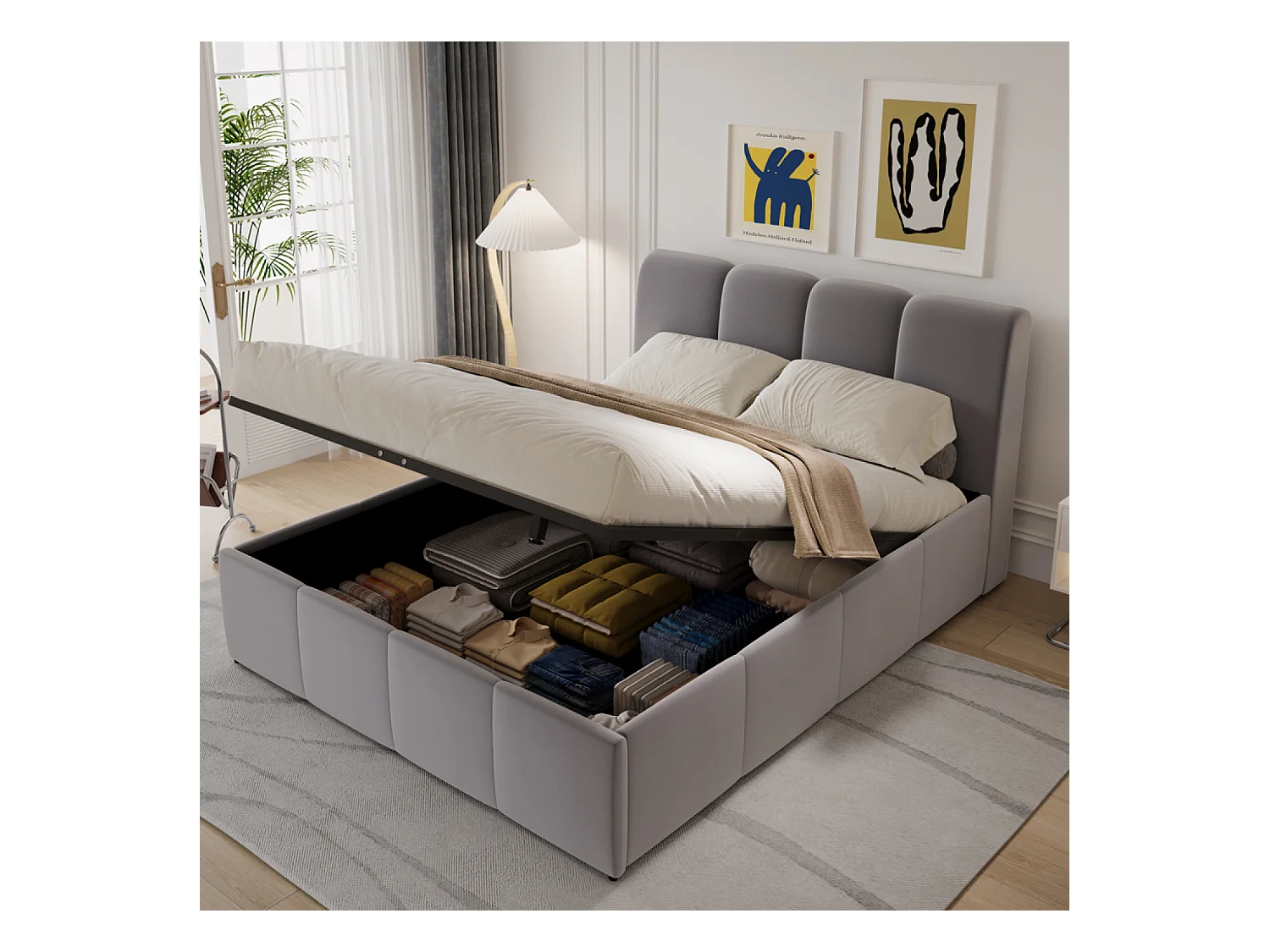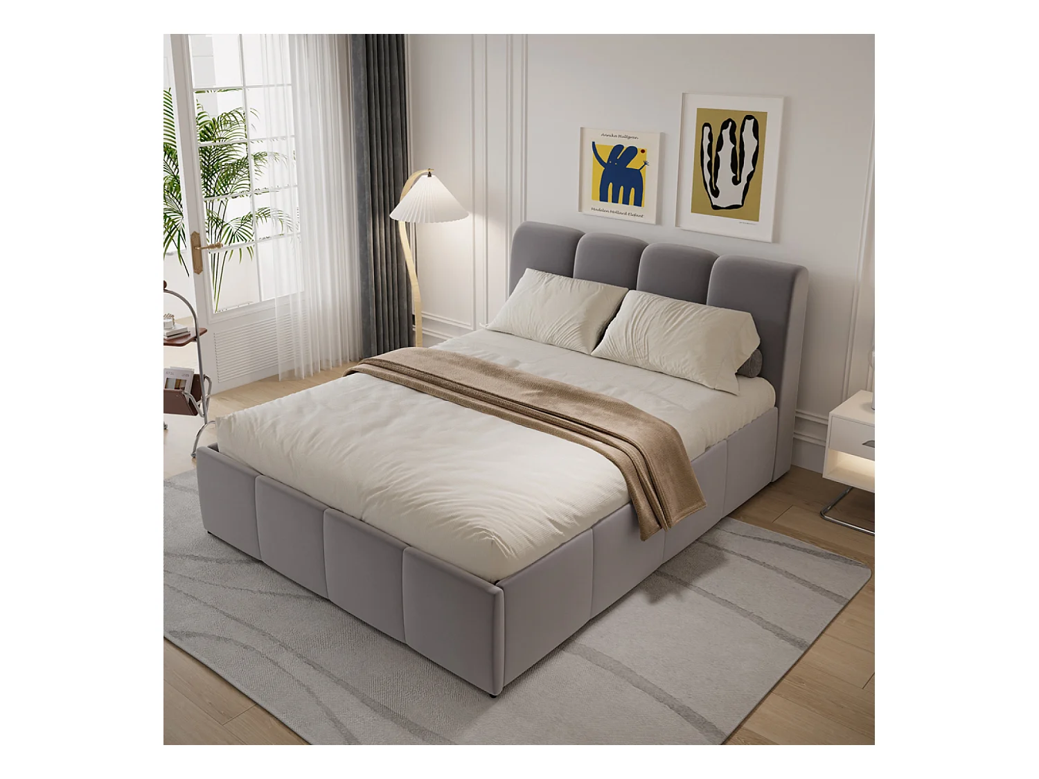 Lit nuage coffre 160x200cm velours gris BALTIMORE