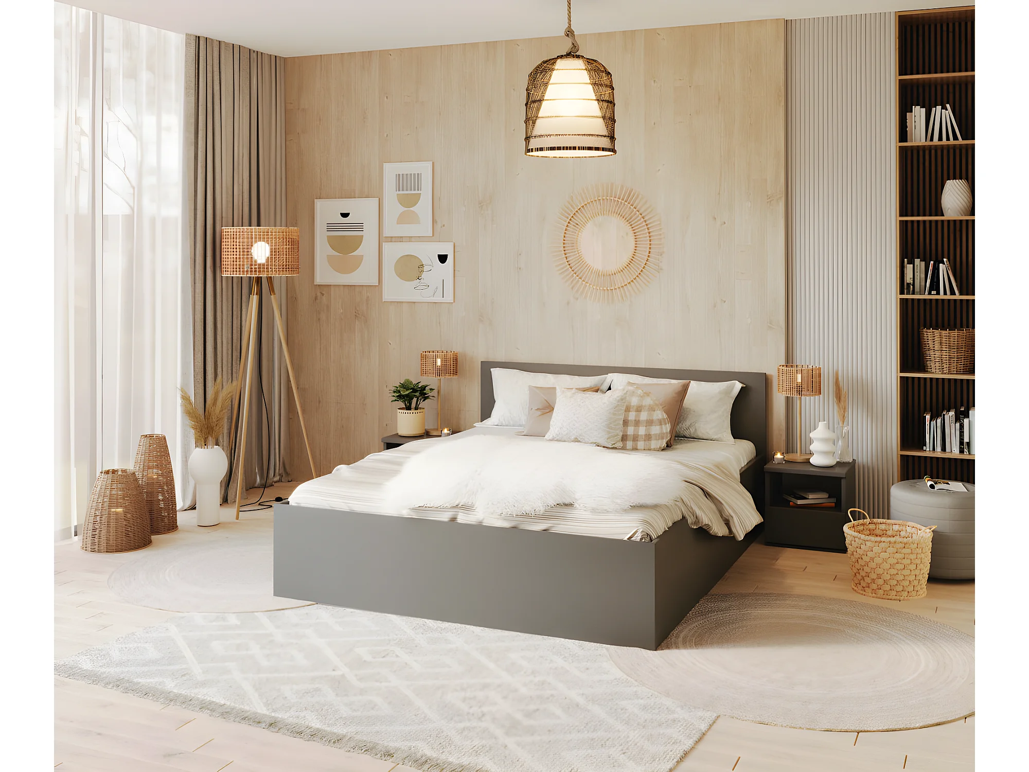 Lit Panama 140x200 + coffre - Sommier inclus Gris