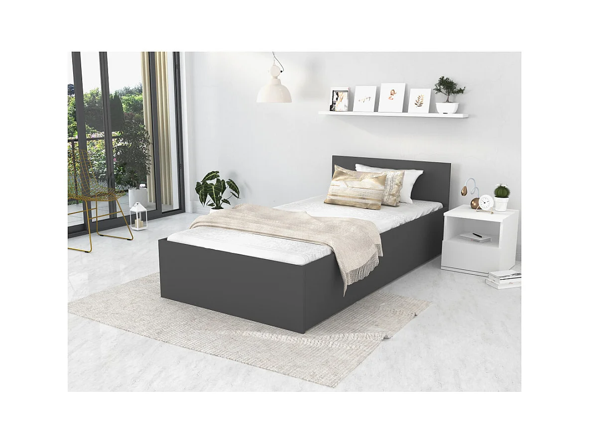 Lit coffre Panama 90x190 - Sommier inclus Gris