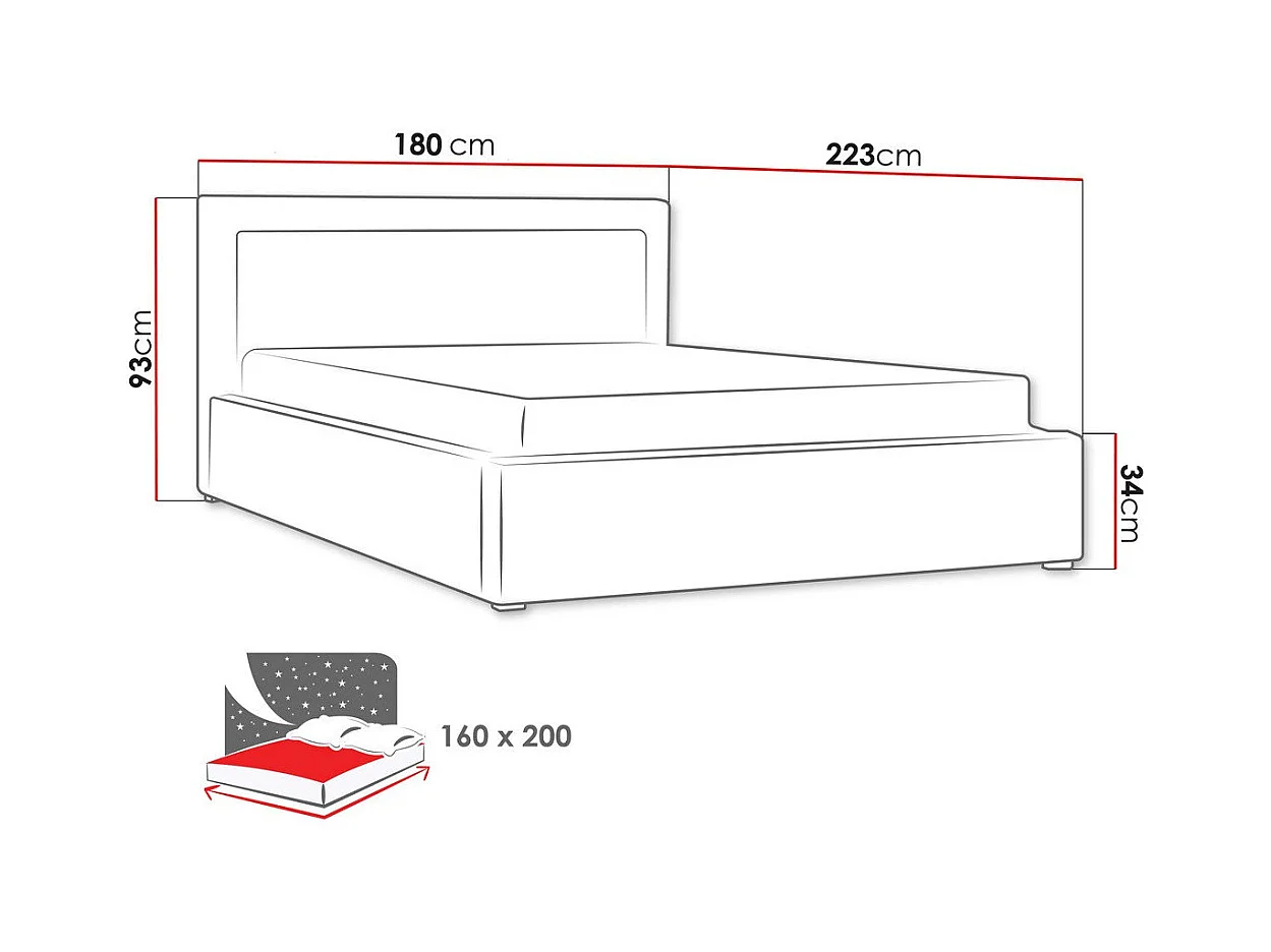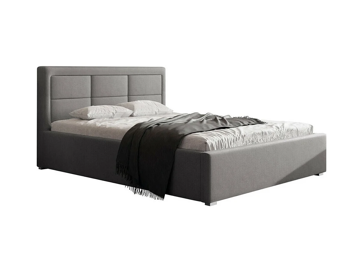 Lit Pomona 102, Double, Gris, 160x200, Tapisserie, Sommier à lattes, 180x223x93cm