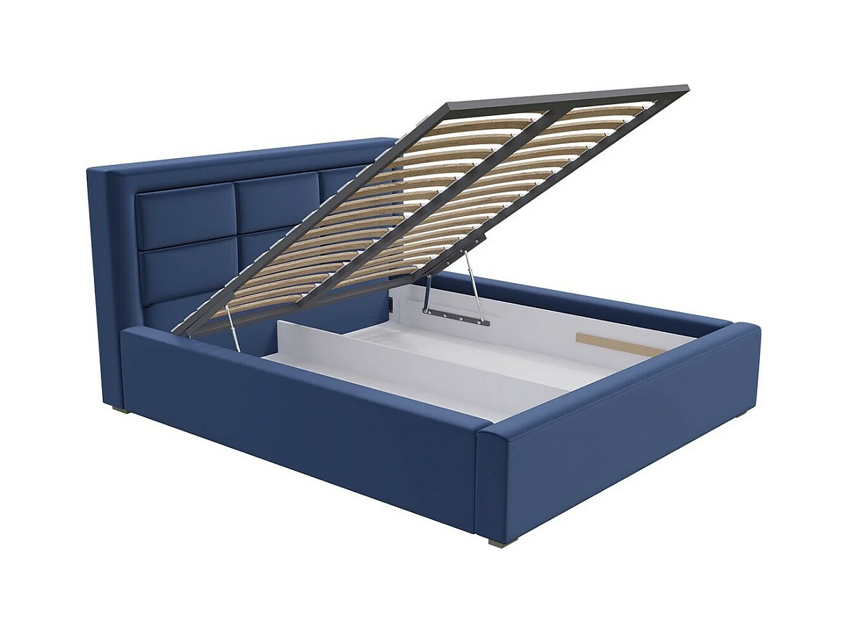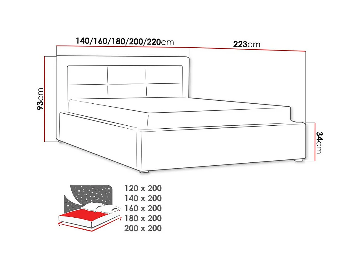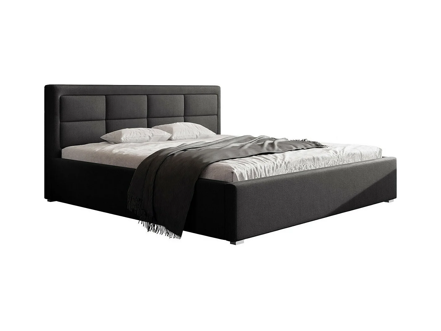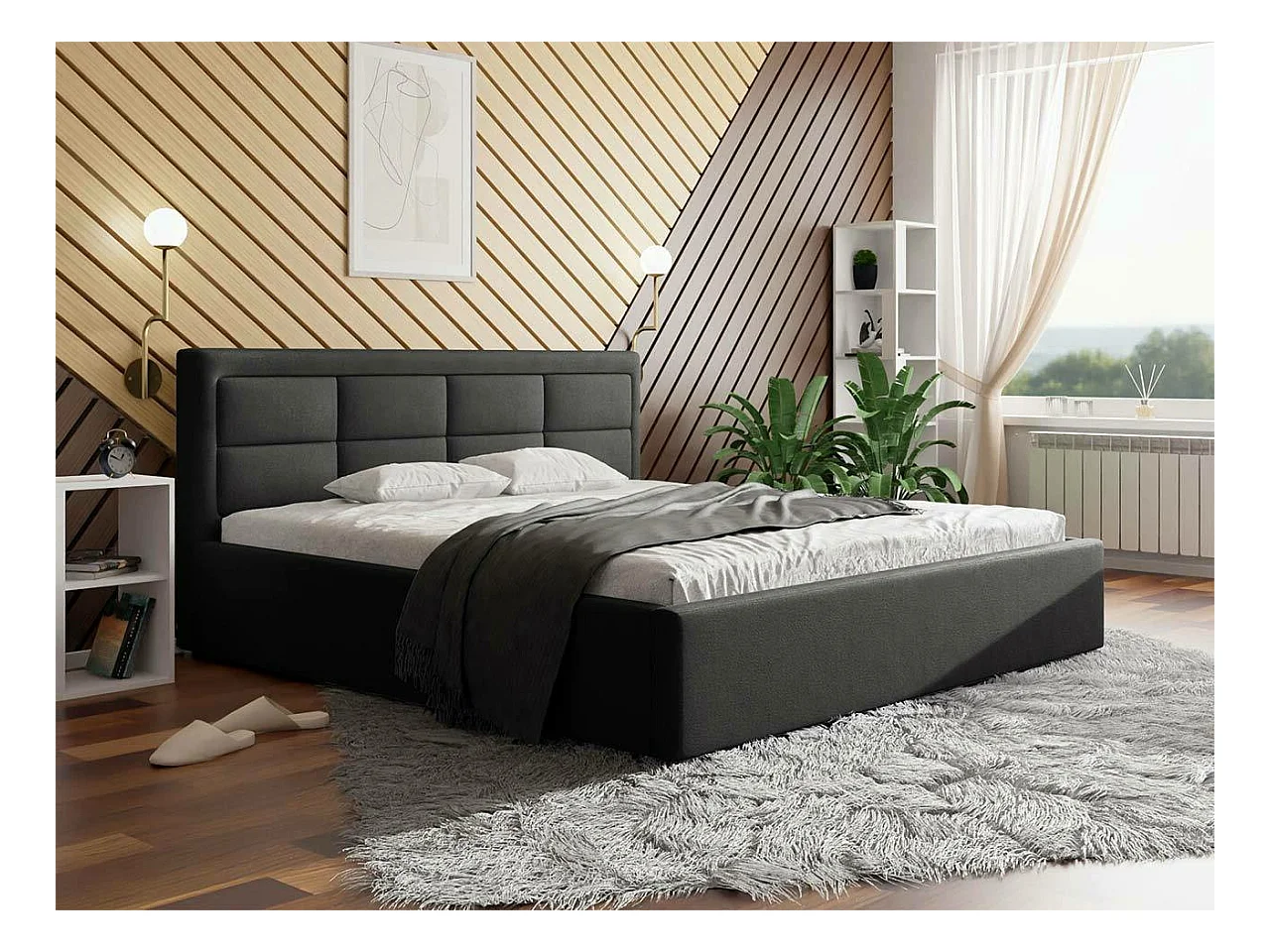 Lit Pomona 103, Double, Gris, 160x200, Tapisserie, Sommier à lattes, 180x223x93cm