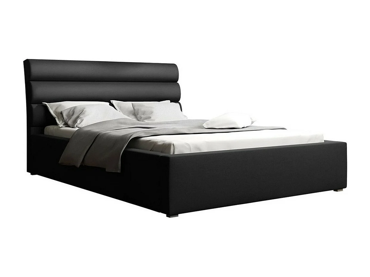 Lit Pomona 108, Double, Noir, 200x200, Tapisserie, Sommier à lattes, 220x223x100cm