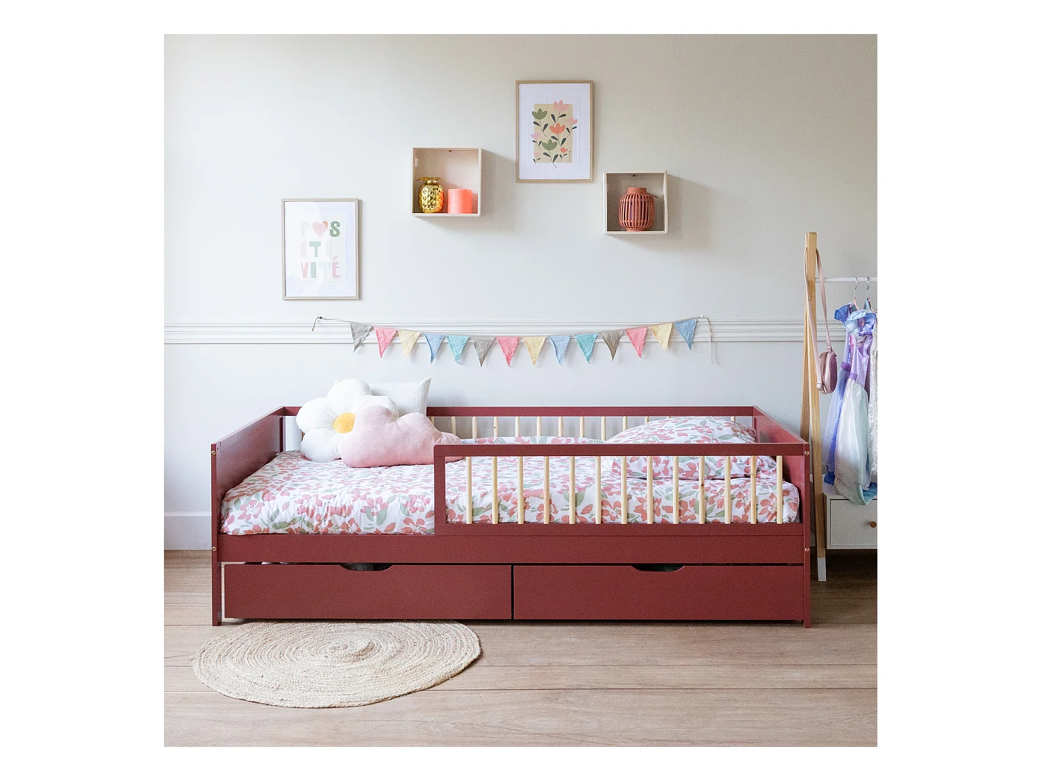 Lit pour enfant 190x90cm terracotta avec tiroirs ADAM - HAPPY GARDEN