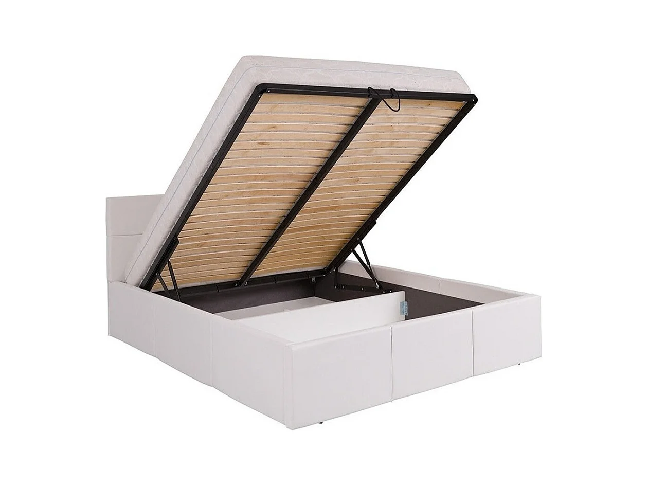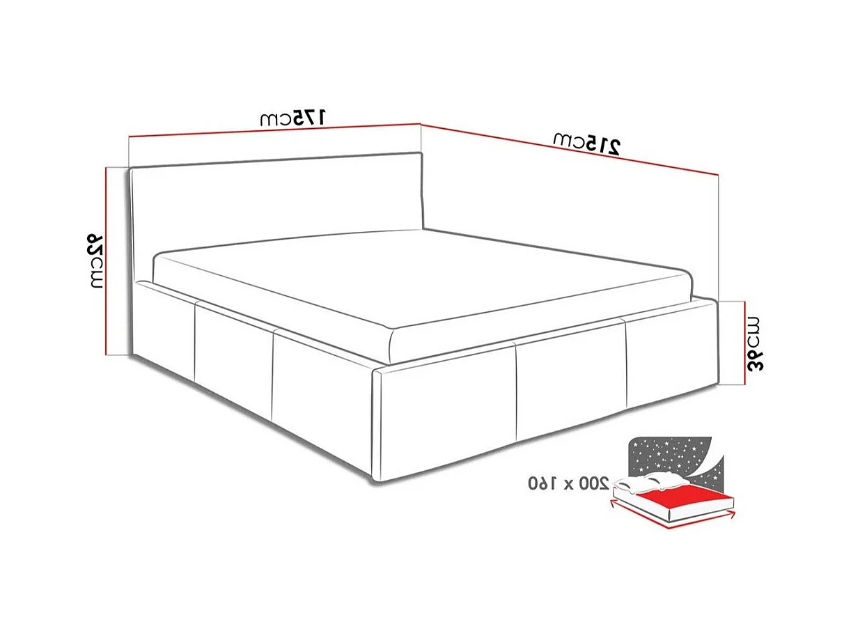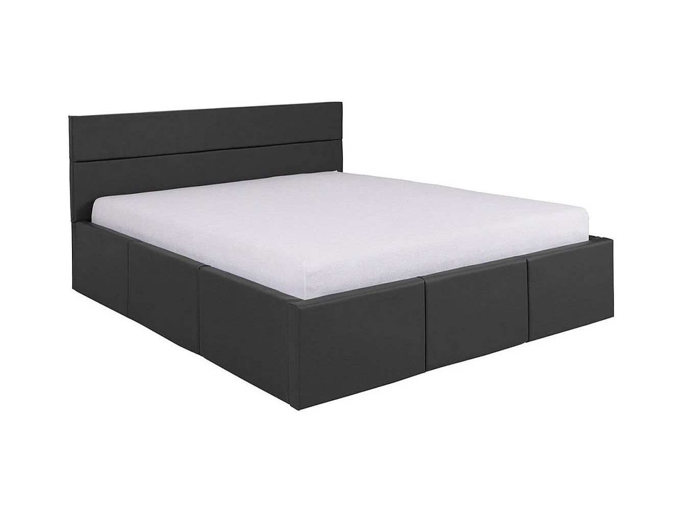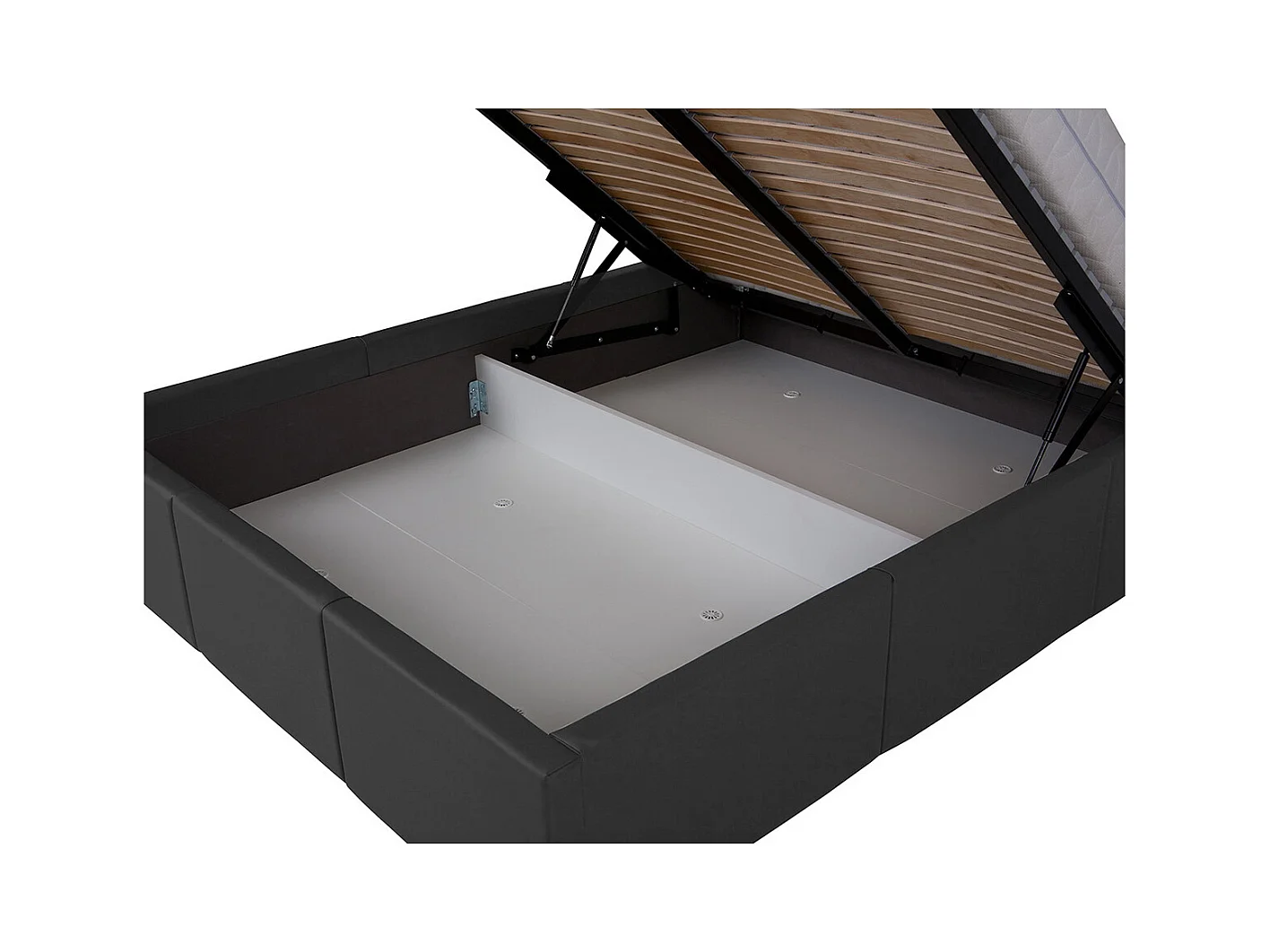 Lit Tivdalu 123, Double, Noir, 160x200, Faux cuir, Sommier à lattes, 175x215x92cm