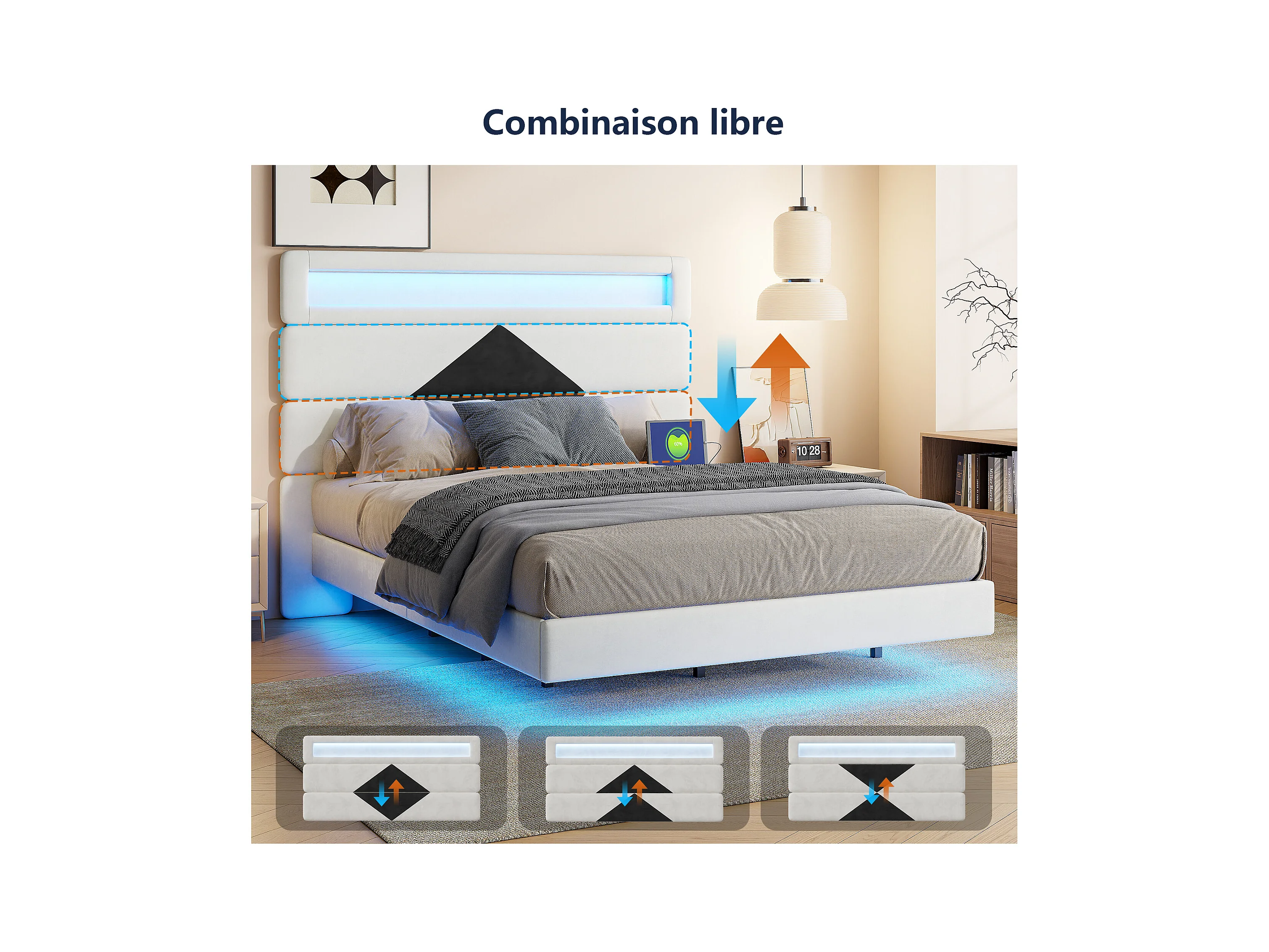 Lit rembourré 140x190cm avec USB, lit double avec LED,lit coffre avec tête de lit en diamant,velours
