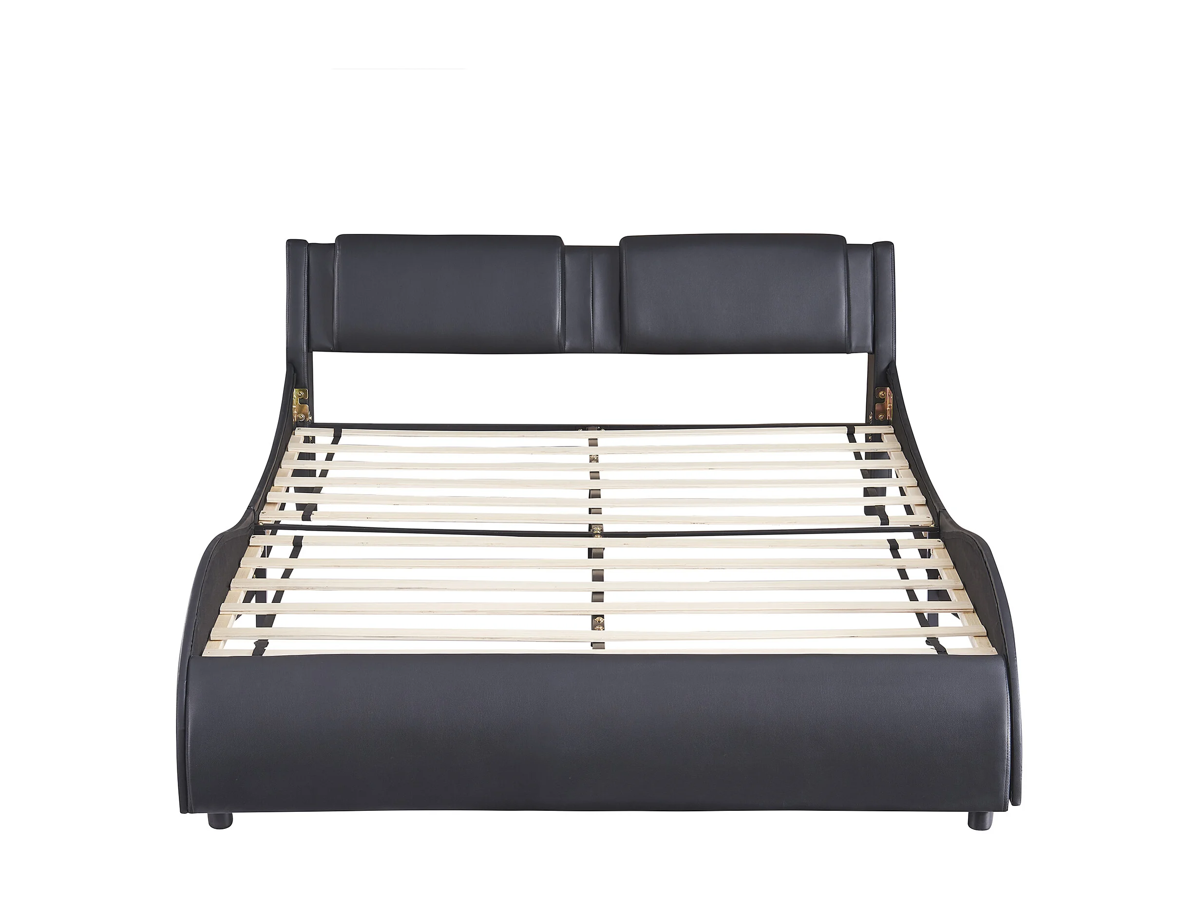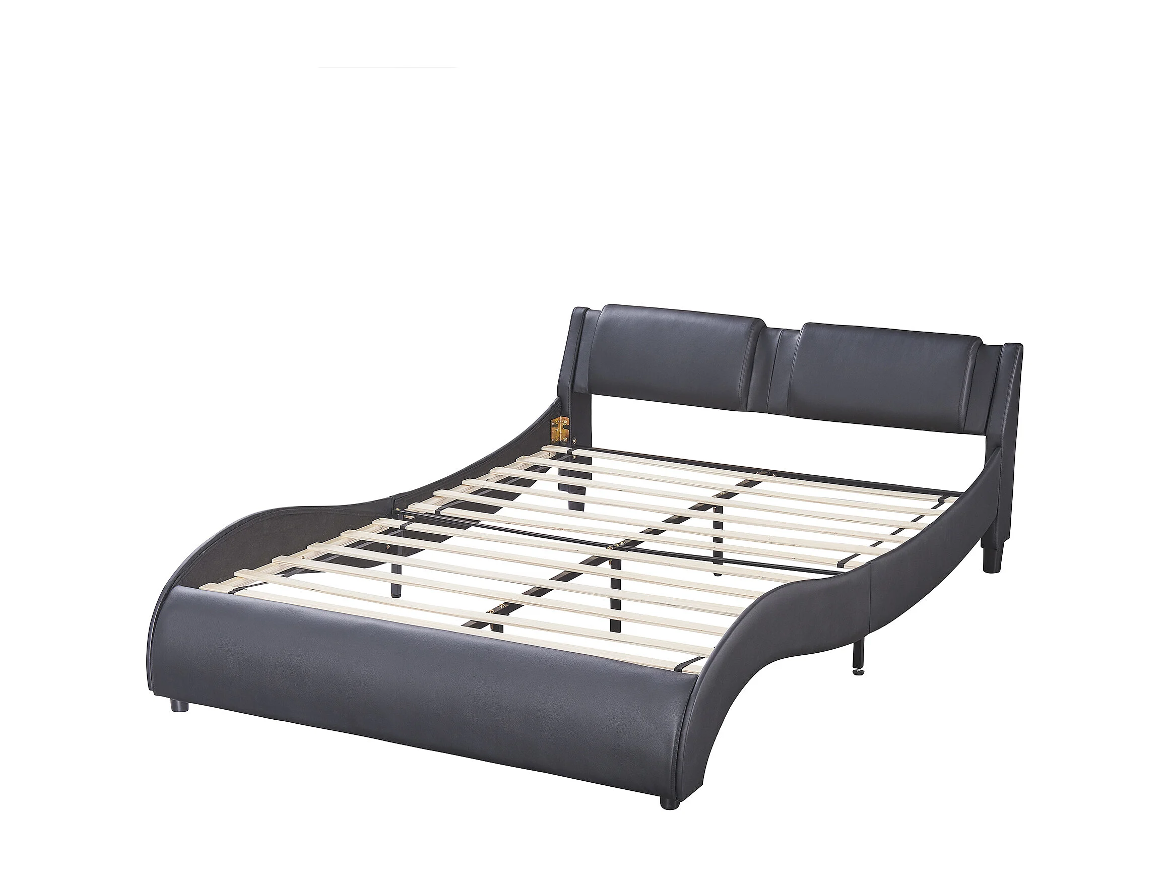 Lit rembourré 140x200 cm en simili cuir, LED intégrées, sommier inclus, cadre solide, couleur noir
