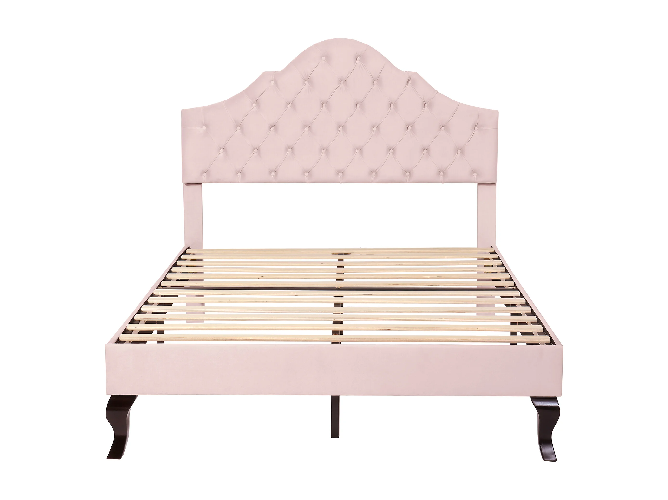 Lit rembourré 140×200 cm en velours rose avec tête de lit réglable et sommier à lattes, pour adultes et adolescents