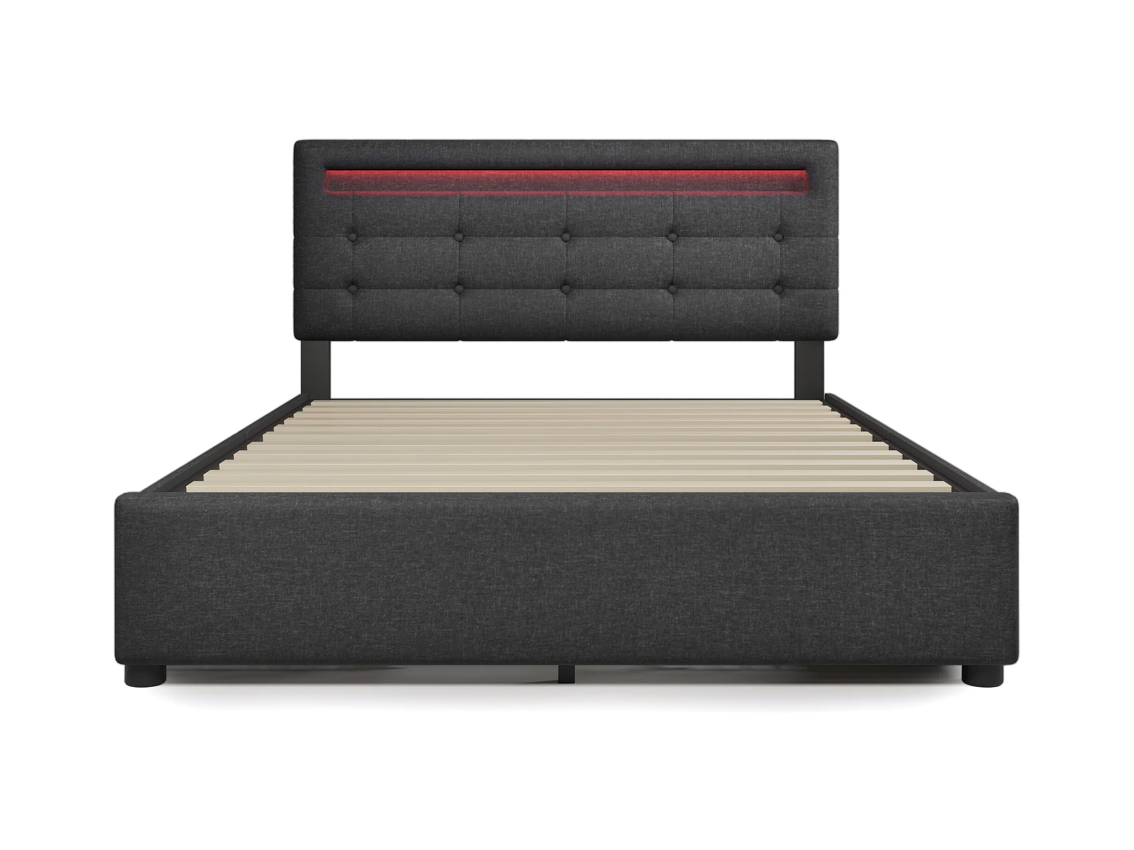Lit adulte 140x200 cm - Lit double avec 4 tiroirs et tête de lit réglable - éclairage LED - lin gris